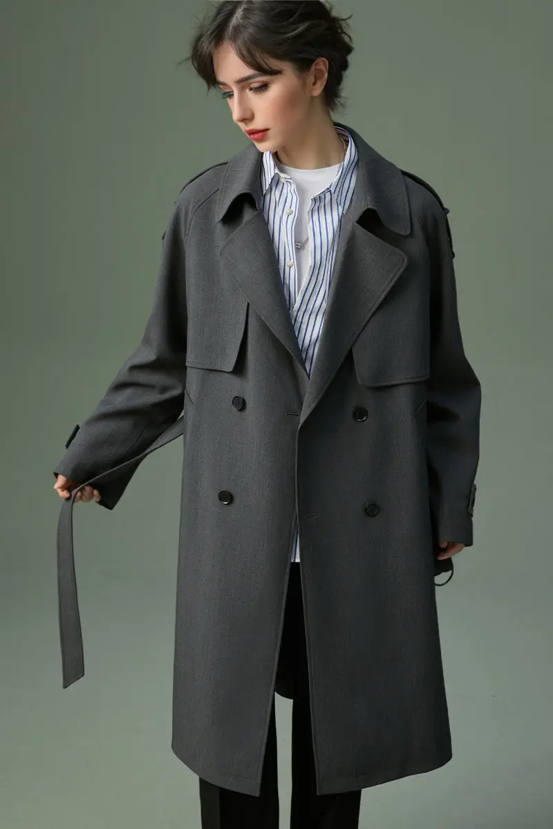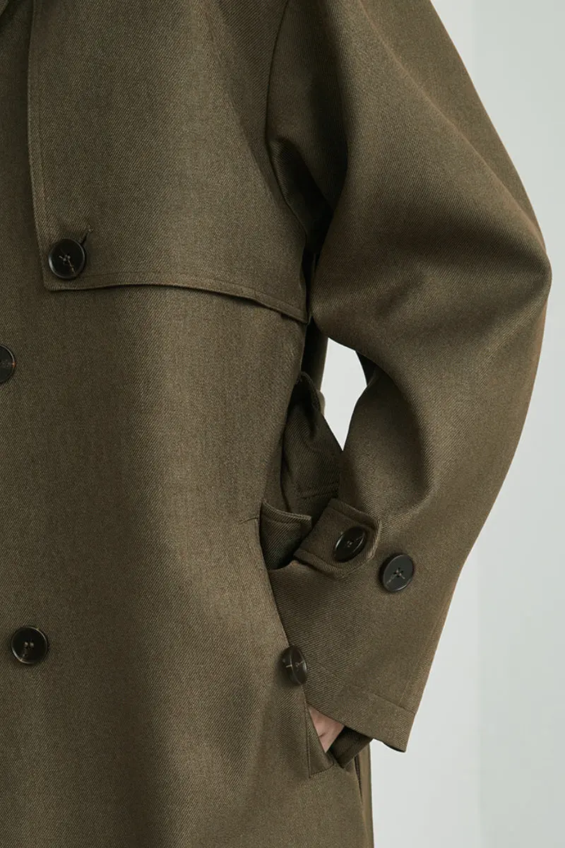 Vintage Oversized Double Breasted Mid Length Trench Coat with Belt