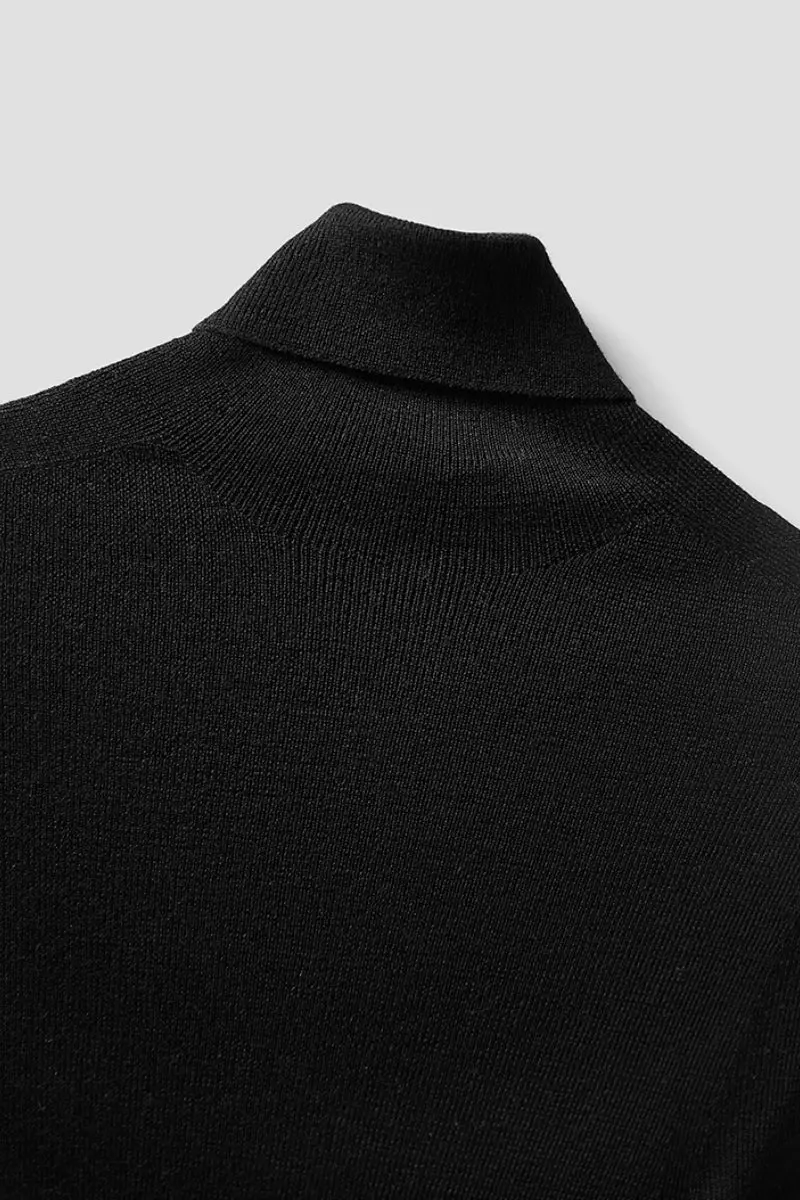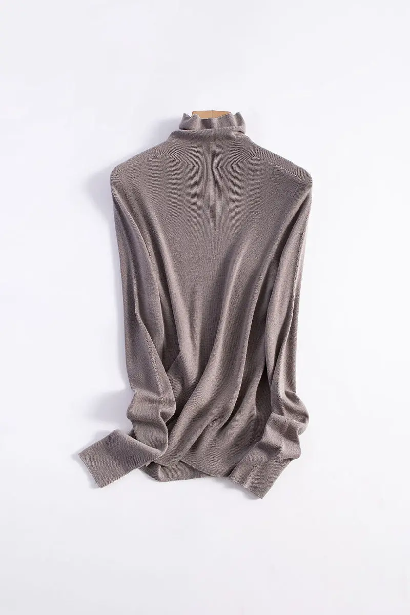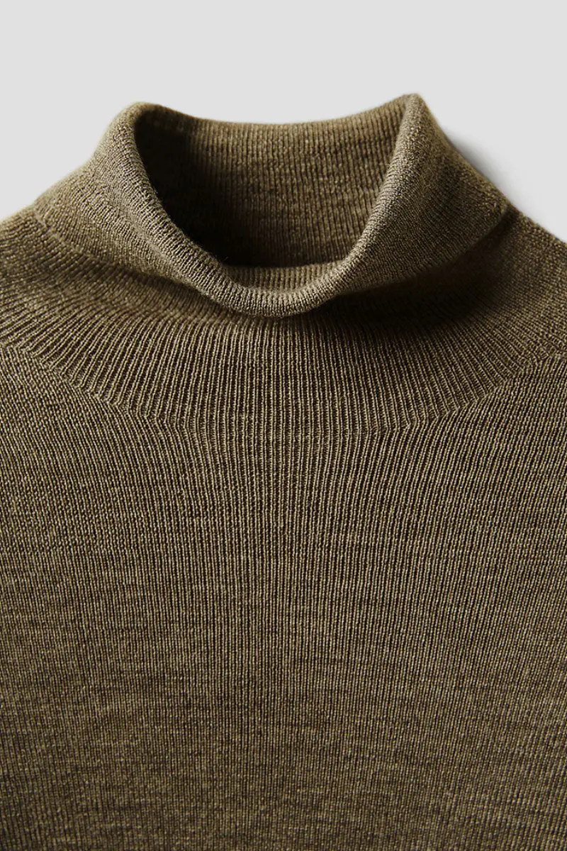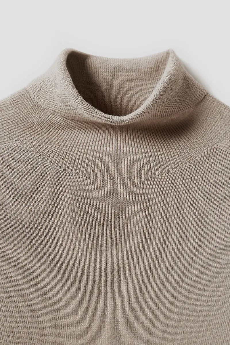 Seamless Knit 100 Washable Merino Wool Mock Turtleneck Sweater