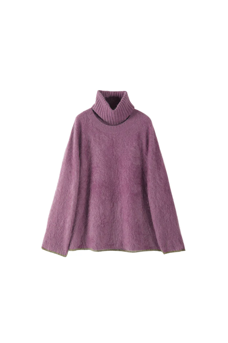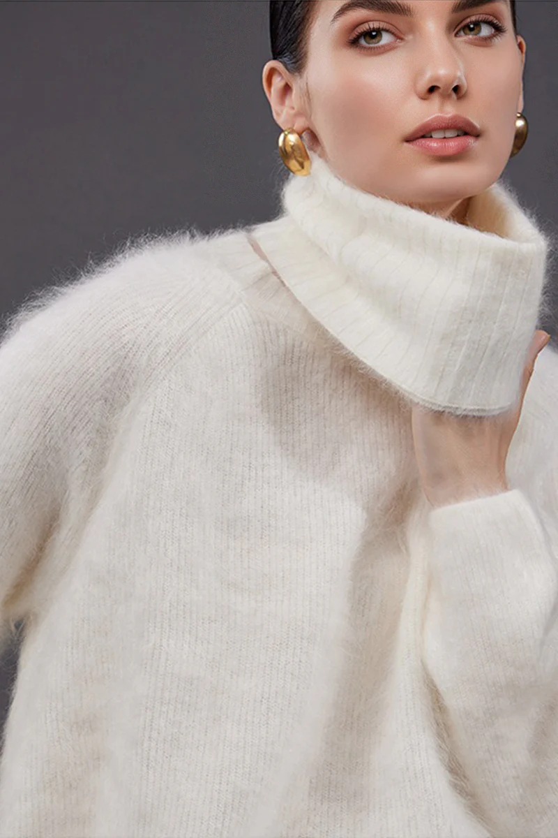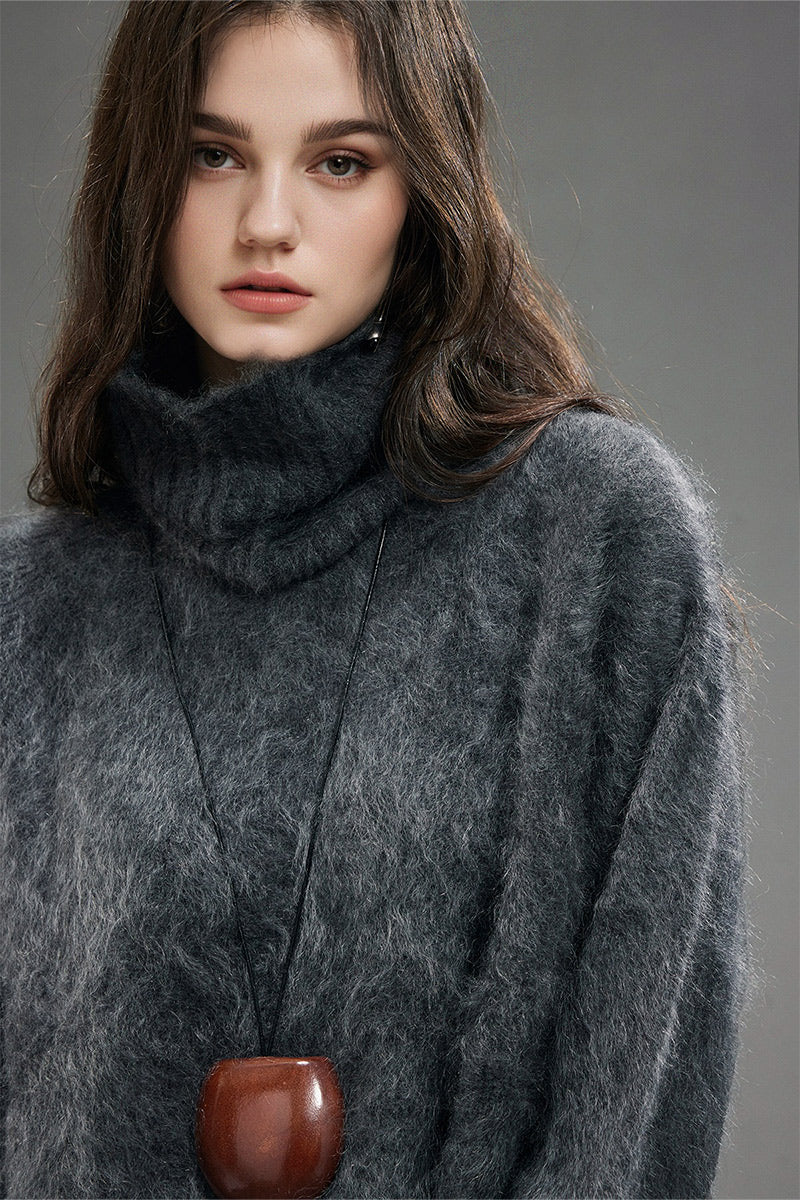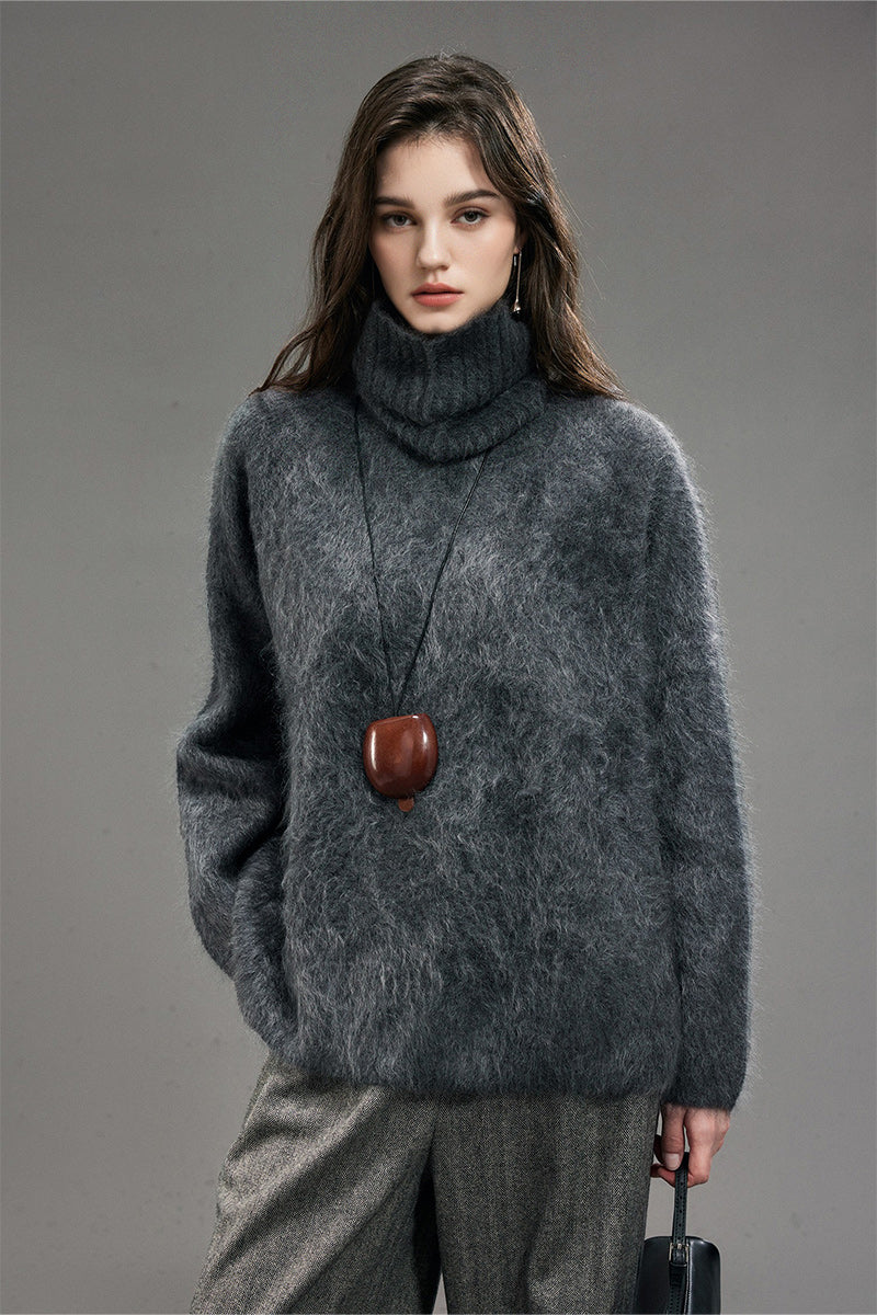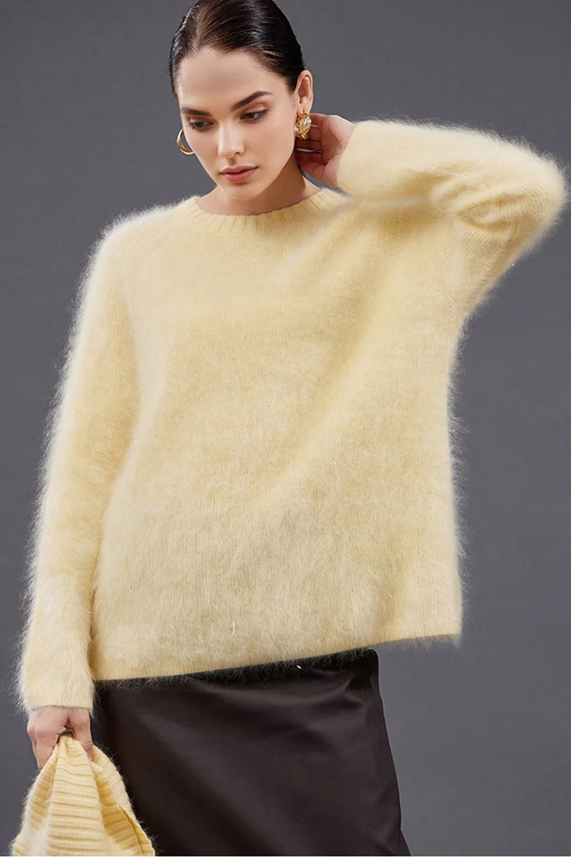 Chunky Brushed Cashmere Detachable Collar Pullover Sweater