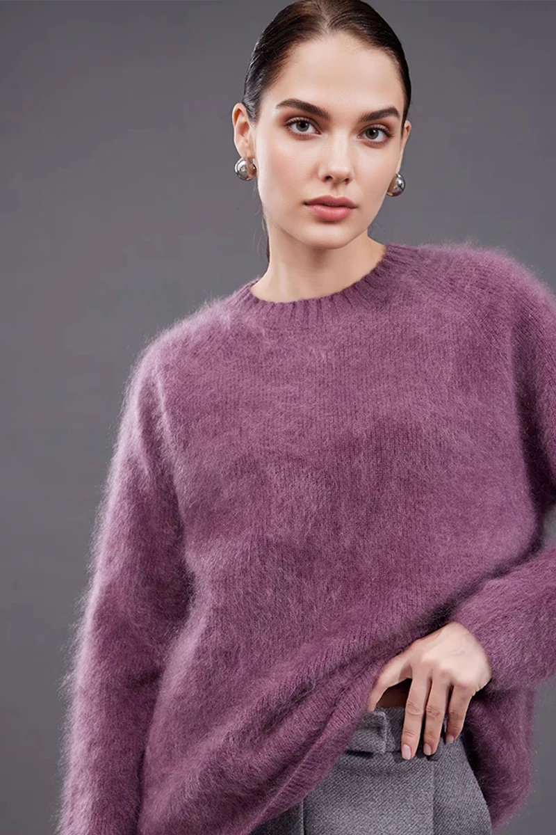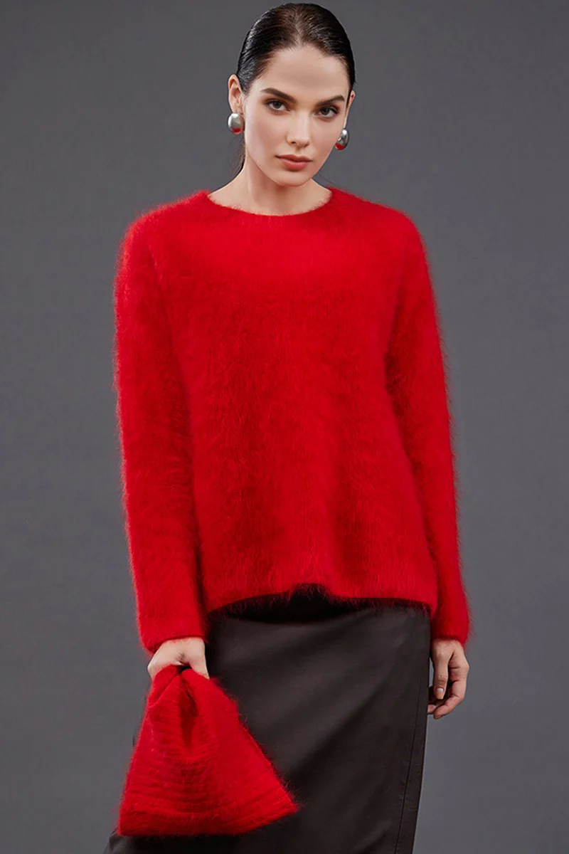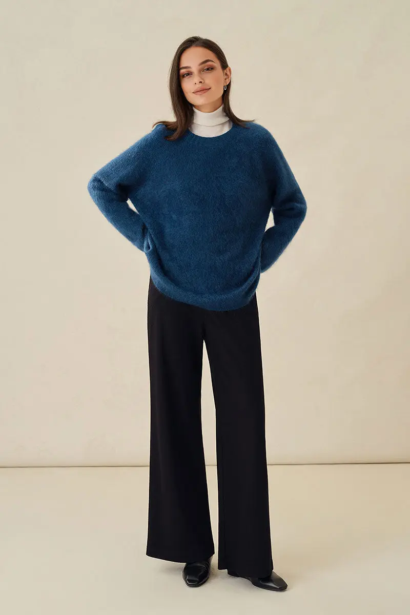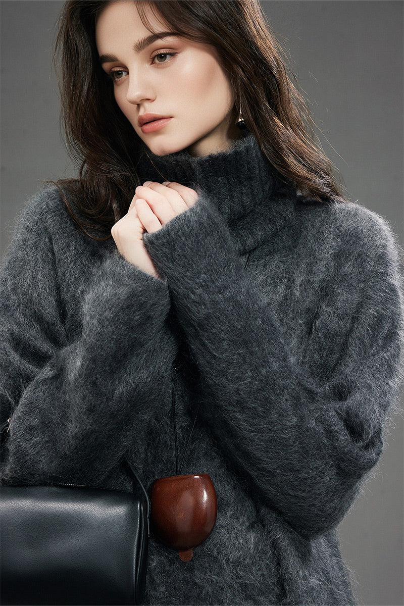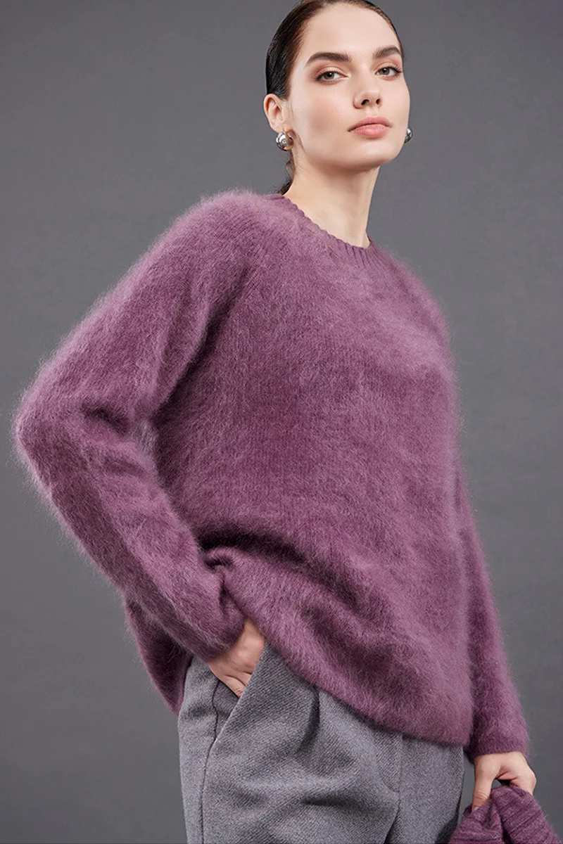 Chunky Brushed Cashmere Detachable Collar Pullover Sweater