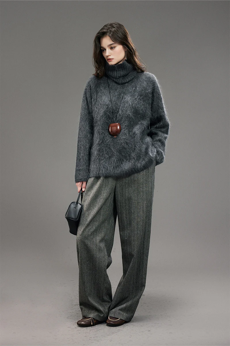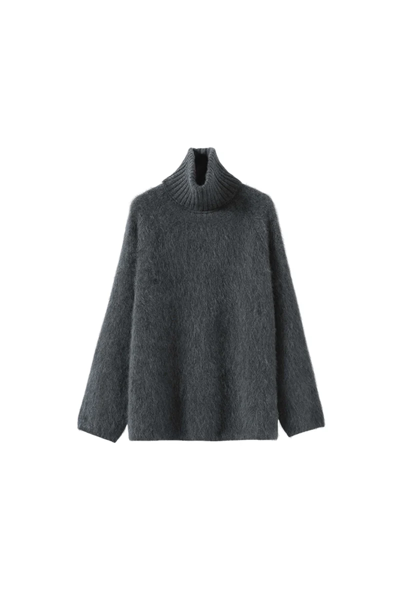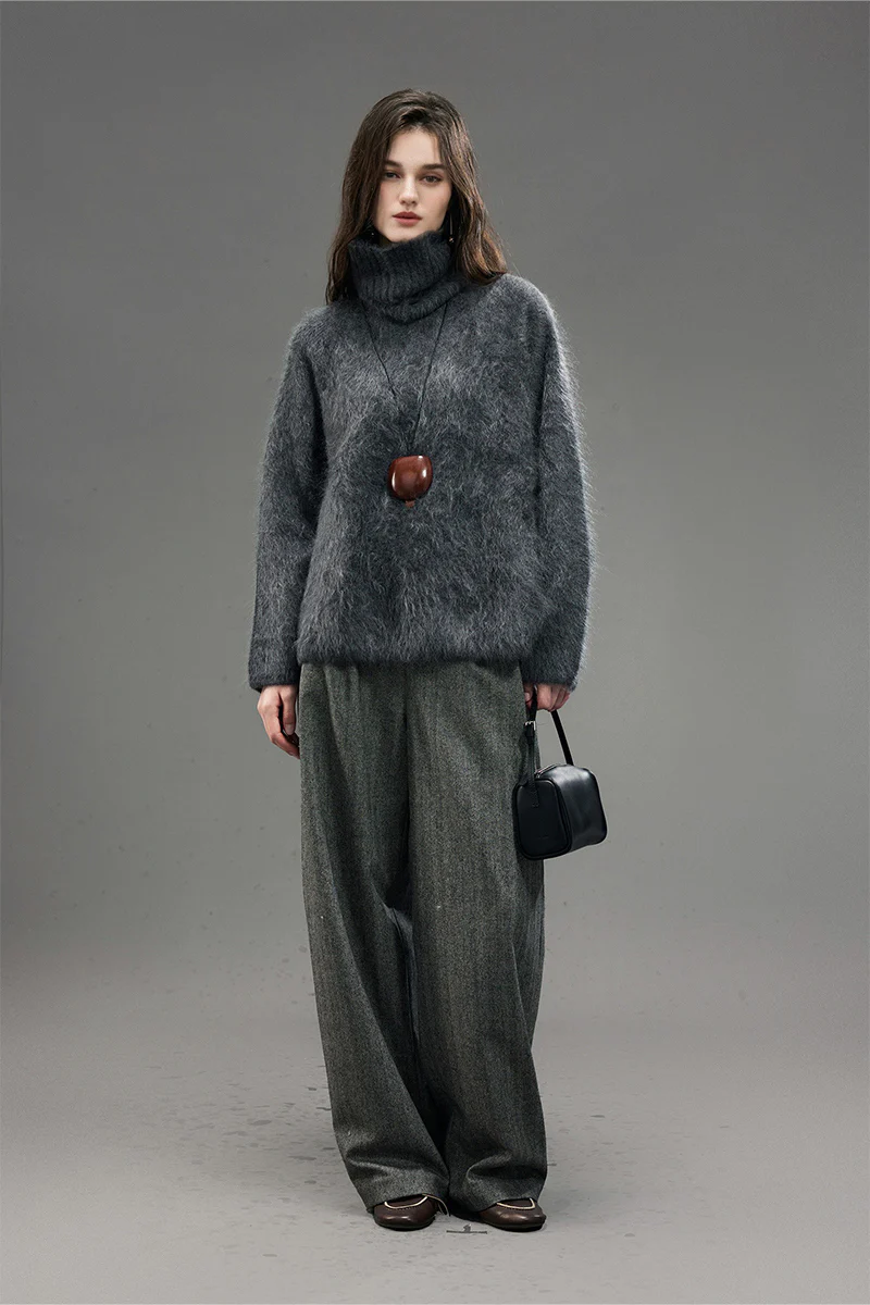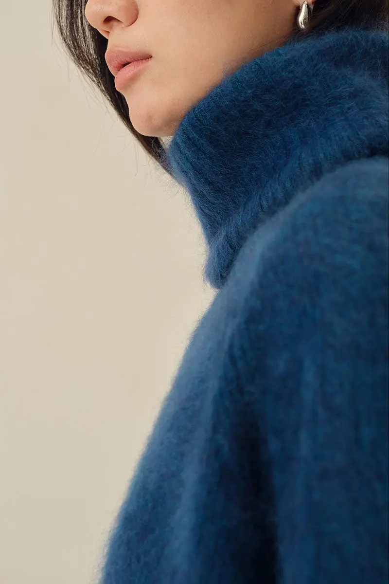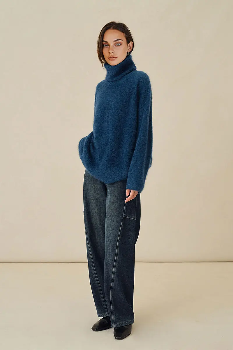Chunky Brushed Cashmere Detachable Collar Pullover Sweater
