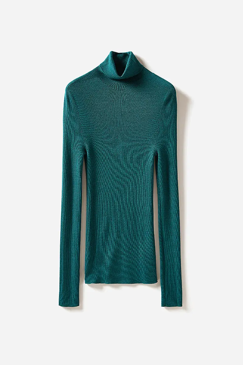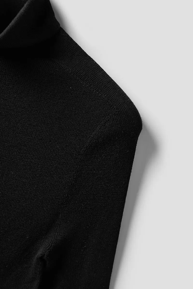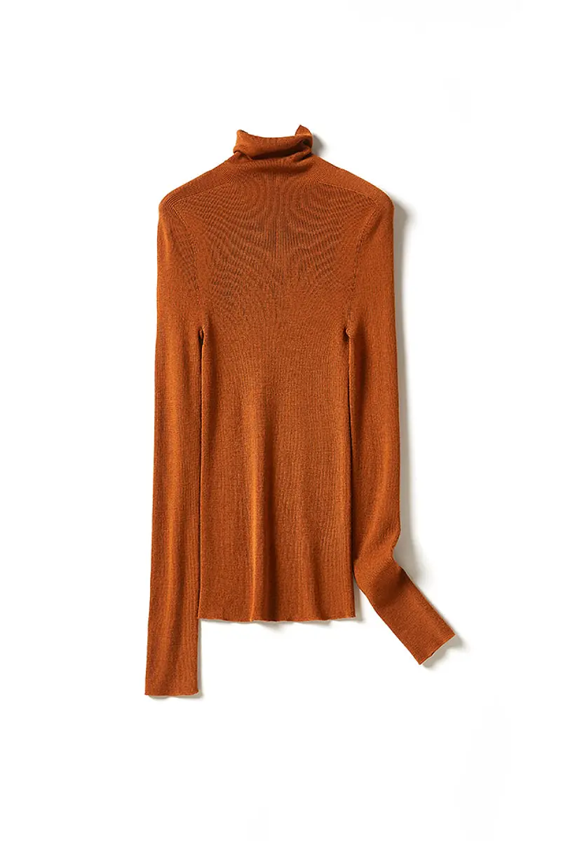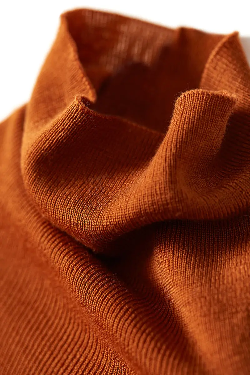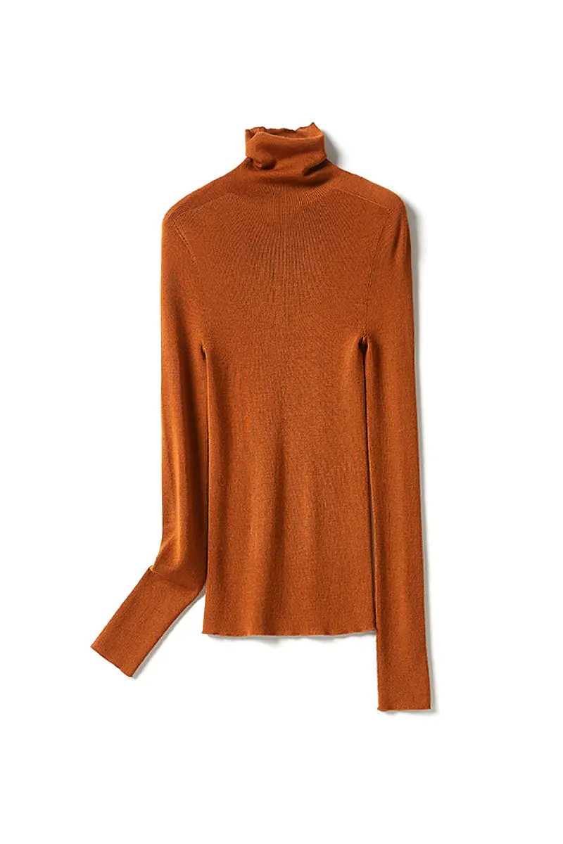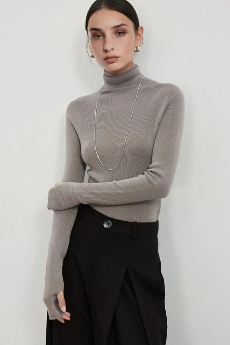 Slim Seamless Wool Turtleneck Sweater with Thumb Holes