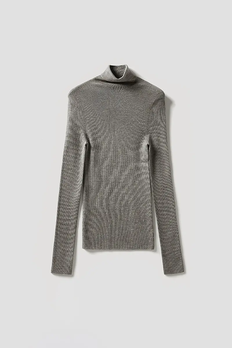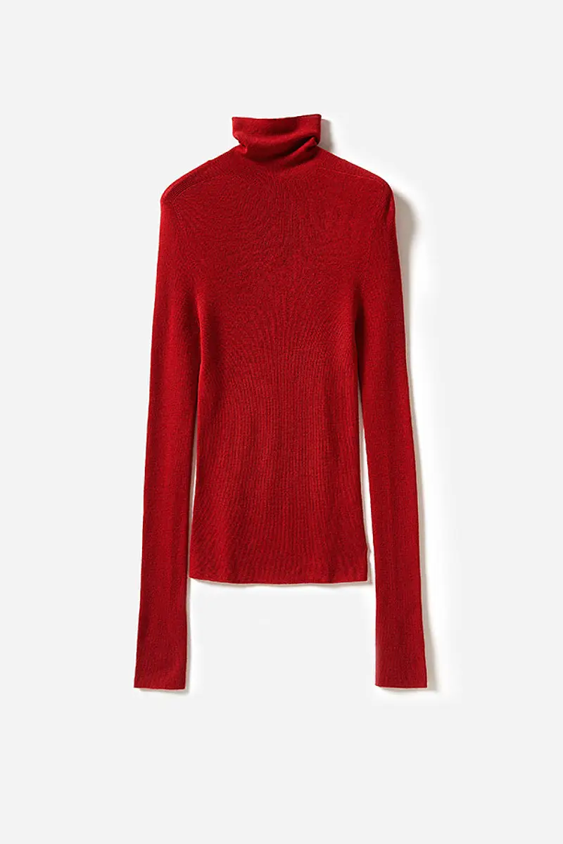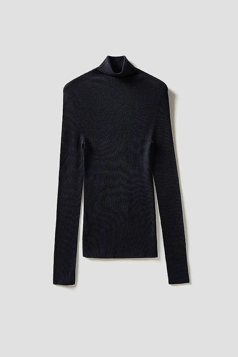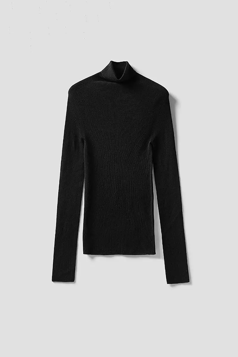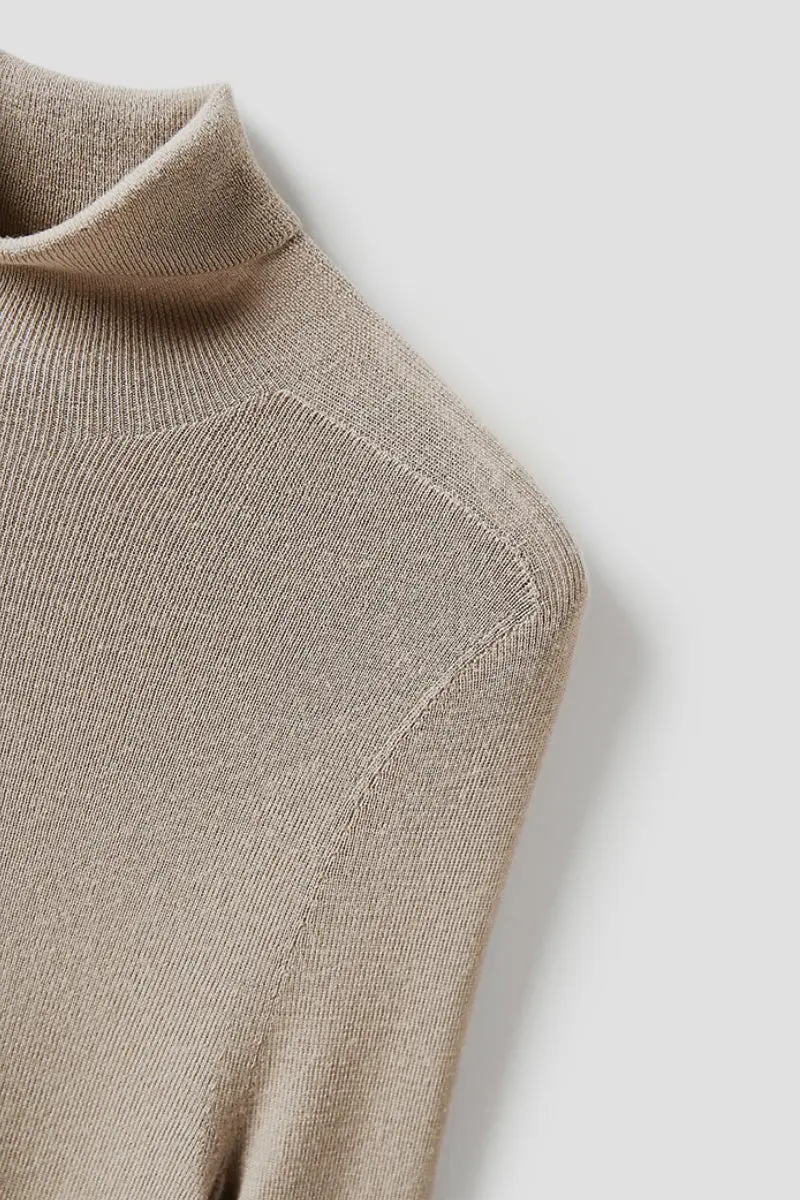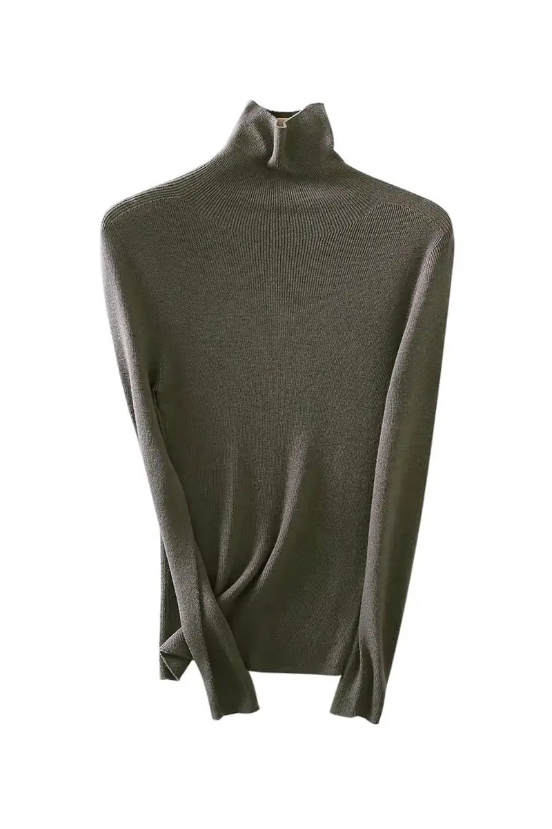 Slim Seamless Wool Turtleneck Sweater with Thumb Holes