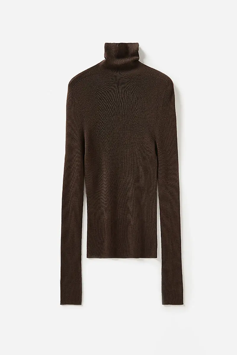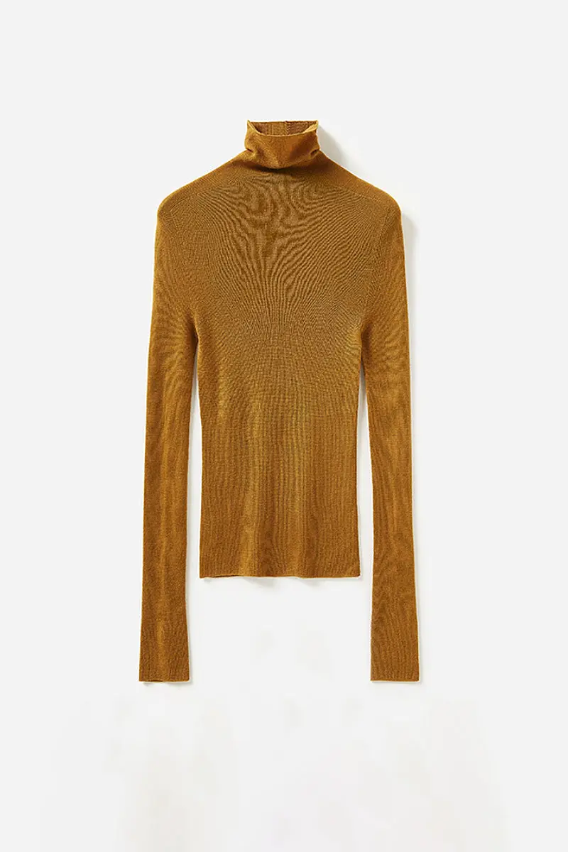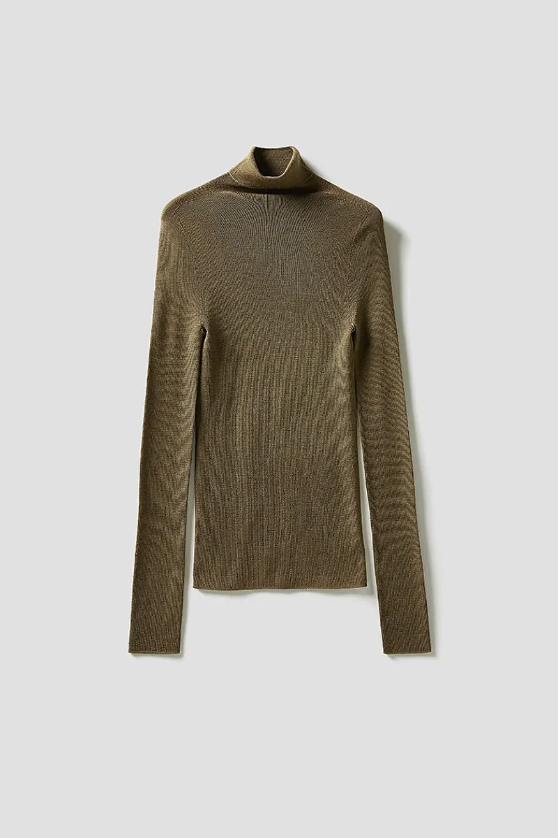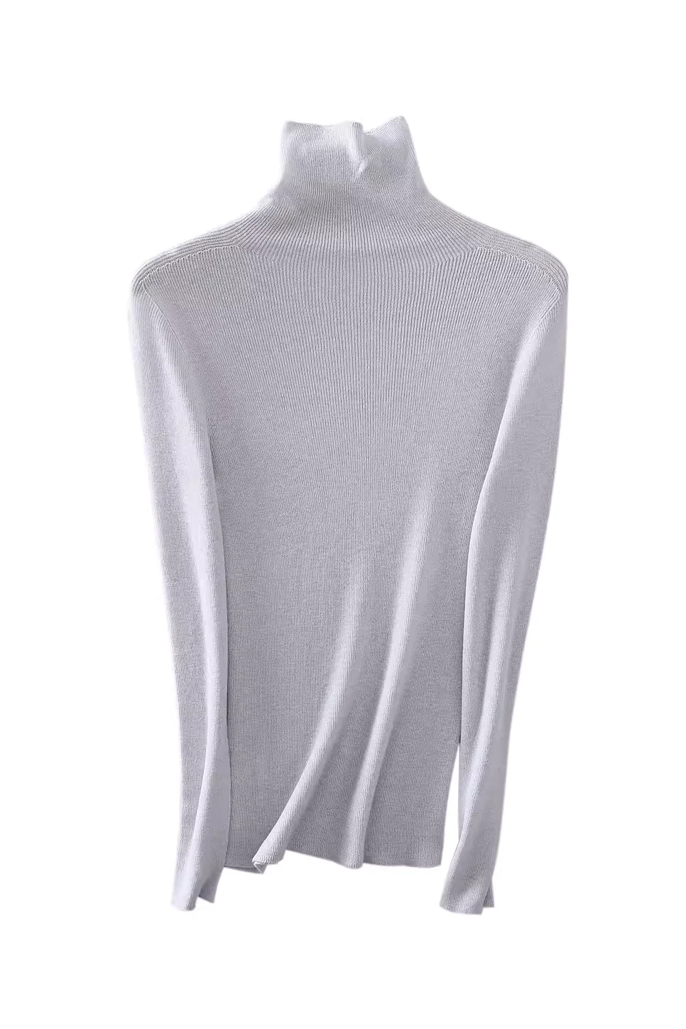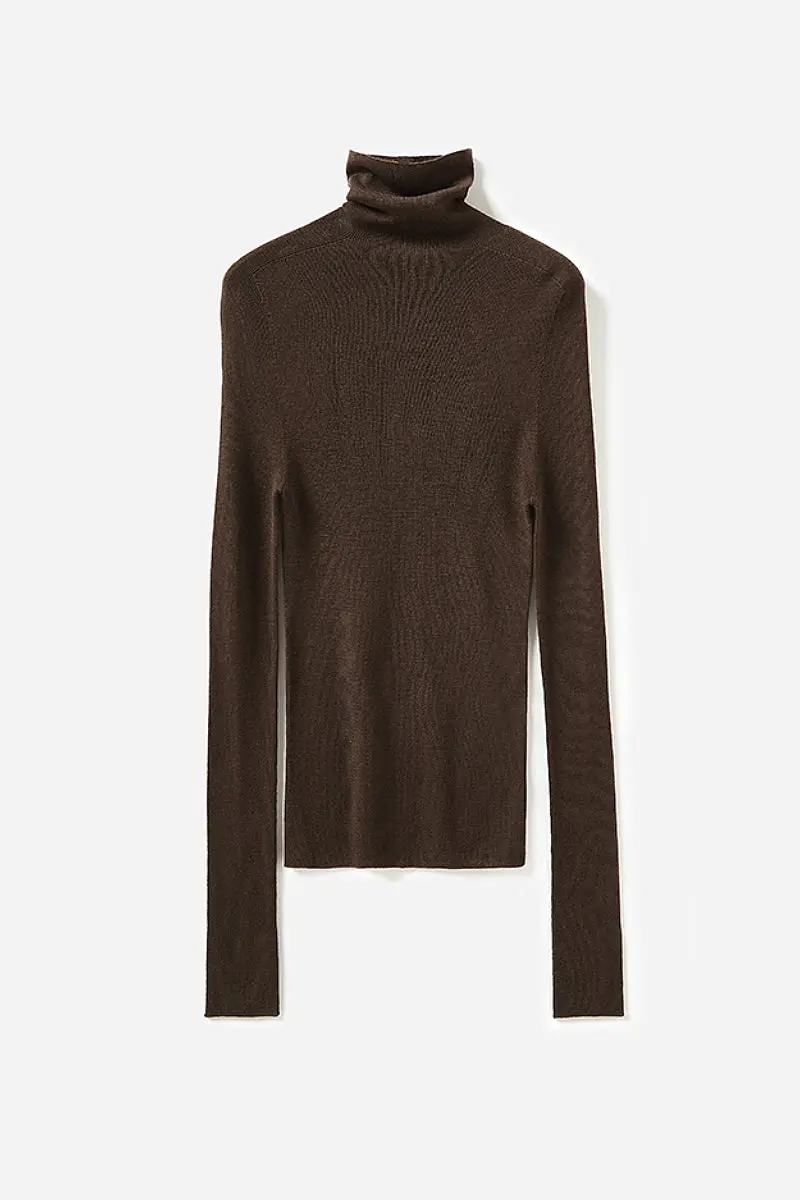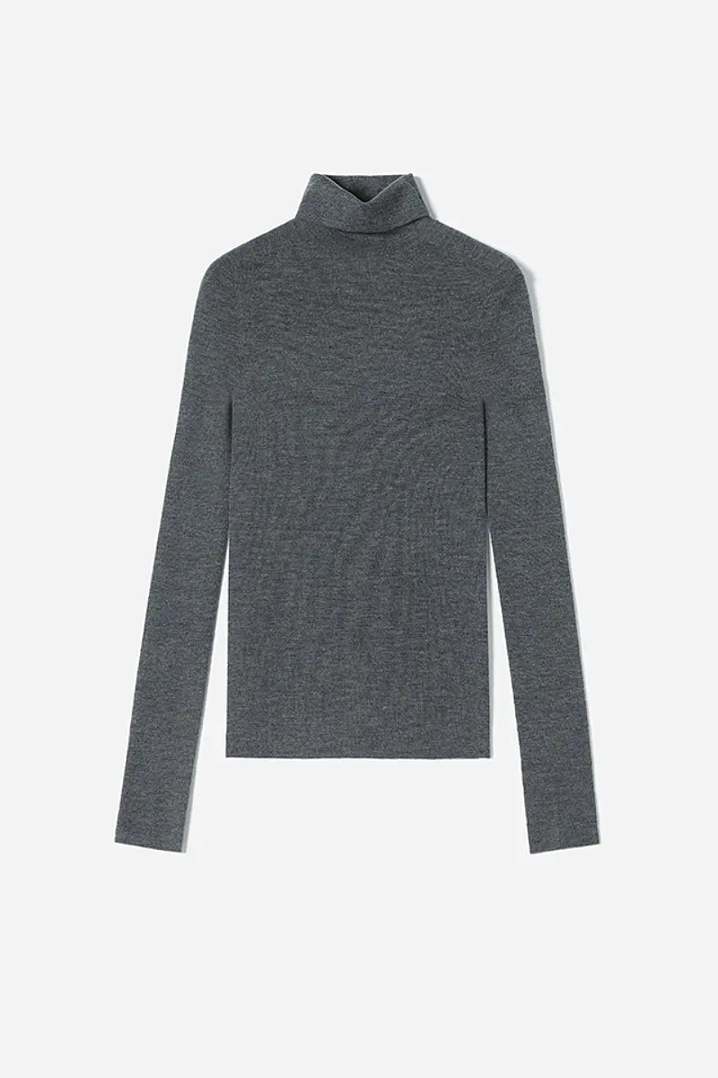 Slim Seamless Wool Turtleneck Sweater with Thumb Holes