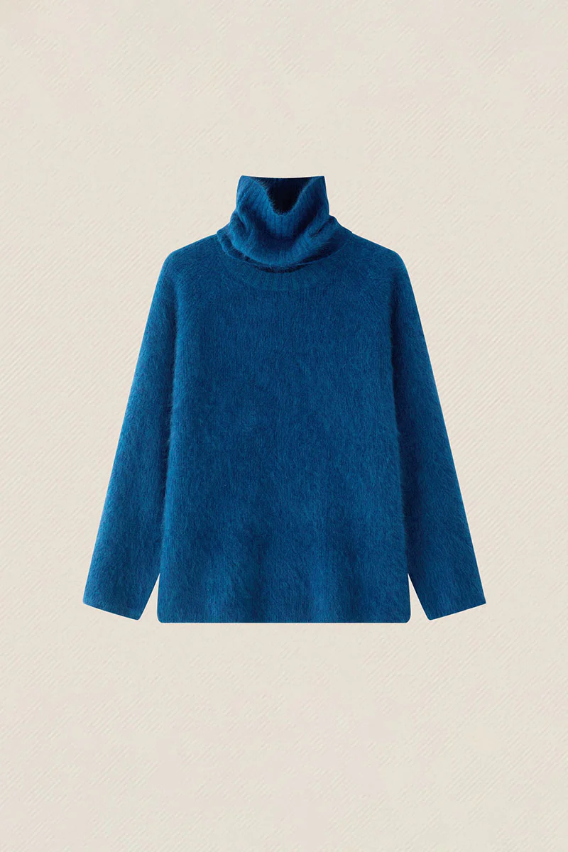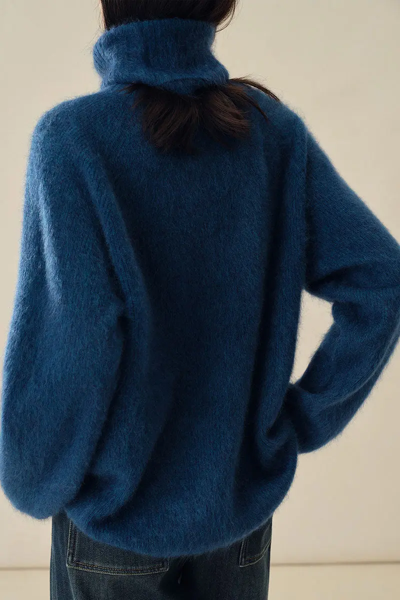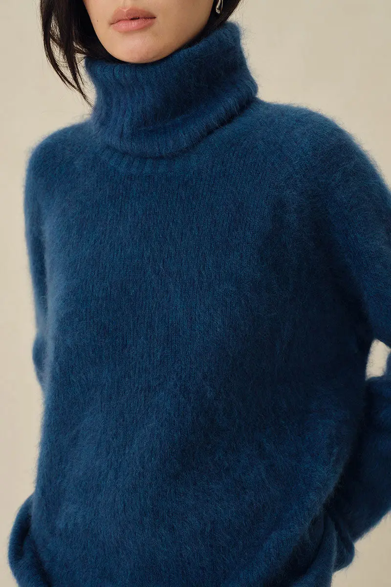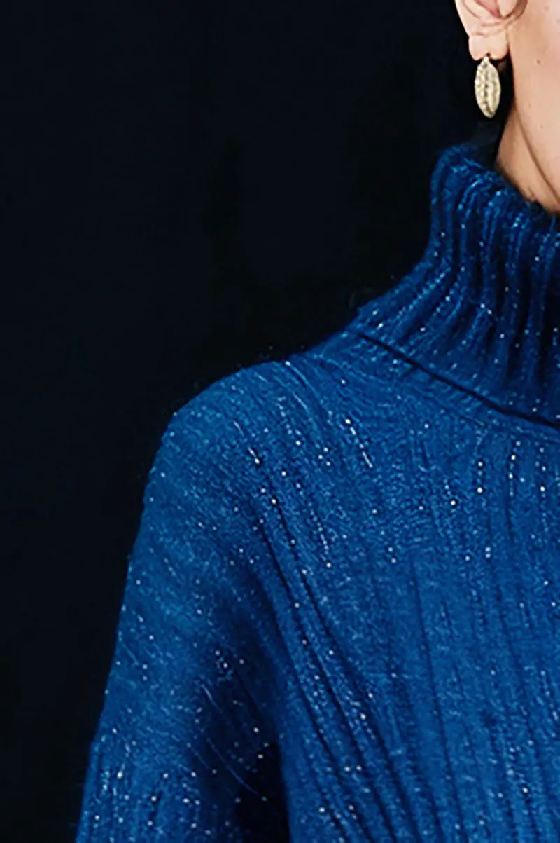 Wool Ribbed Turtleneck Shimmer Sweater in Royal Blue