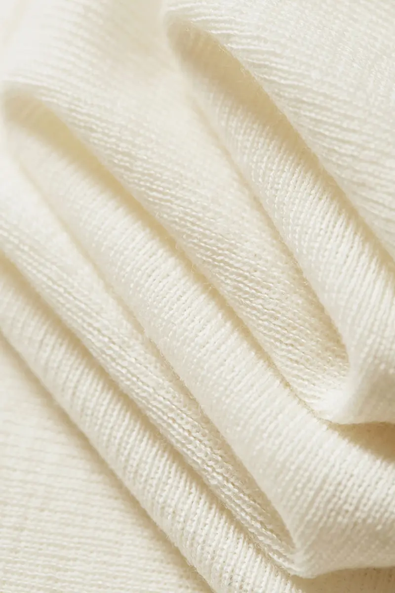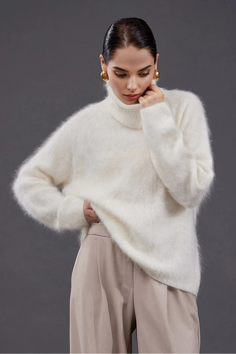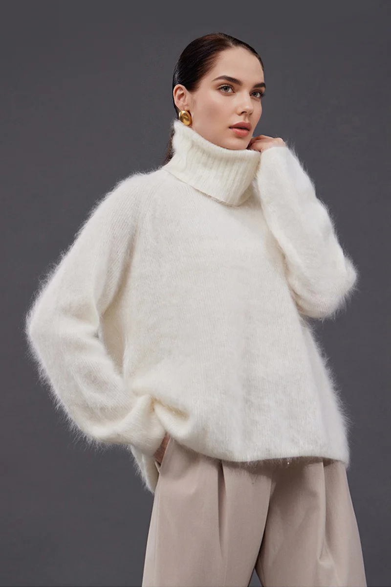 Featherlight Cashmere-Silk Turtleneck Sweater in White