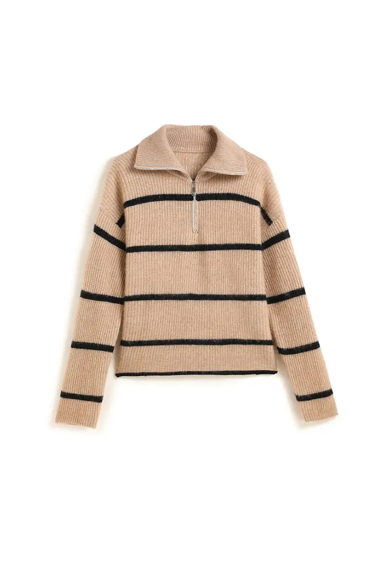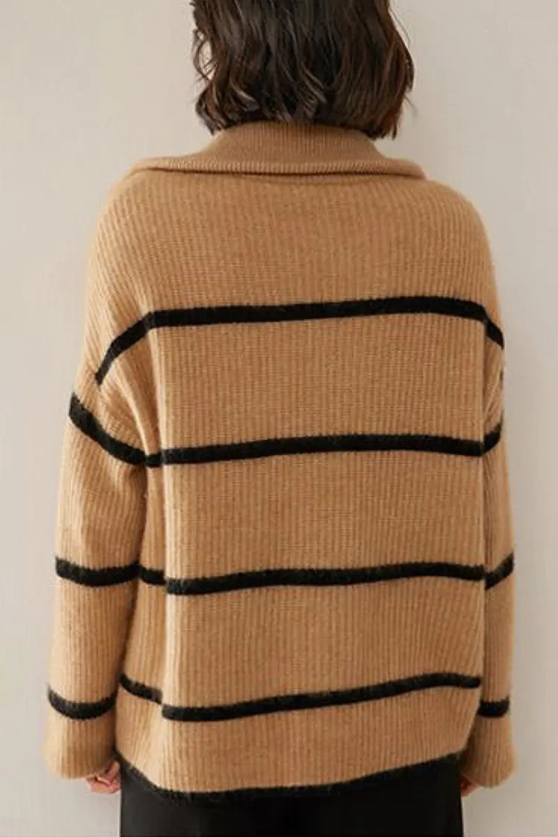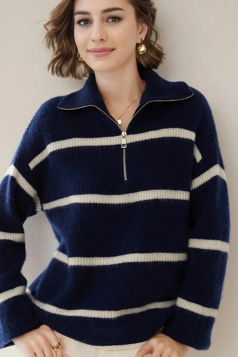 Striped Chunky Half-Zip Cashmere Turtleneck Sweater