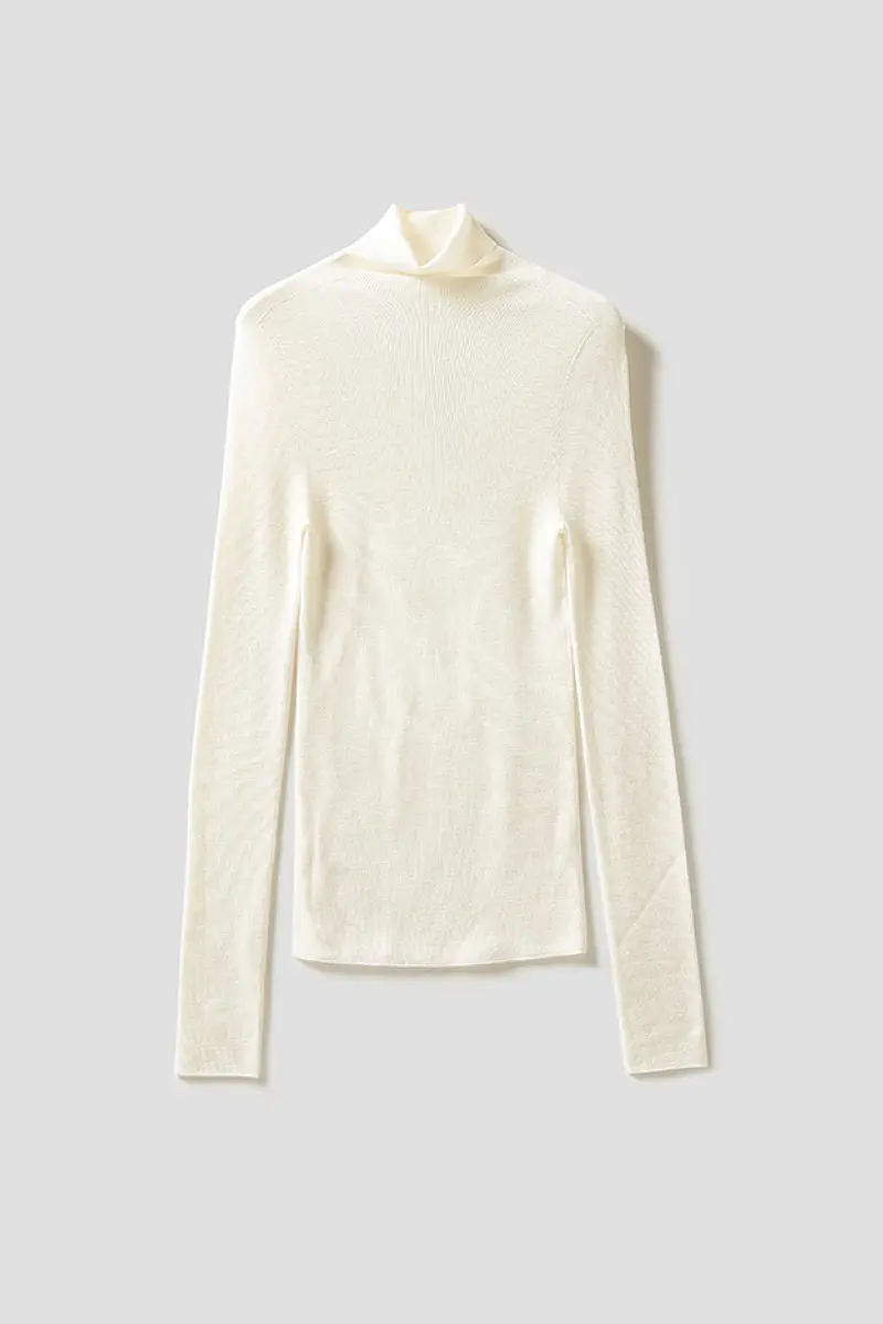 Lightweight Cashmere Fine-Knit Funnel Neck Sweater