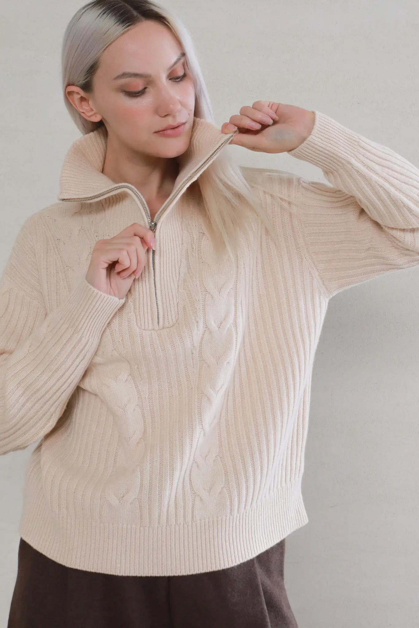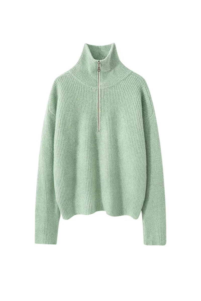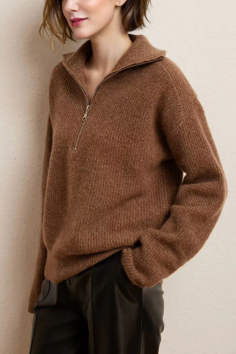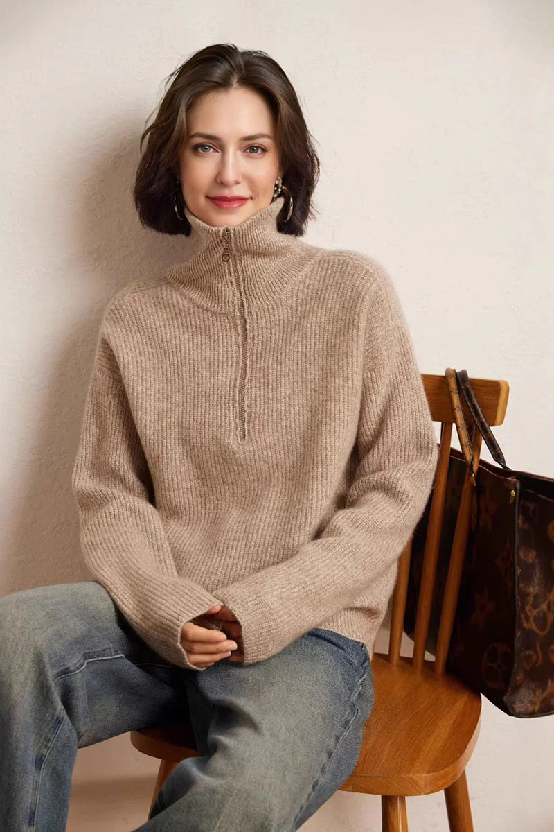 Cozy Cashmere Half Zip Turtleneck Pullover Sweater