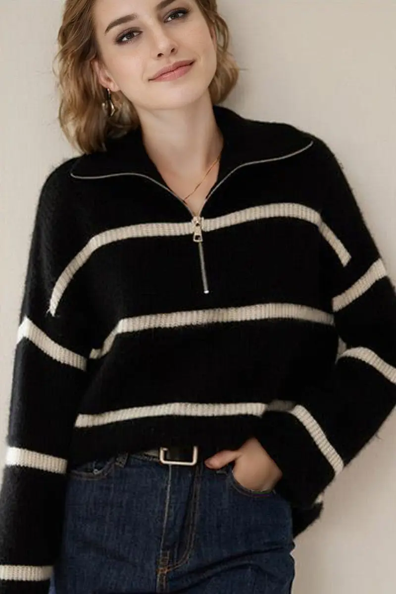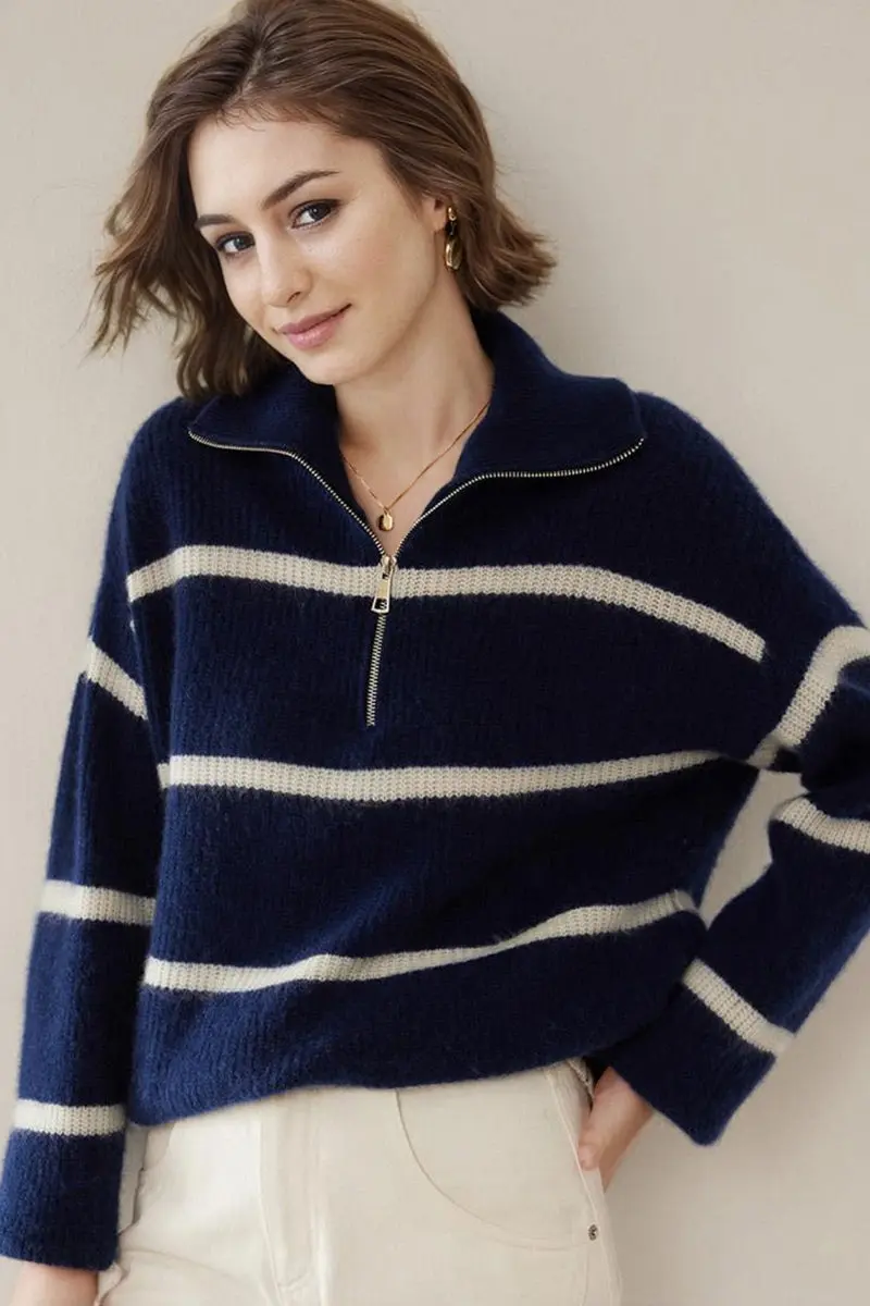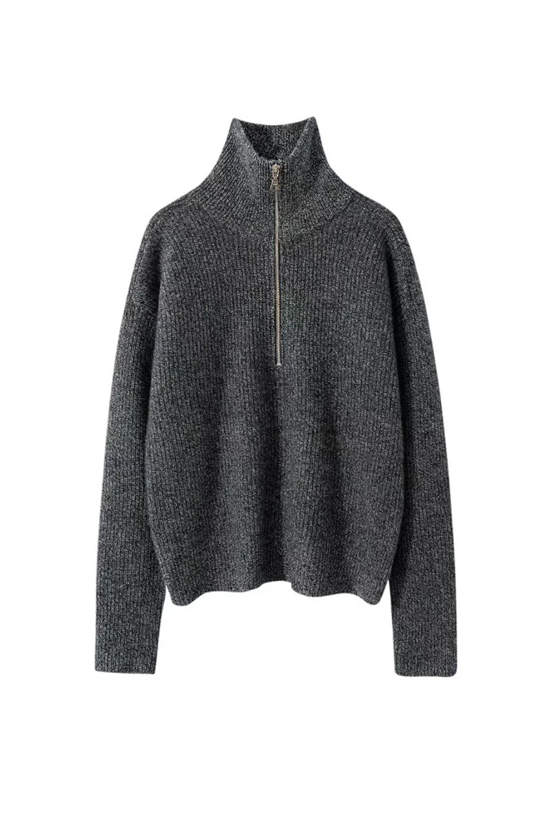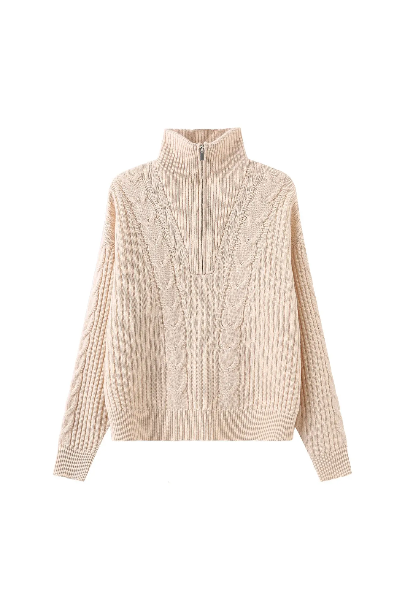 Cozy Cashmere Half Zip Turtleneck Pullover Sweater