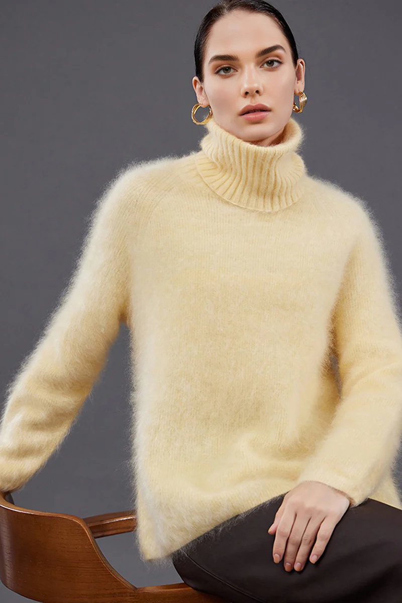 Featherlight Washable Cashmere-Silk Turtleneck Sweater