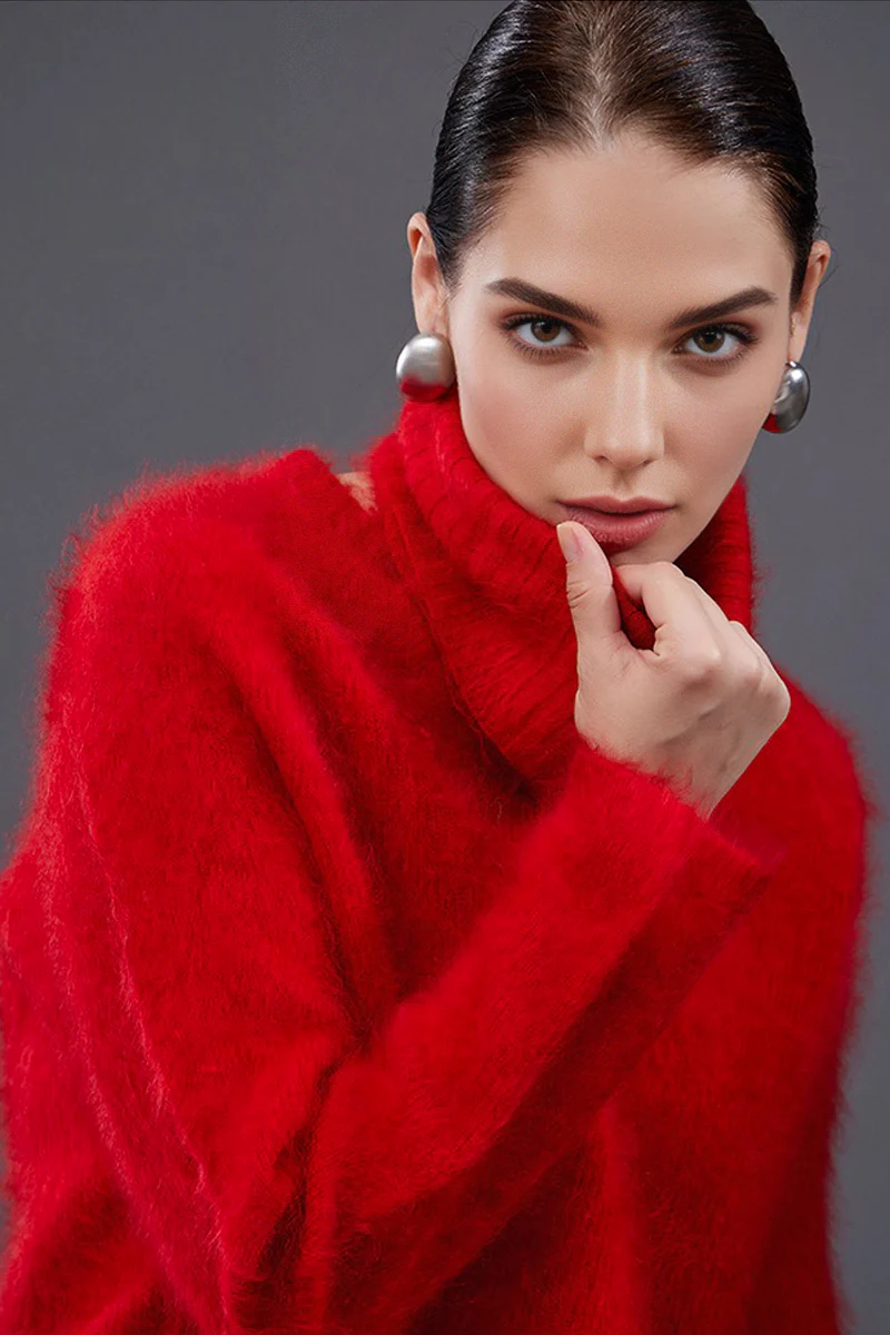 Slim Turtleneck Cashmere Sweater with Thumb Holes