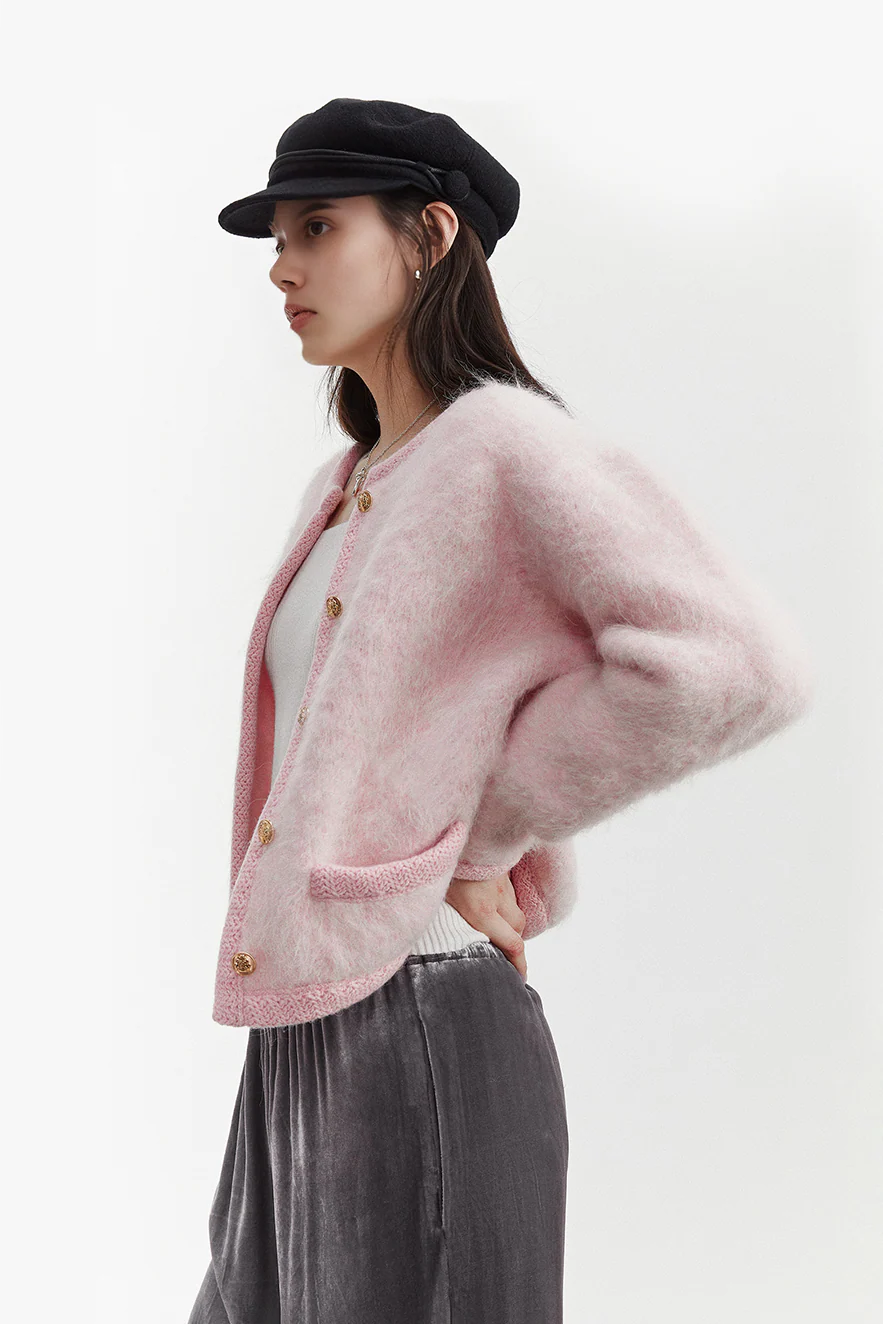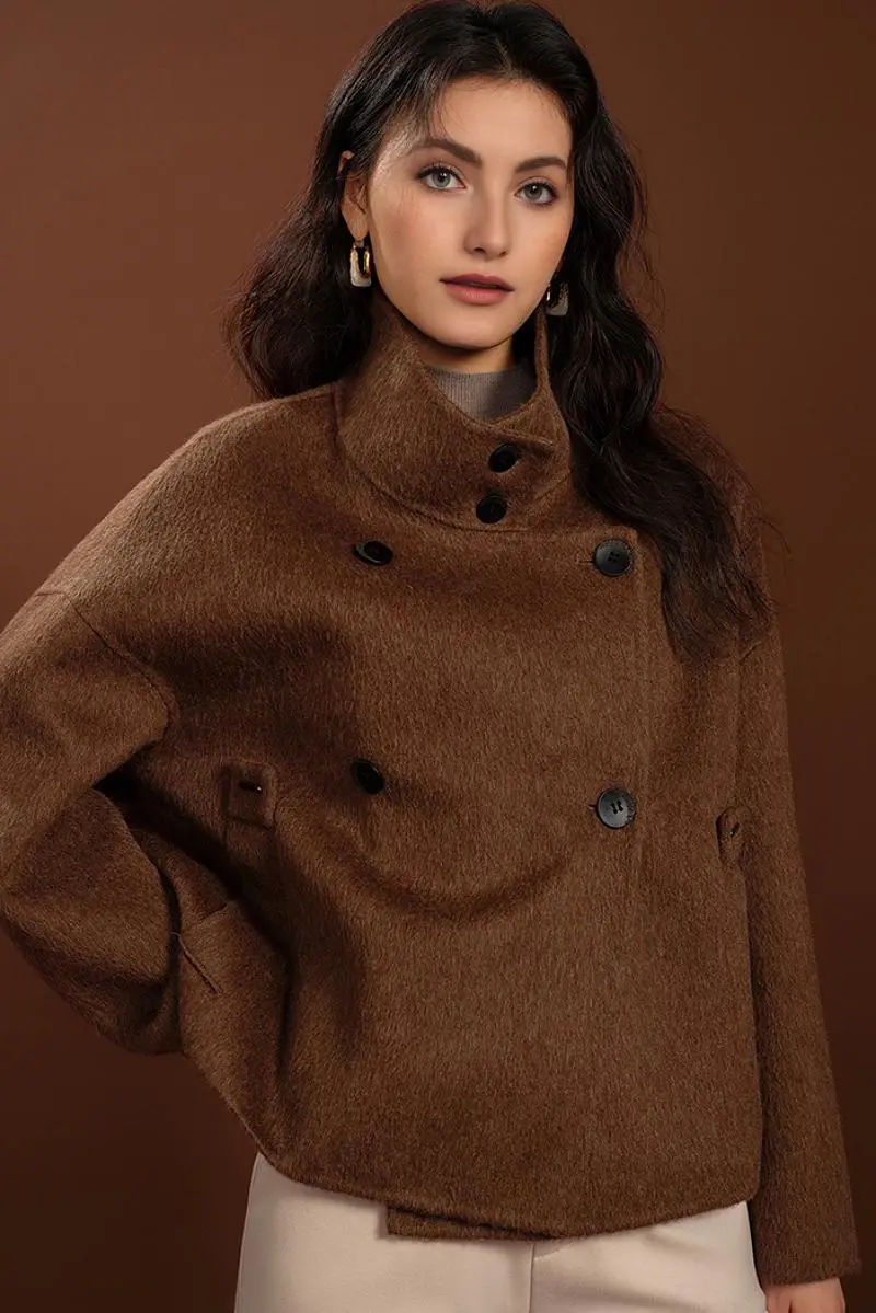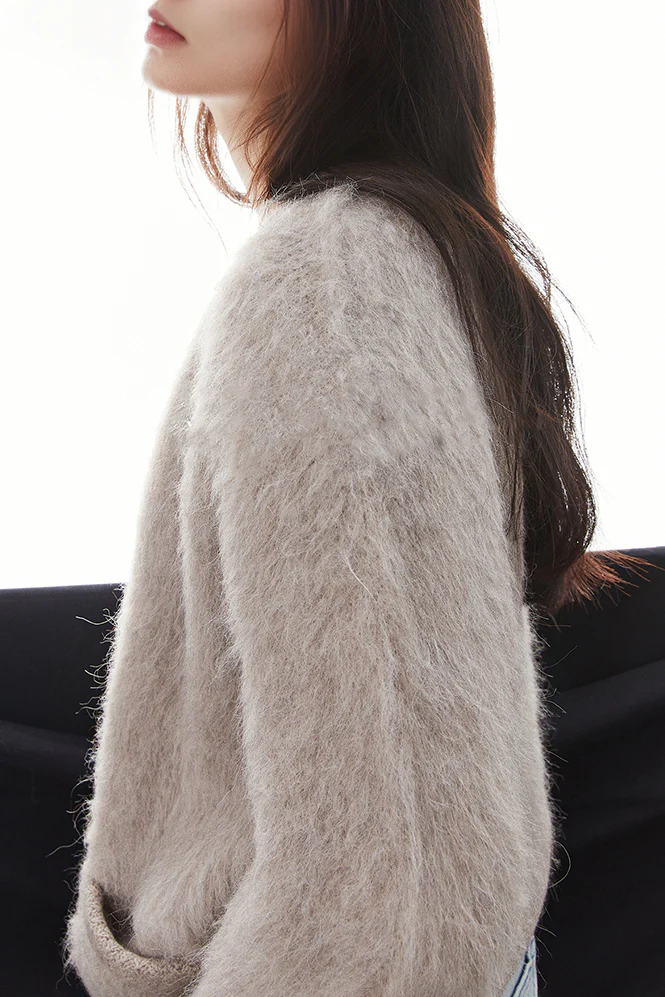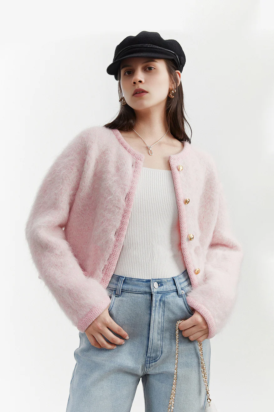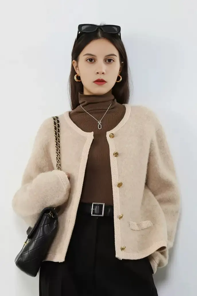 Golden Button Fluffy Alpaca Wool Knit Bouncle Jacket