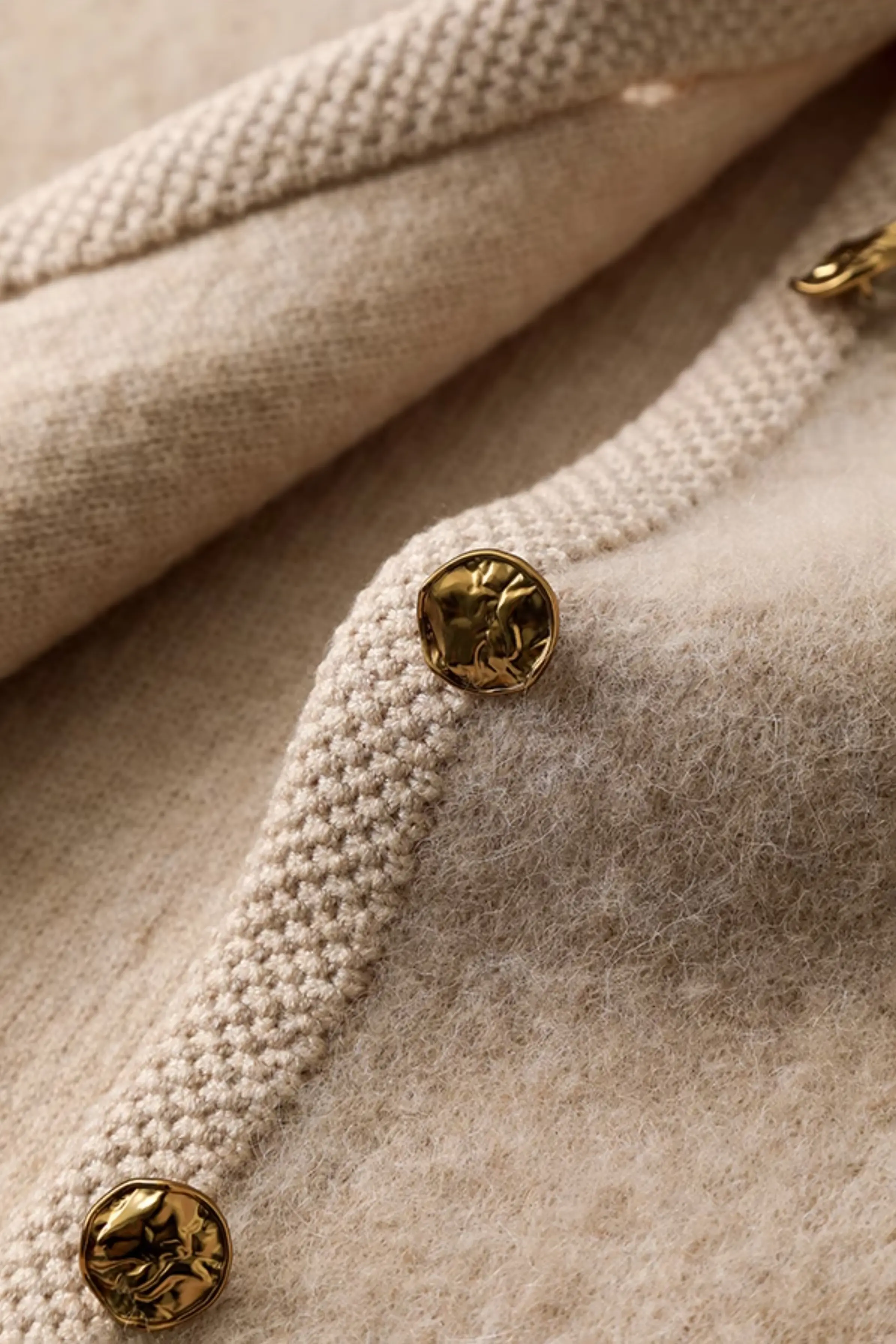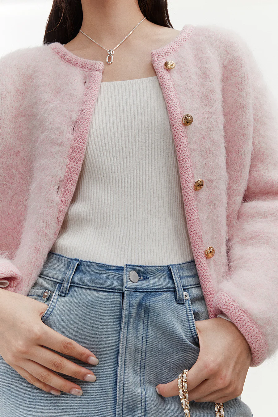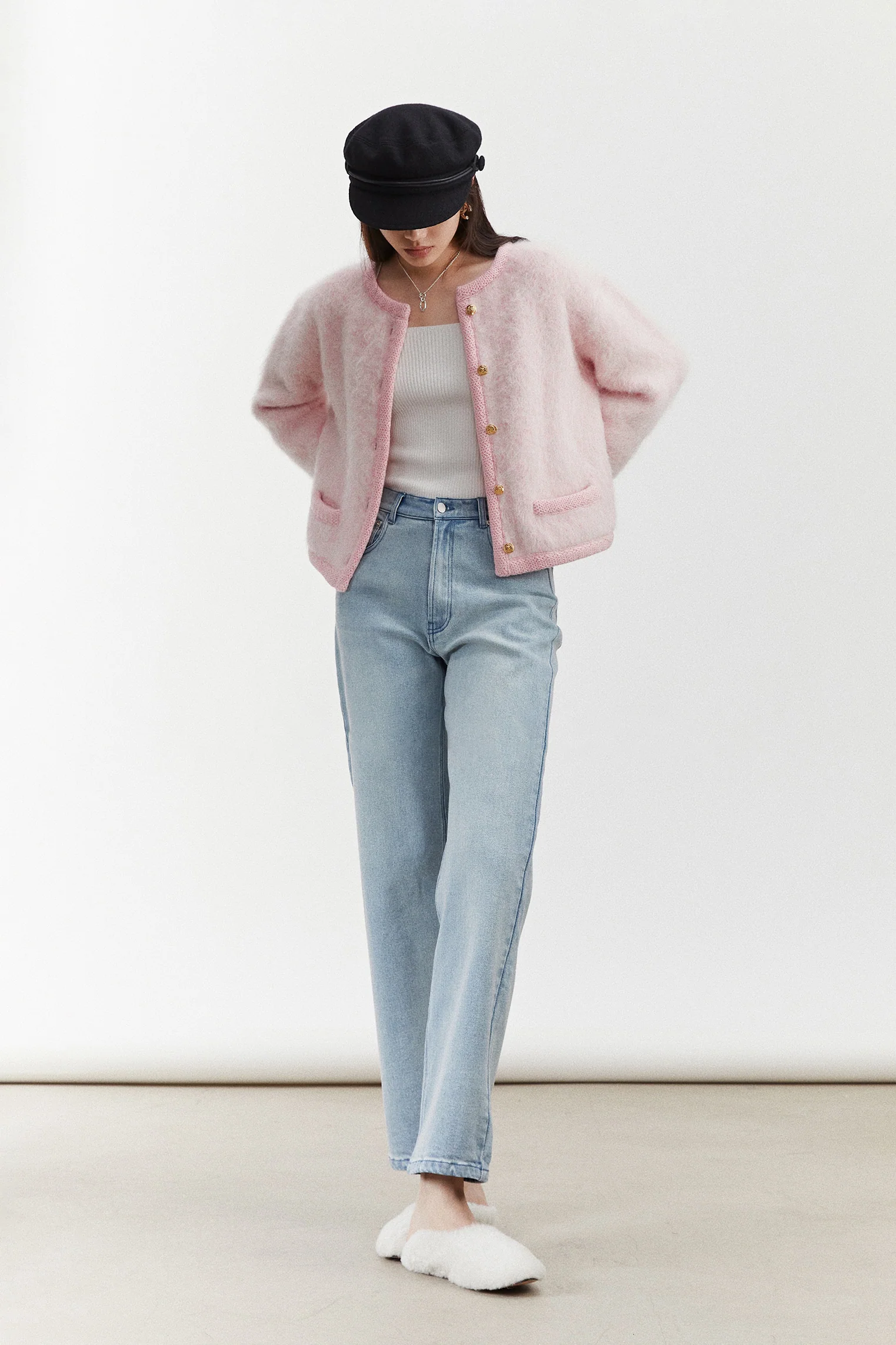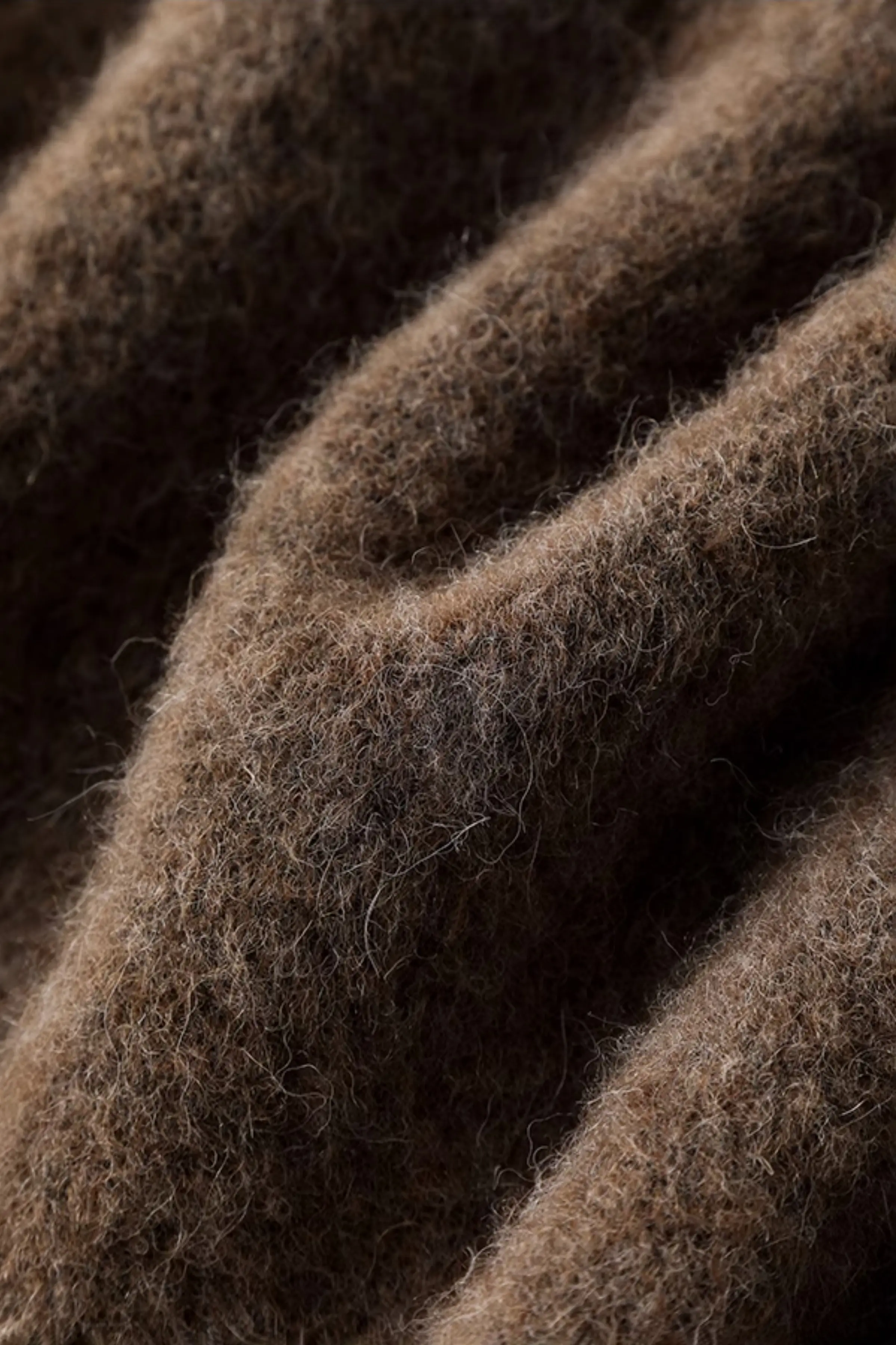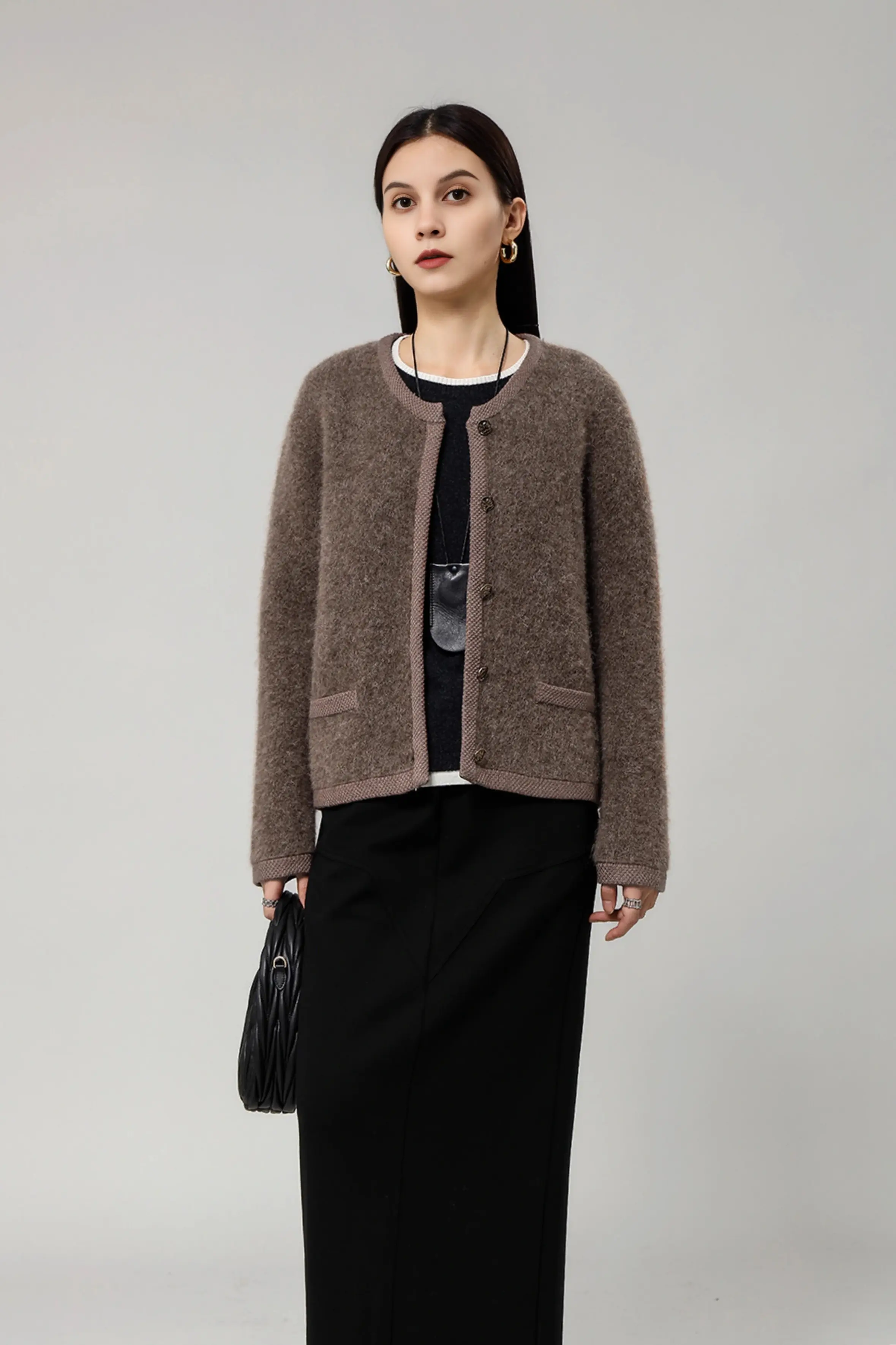 Golden Button Fluffy Alpaca Wool Knit Bouncle Jacket