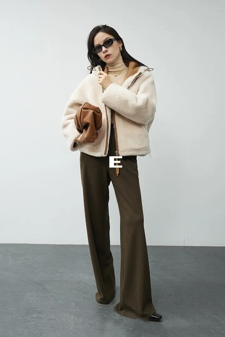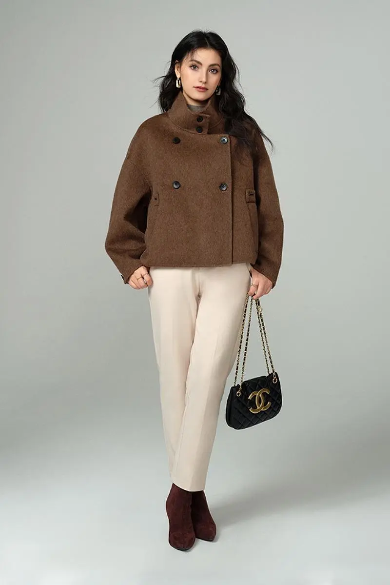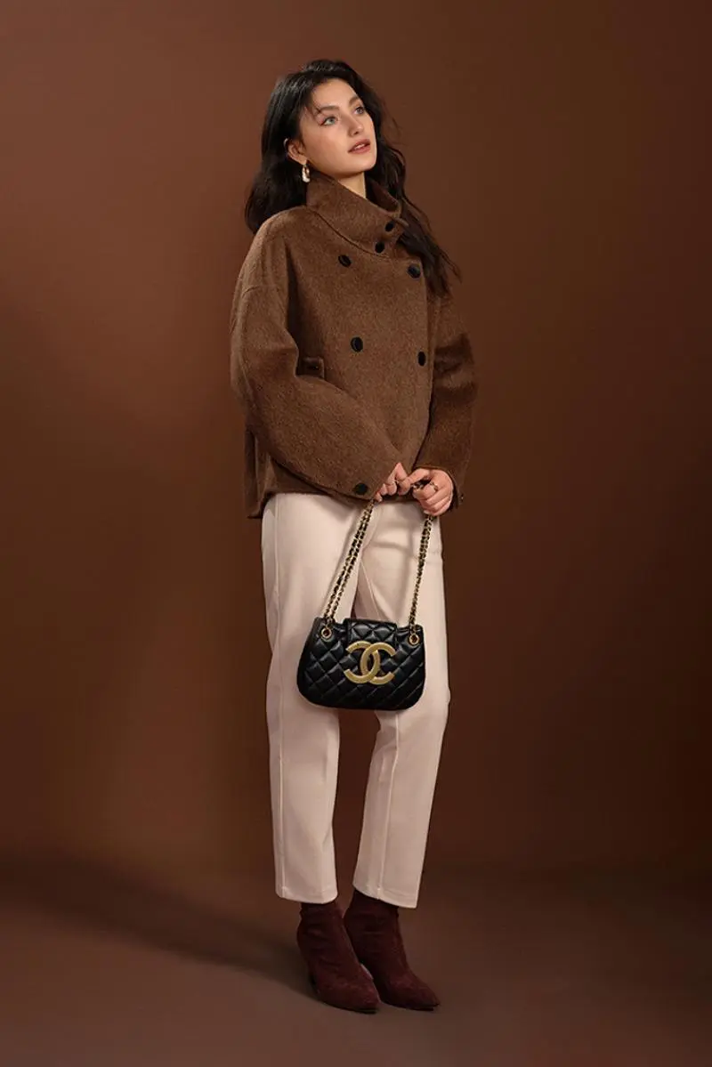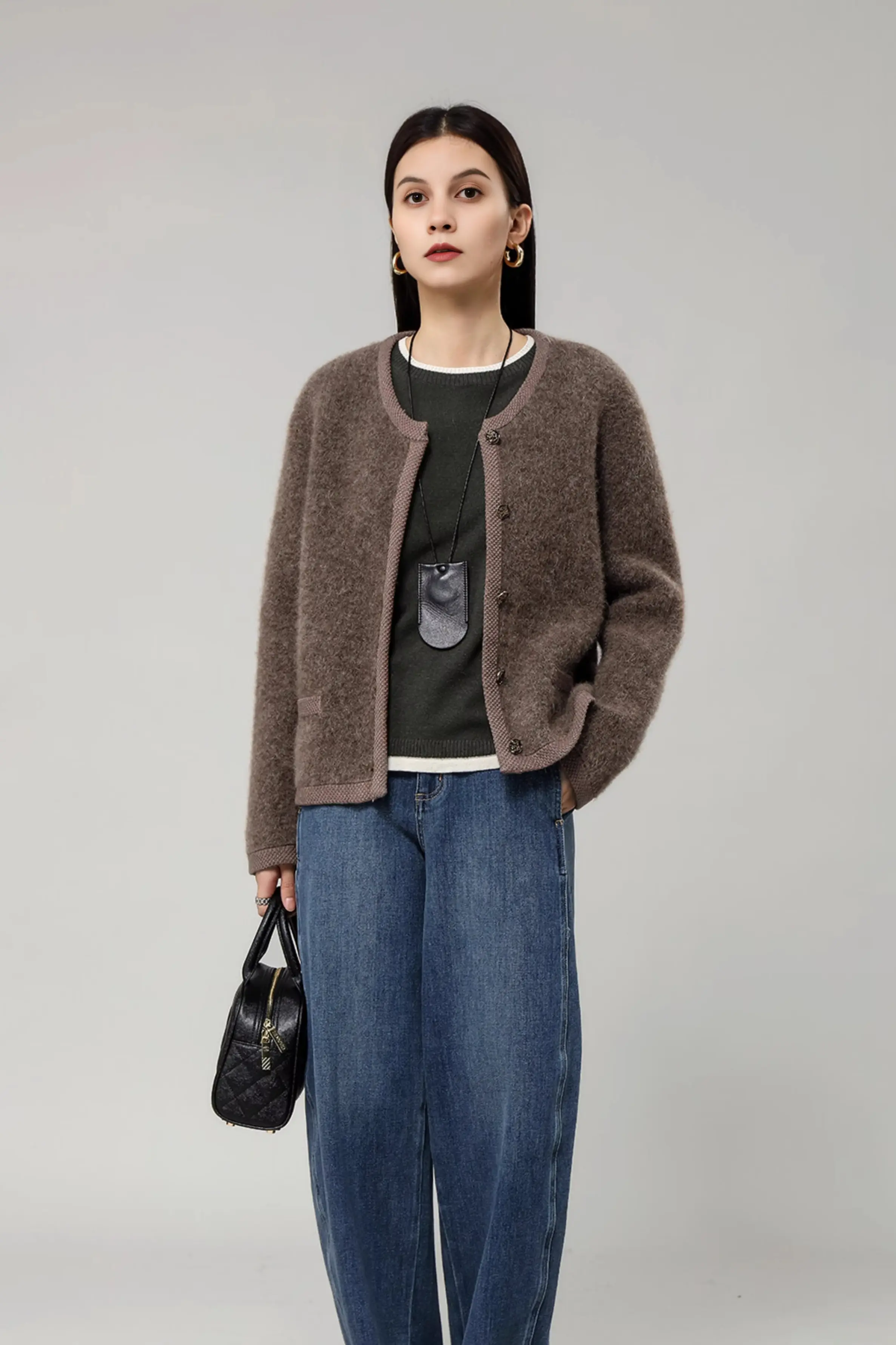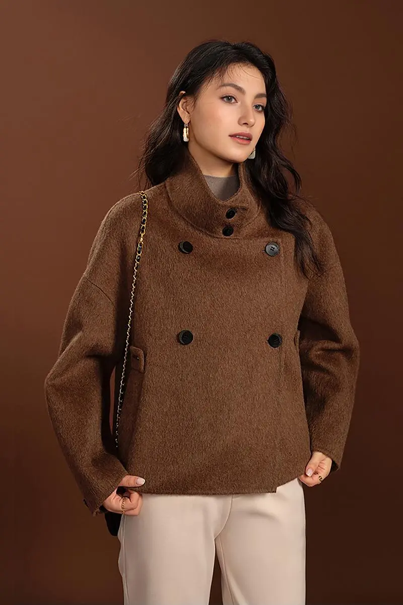 Golden Button Fluffy Alpaca Wool Knit Bouncle Jacket