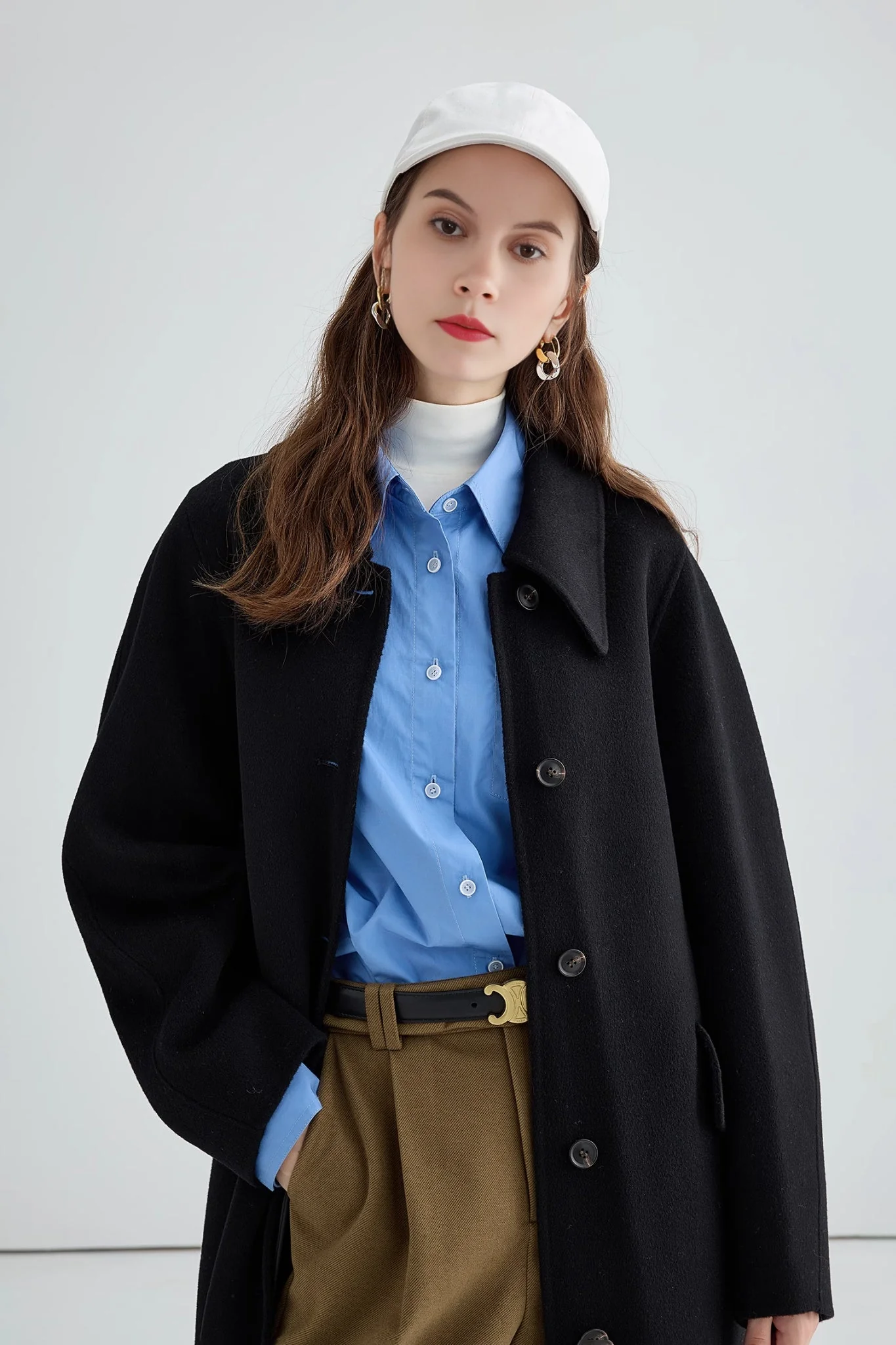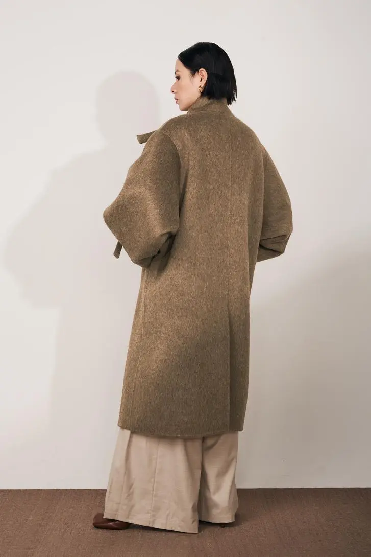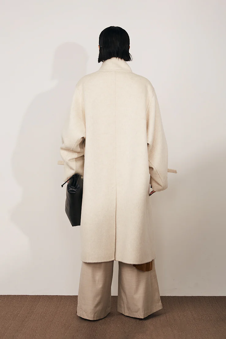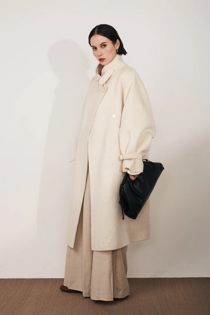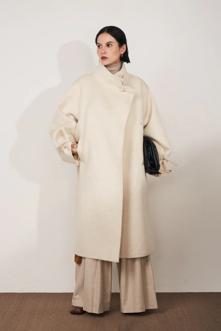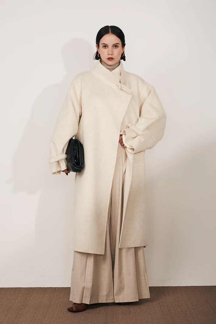 Oversized Reversible Merino Wool Coat With Stand Collar