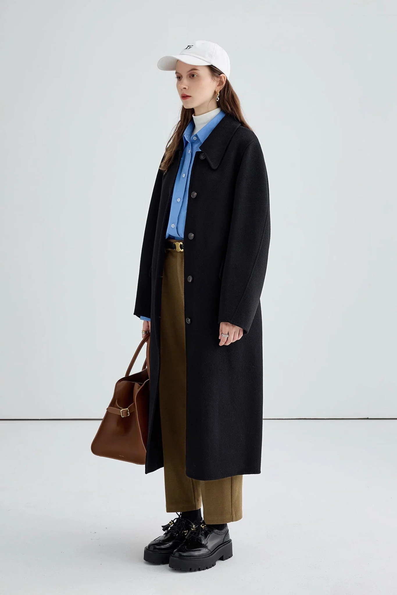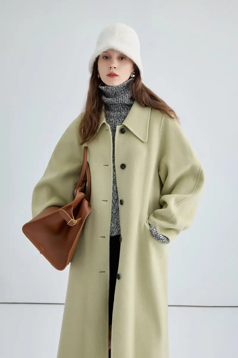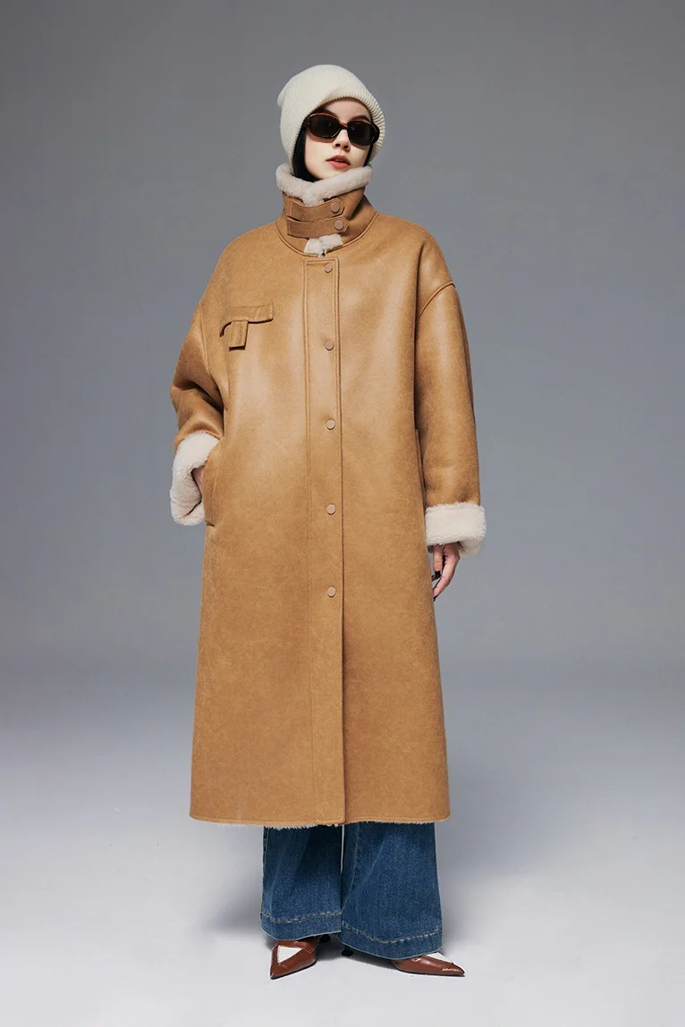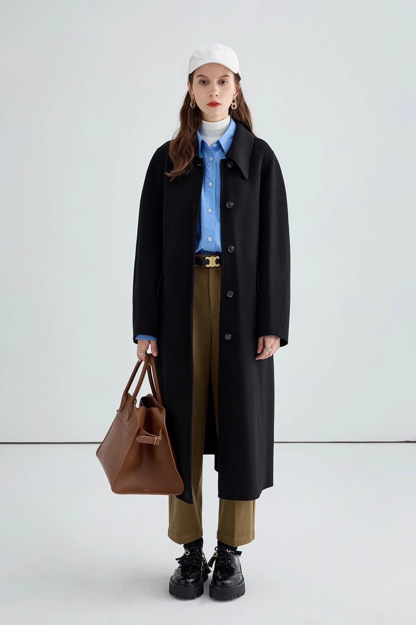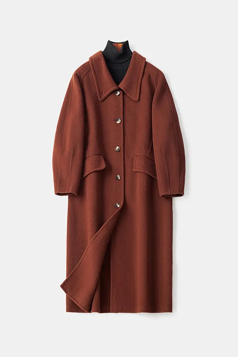 Oversized Reversible Merino Wool Coat With Stand Collar