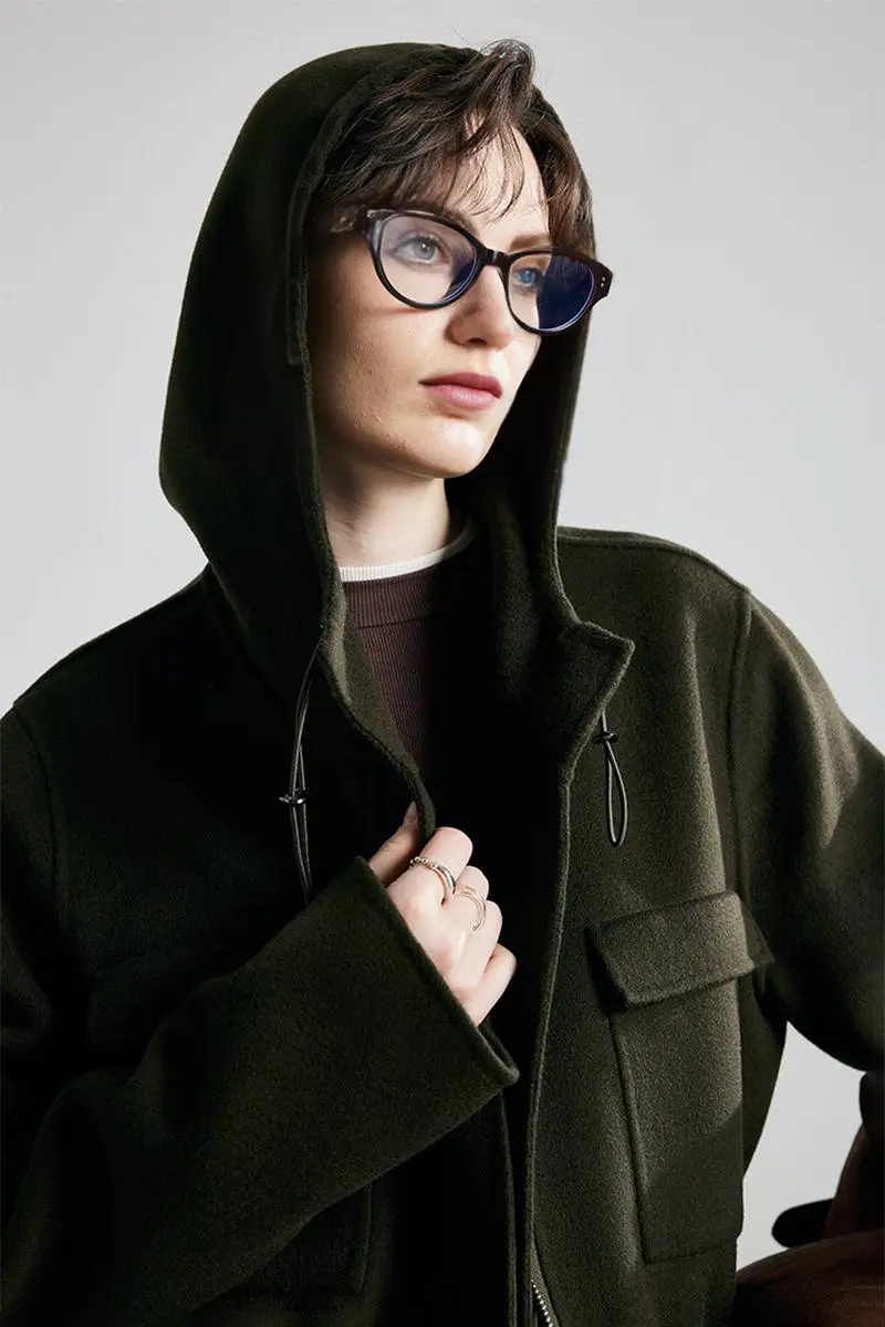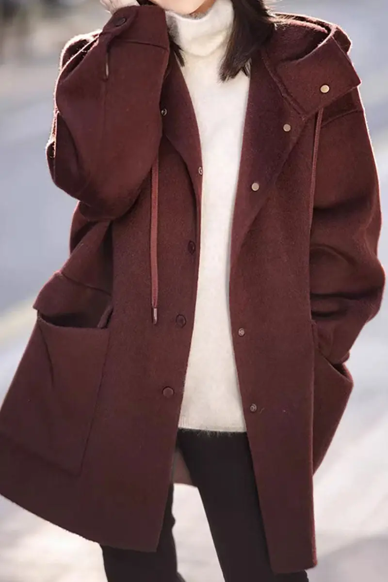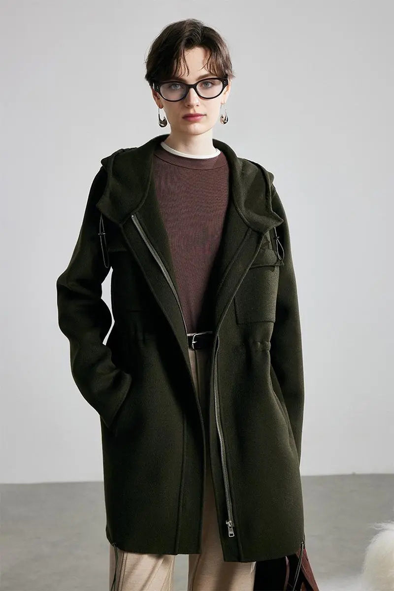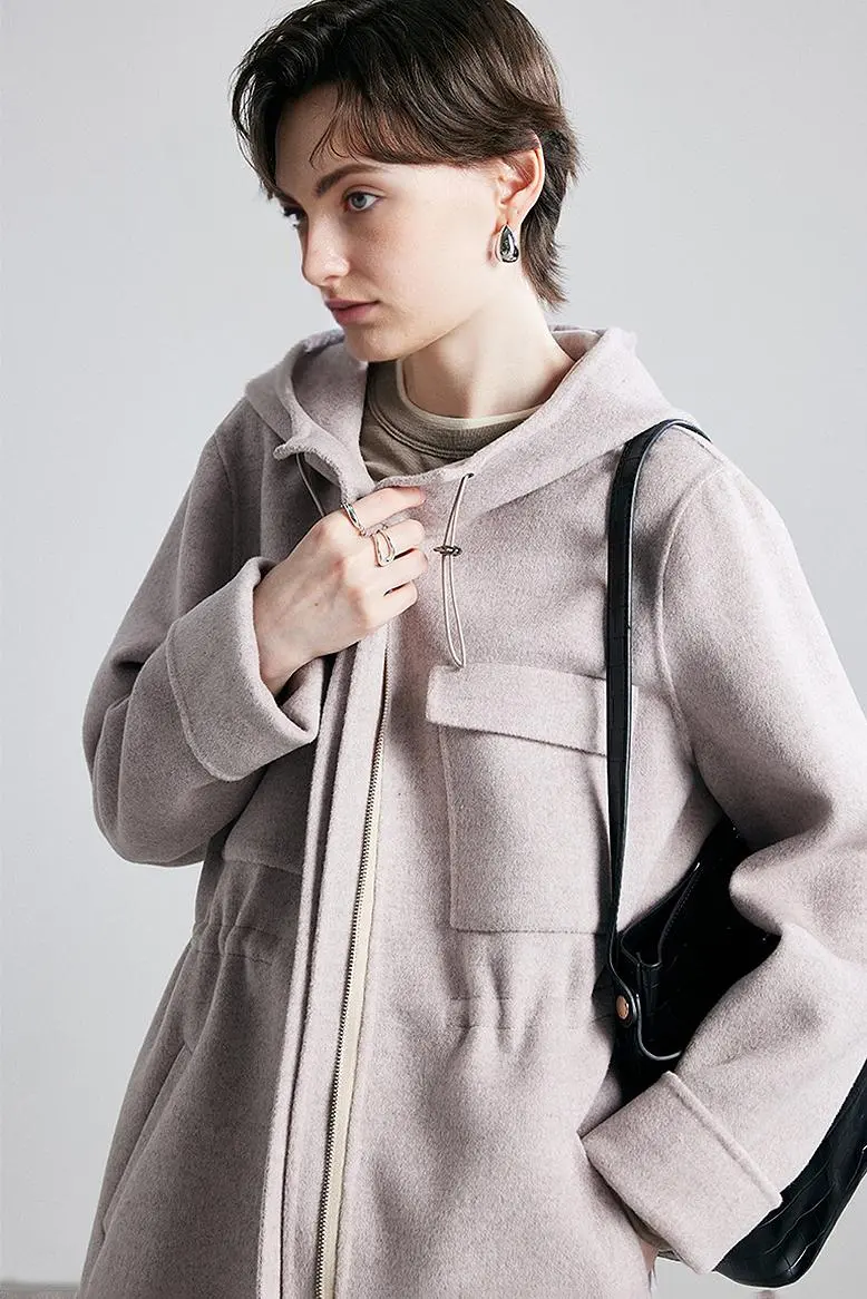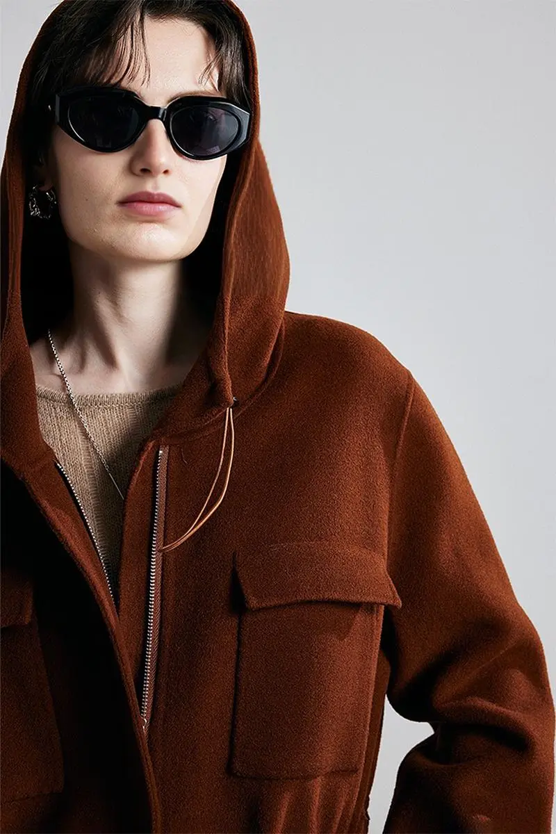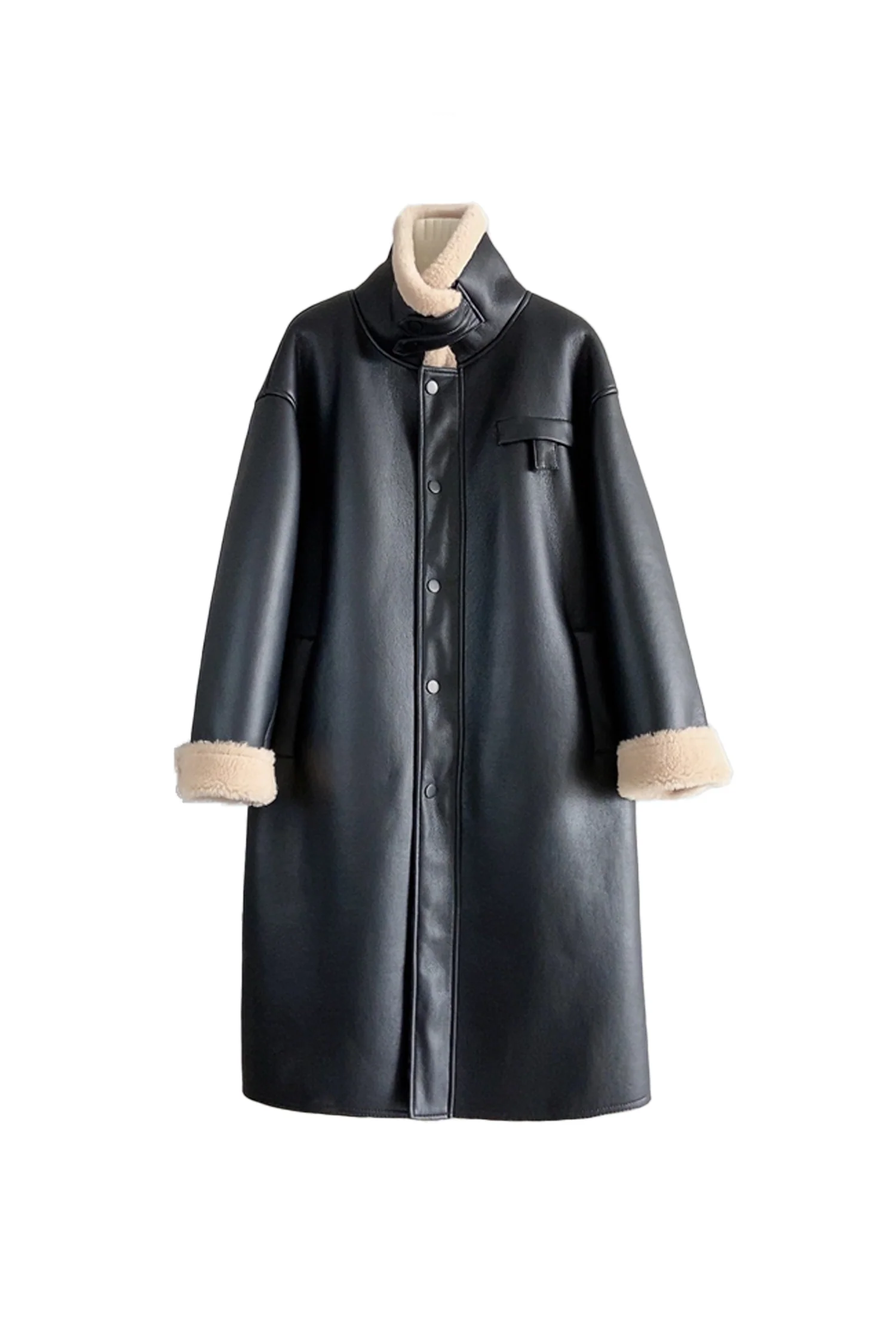 Oversized Reversible Merino Wool Coat With Stand Collar