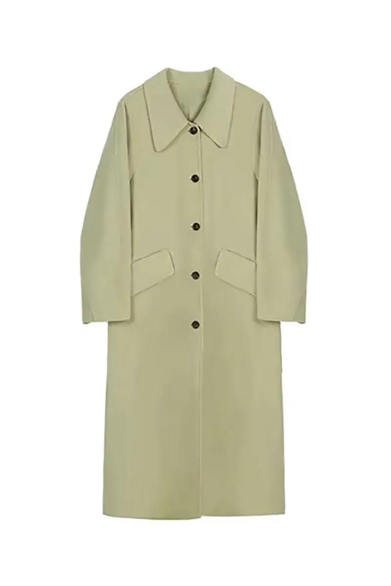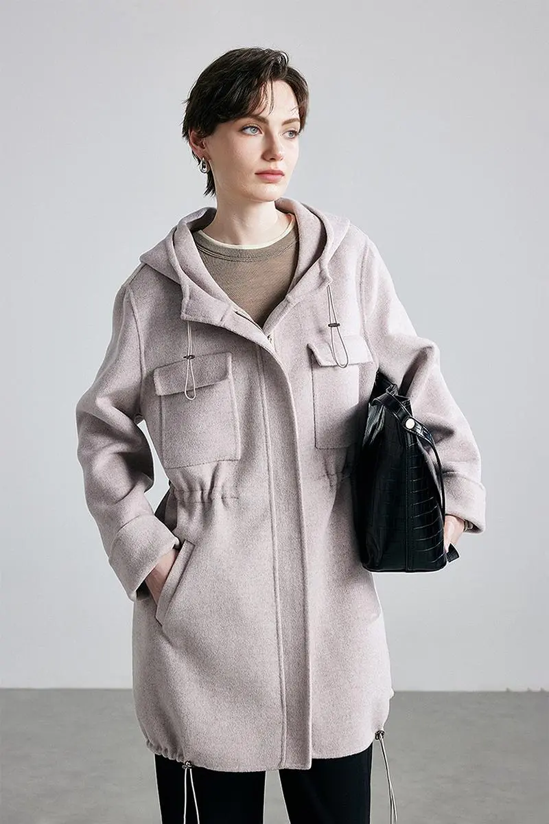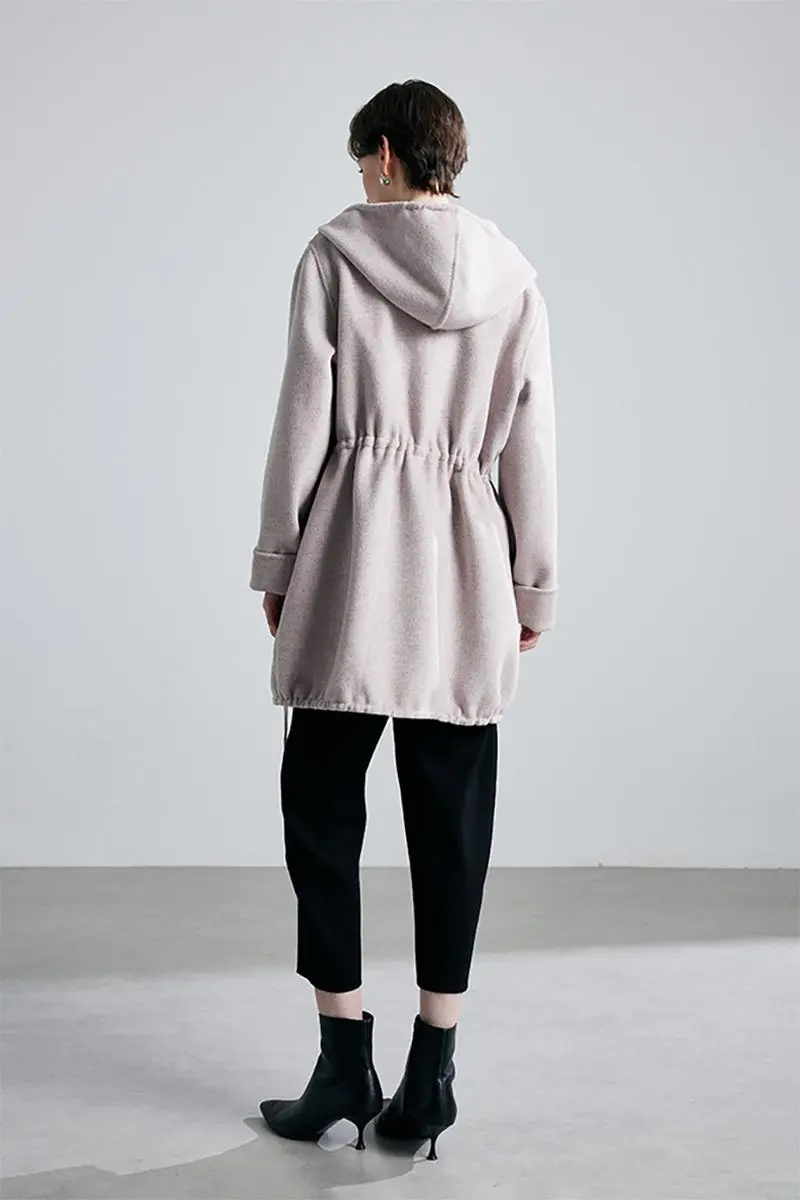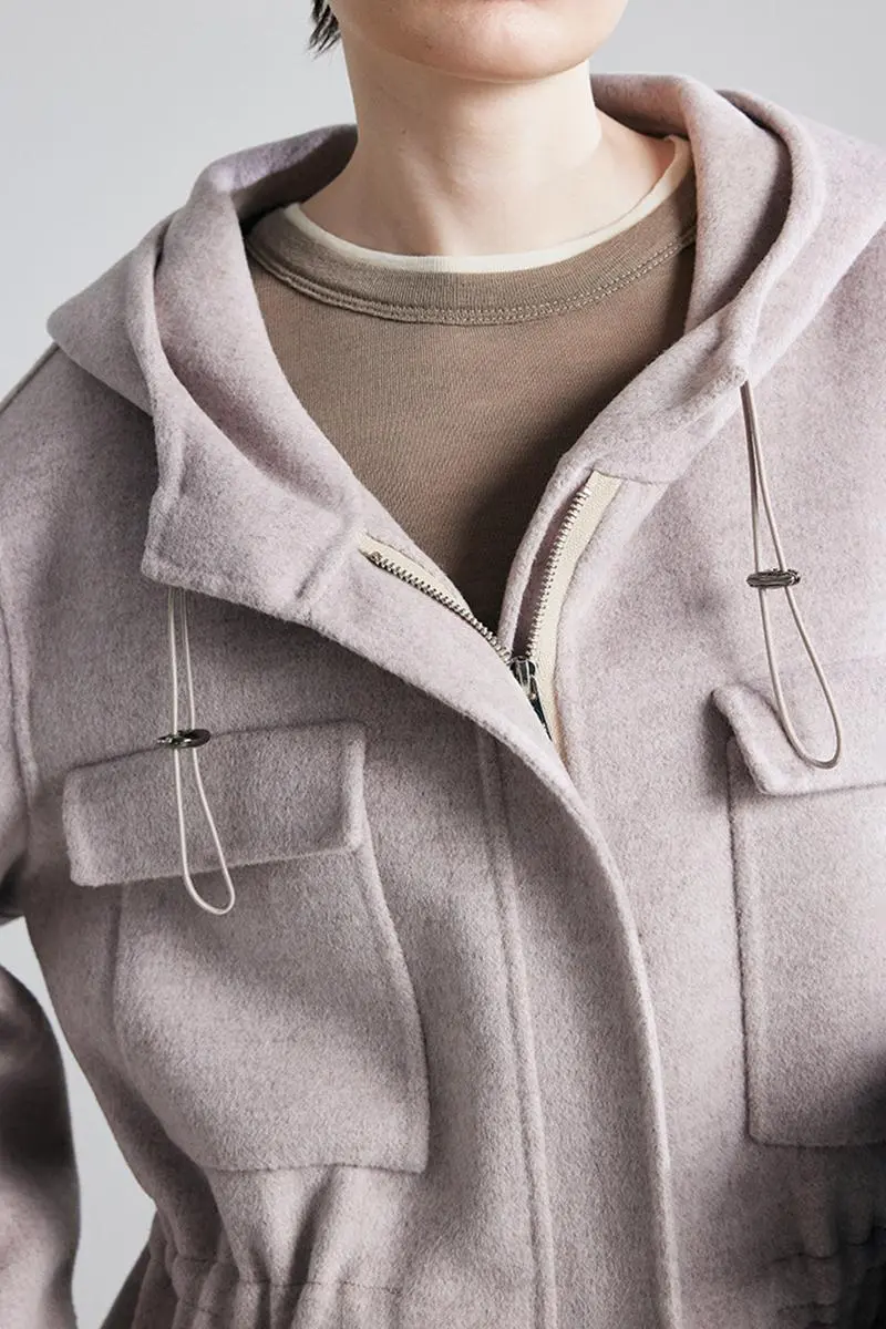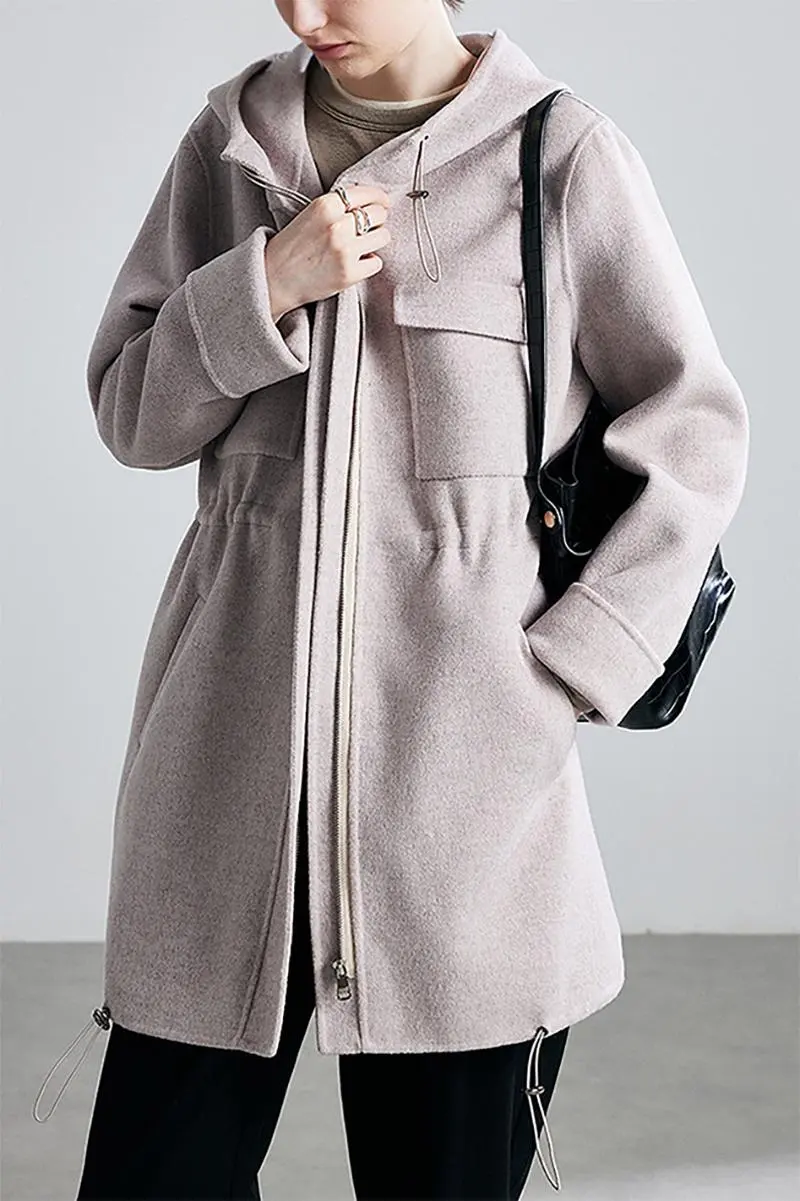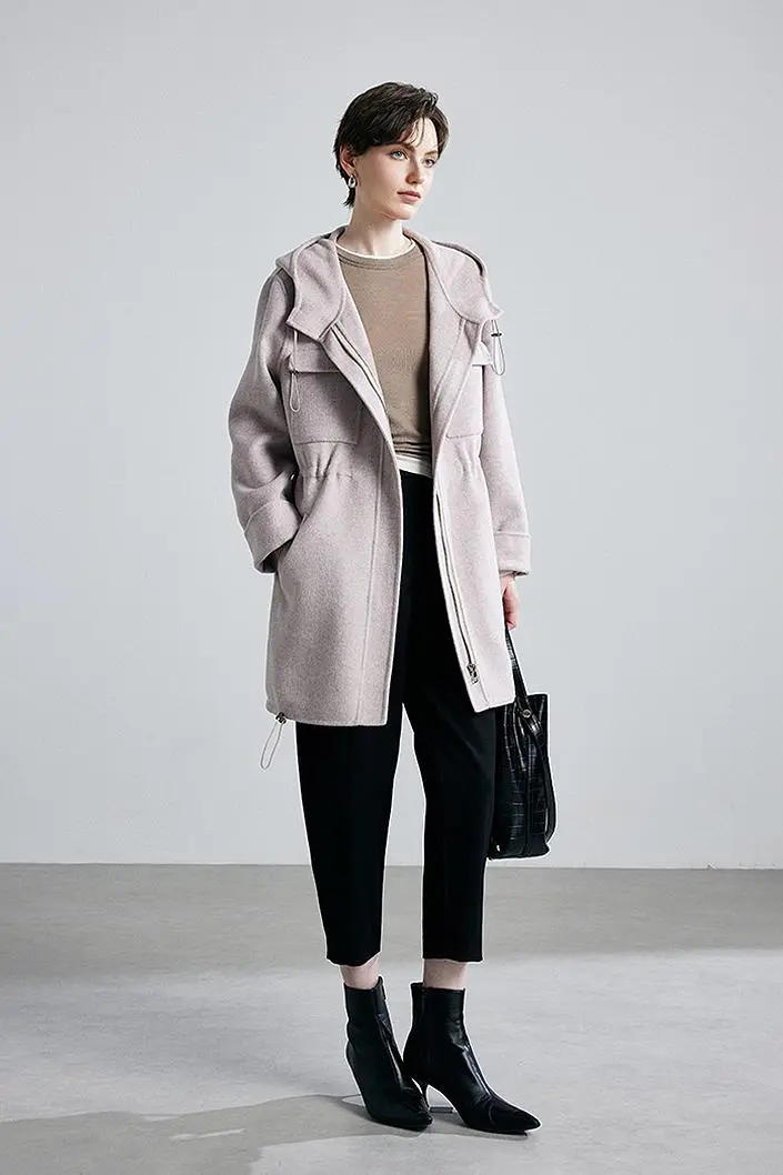 Grey Collarless Double Breasted Wool Cashmere Coat