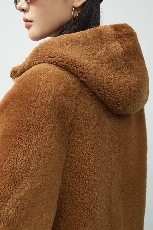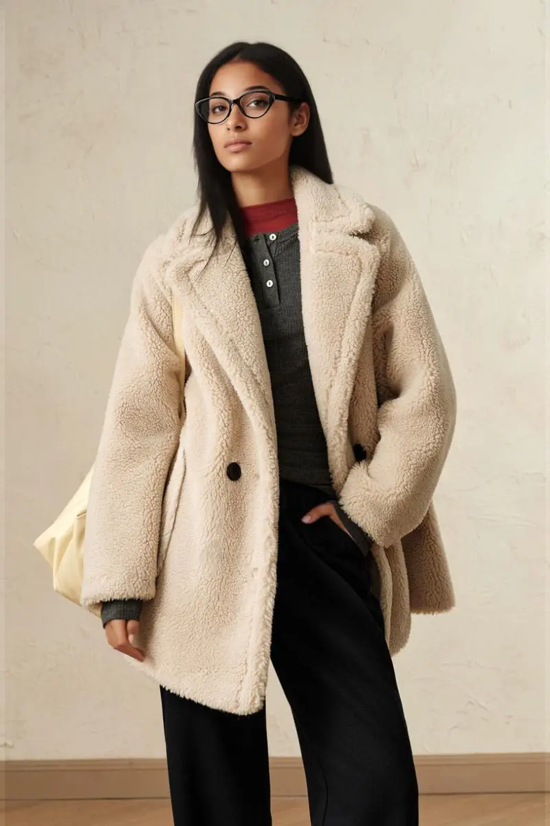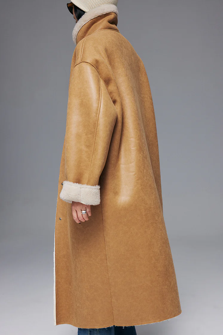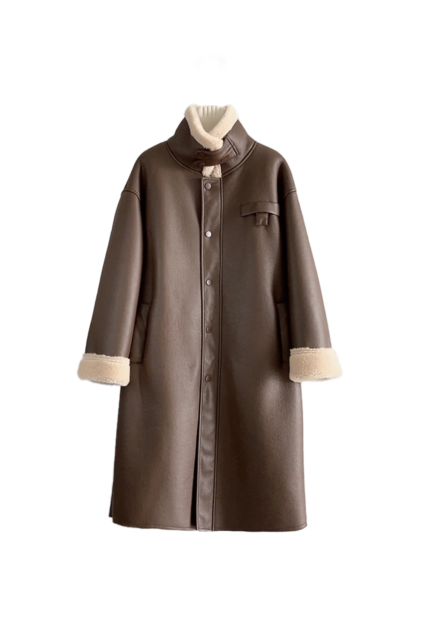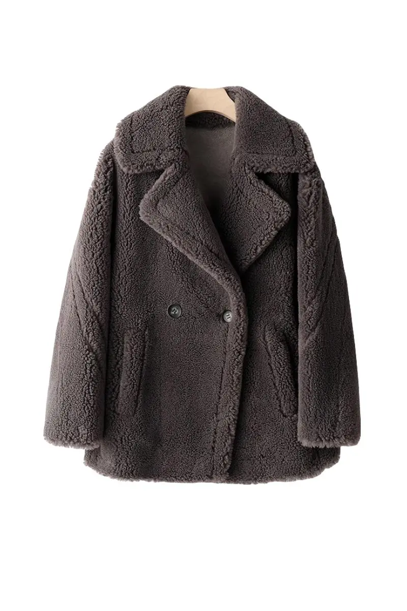 Brown Double Breasted Wool Blend Teddy Sherpa Coat
