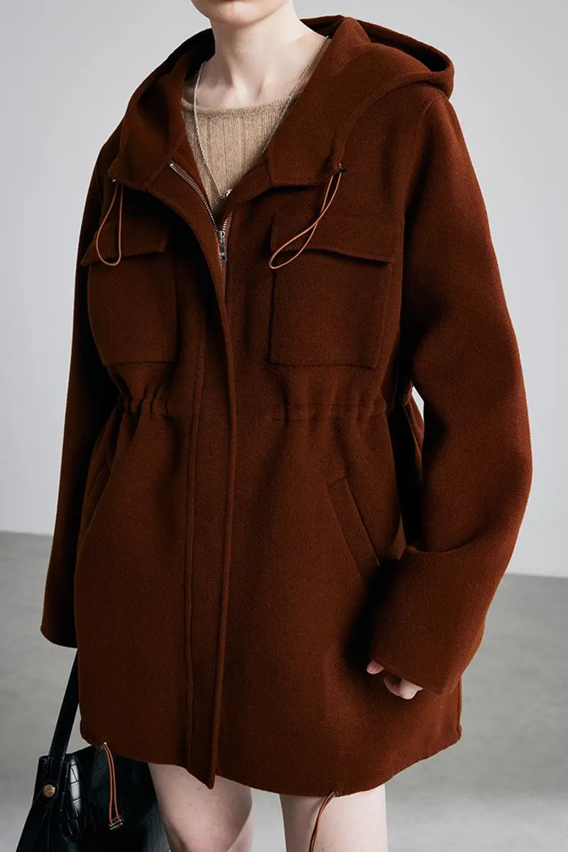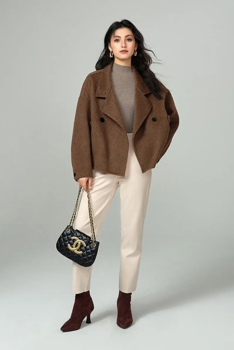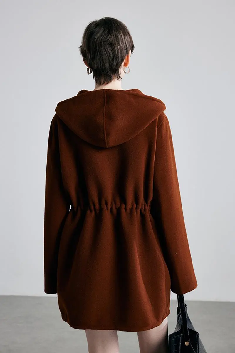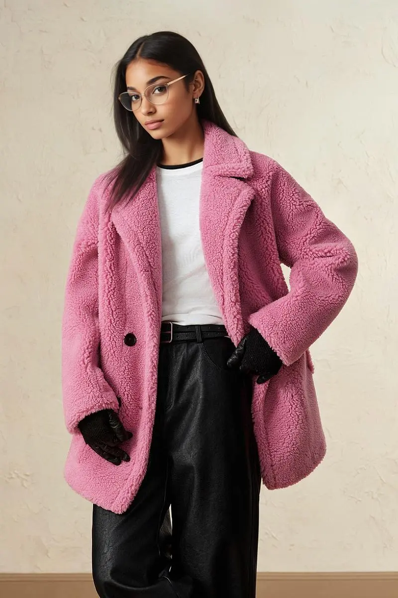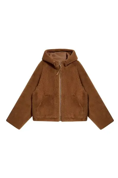 Brown Double Breasted Wool Blend Teddy Sherpa Coat