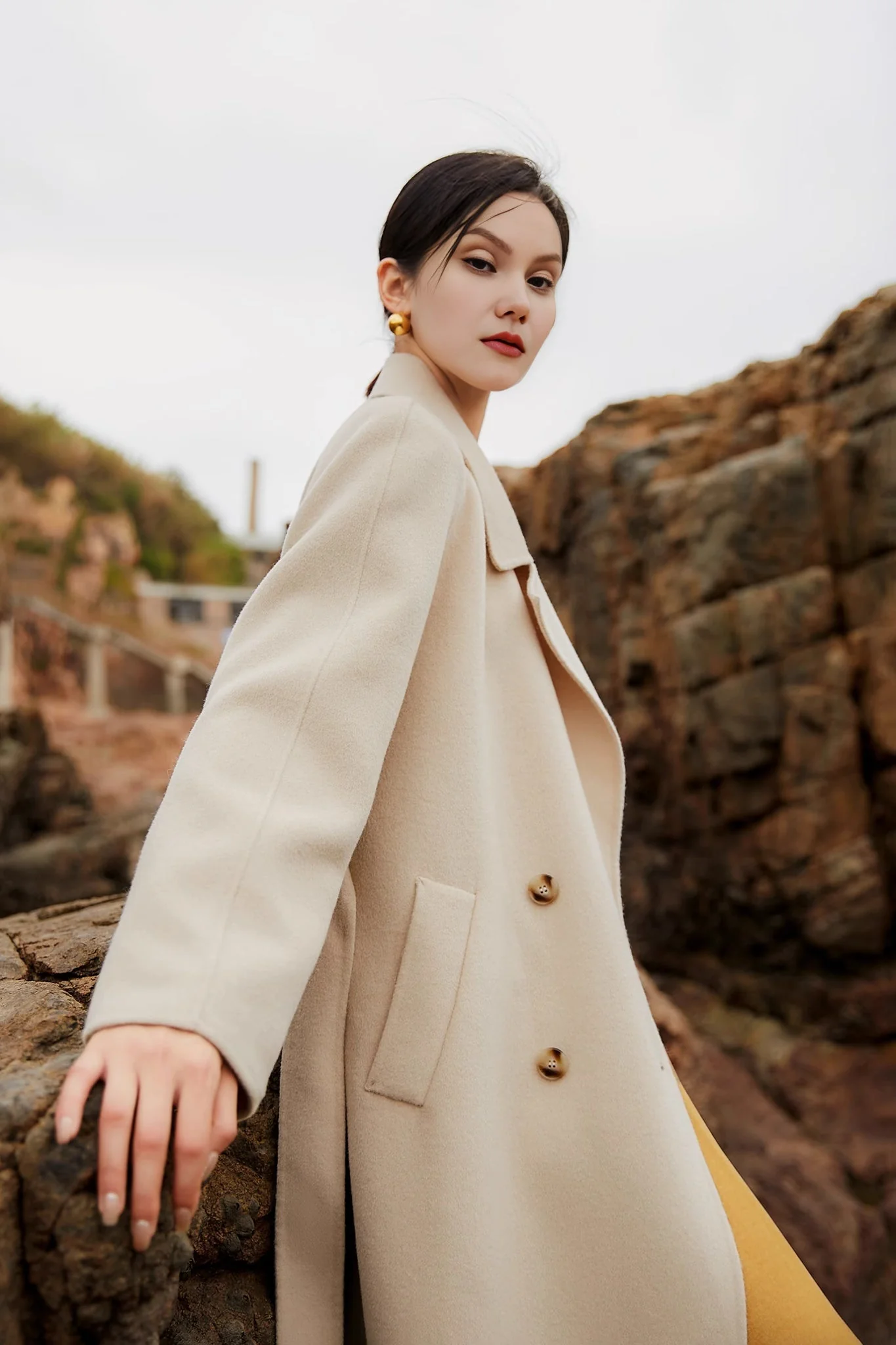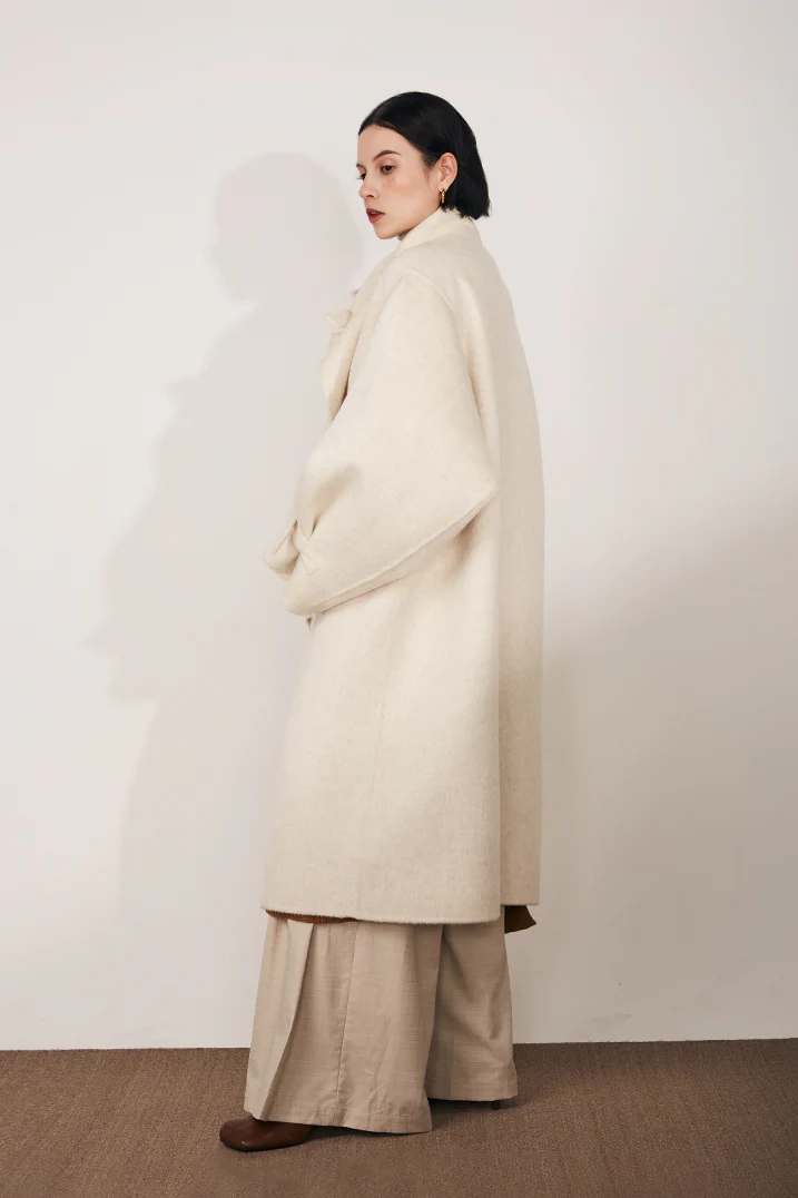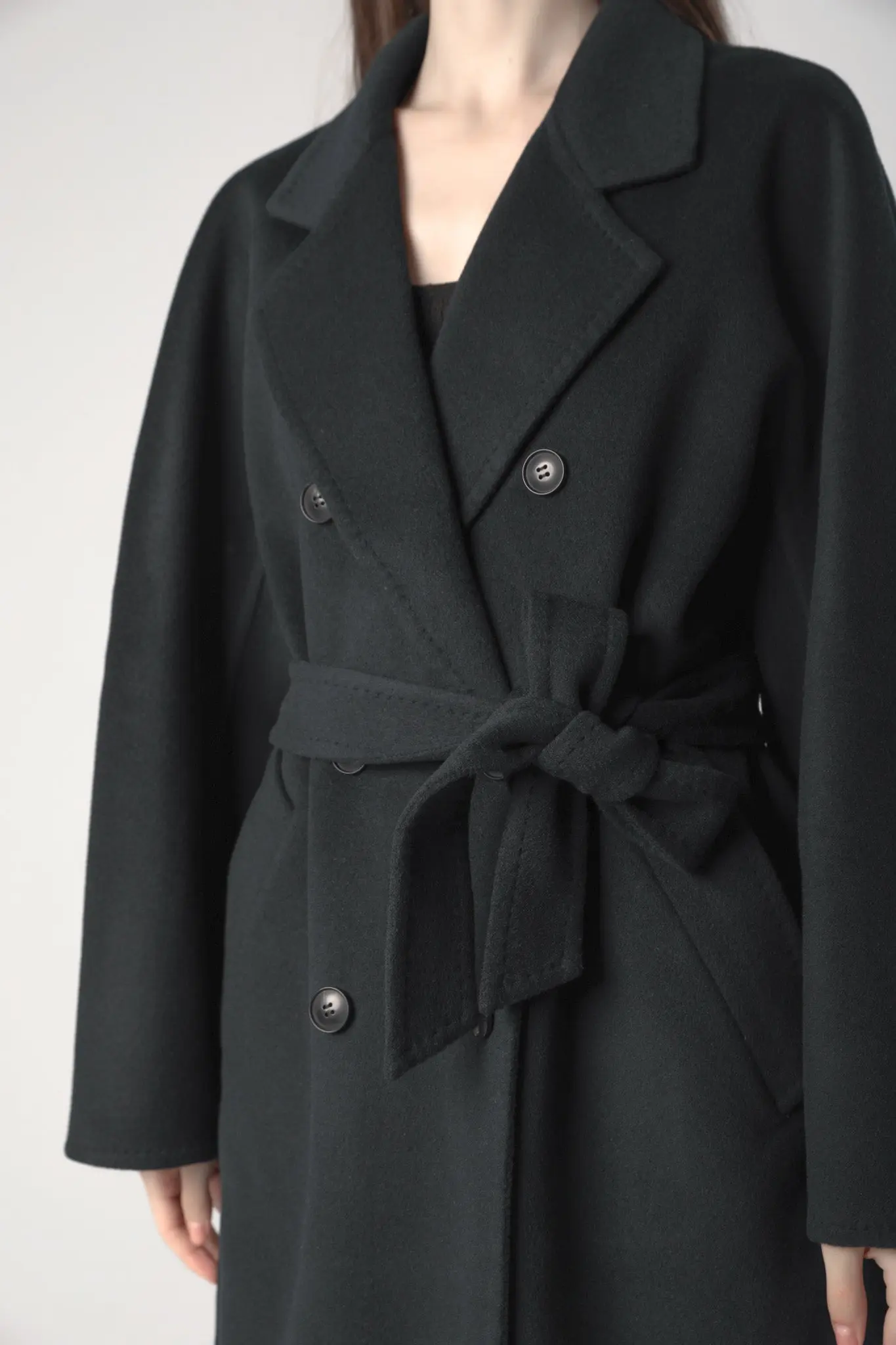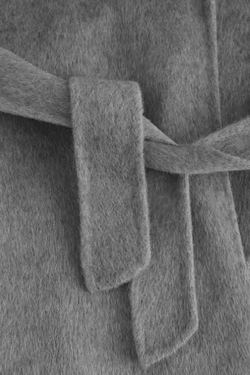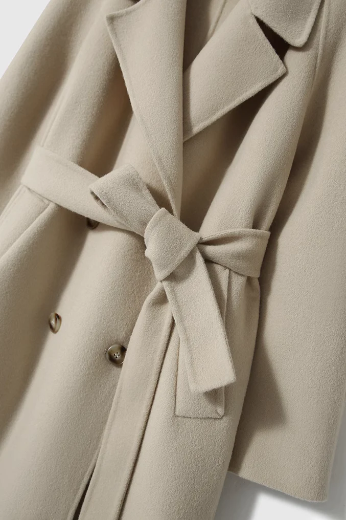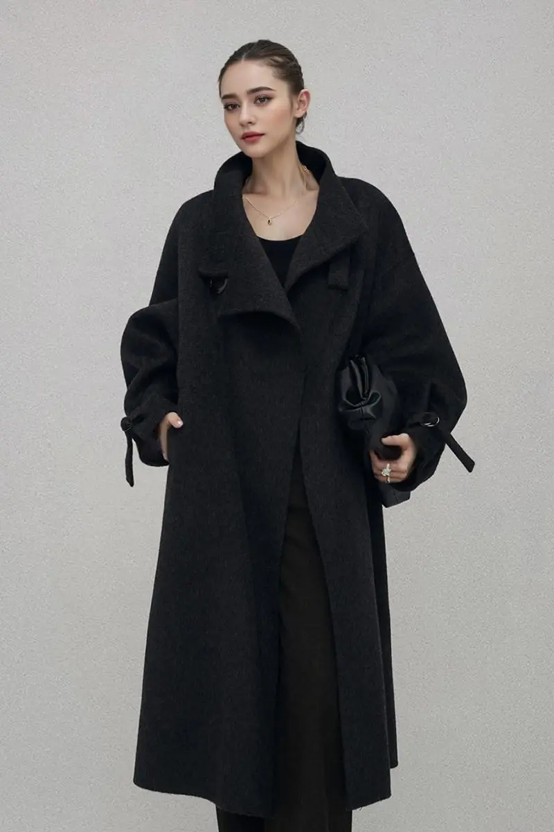 Long Wool Silk Blend Wrap Coat with Notched Lapel