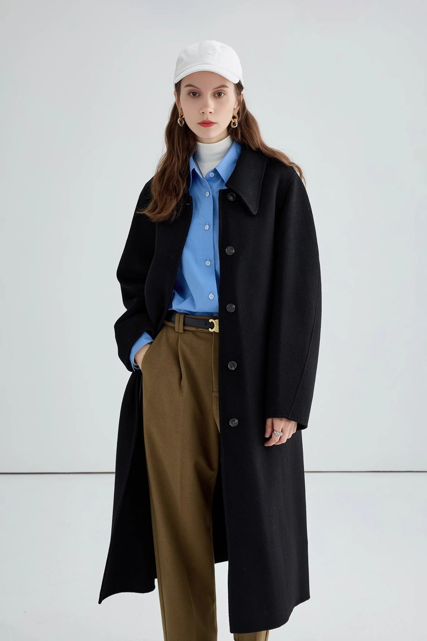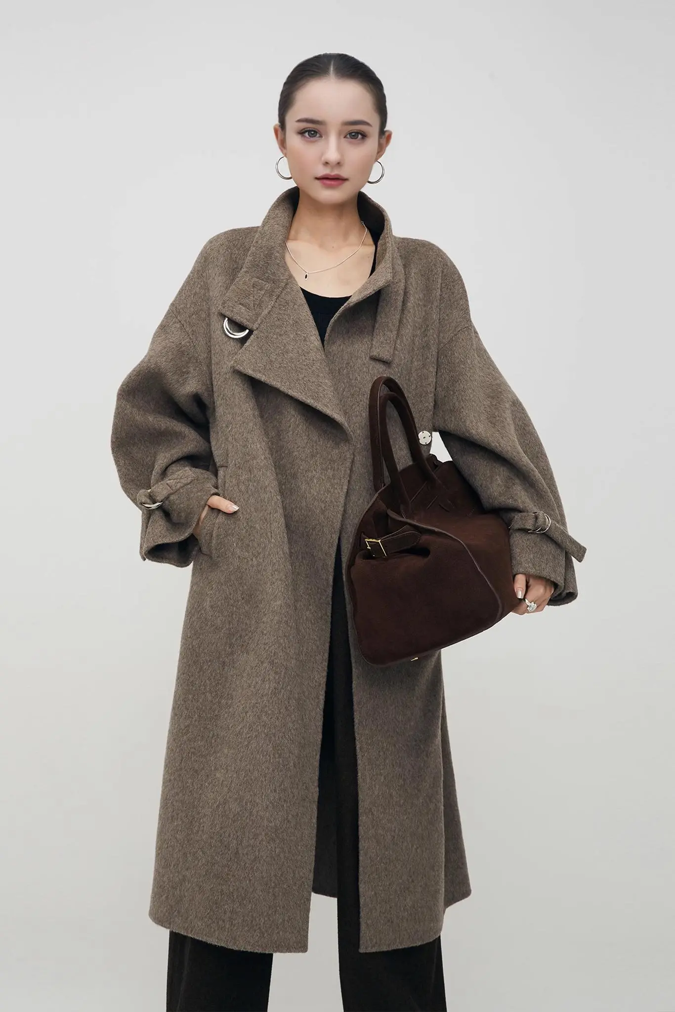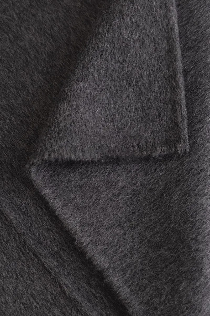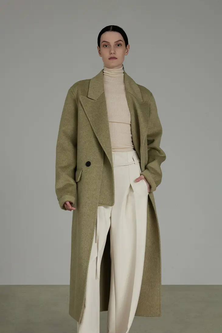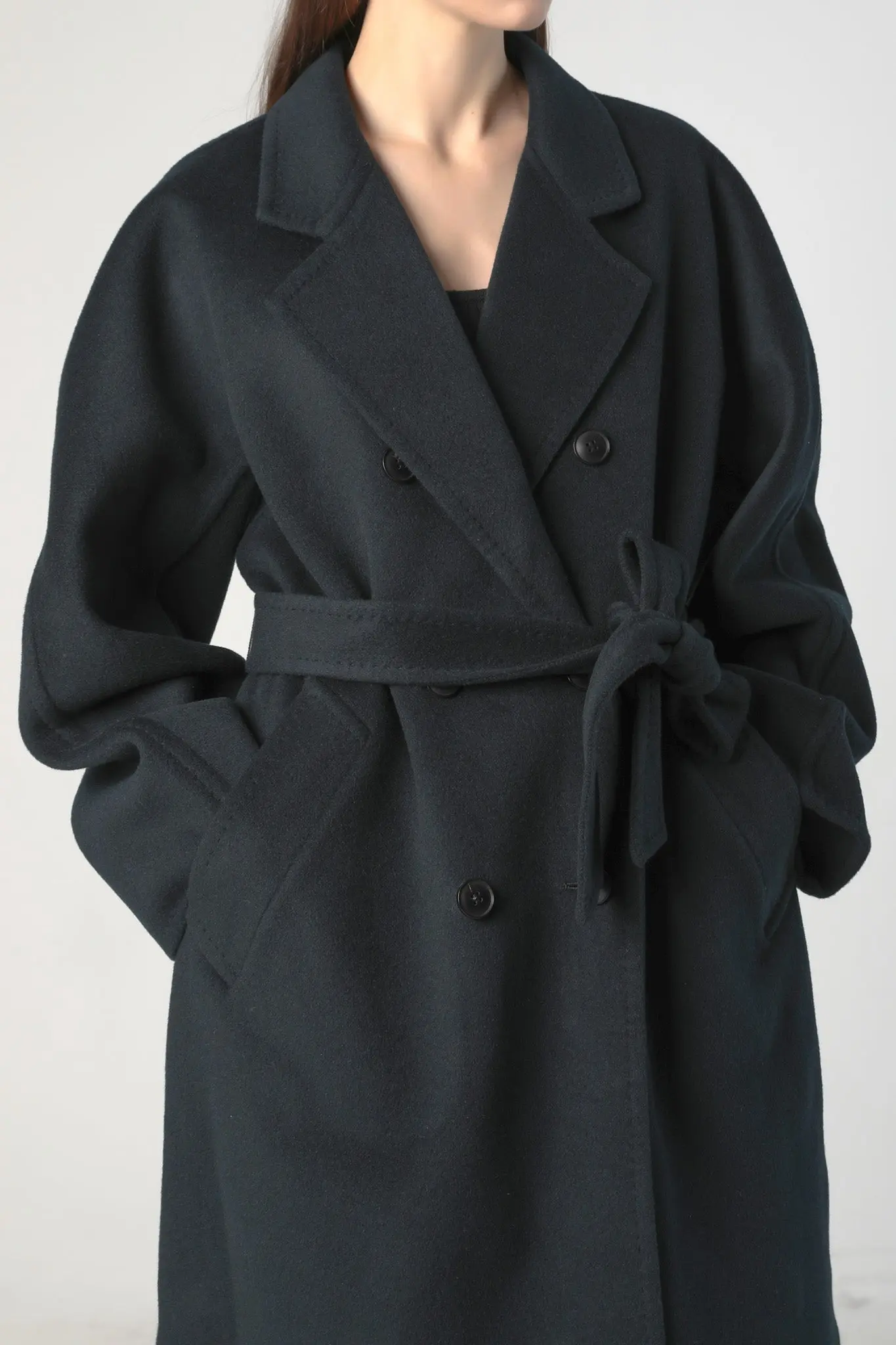Long Wool Silk Blend Wrap Coat with Notched Lapel