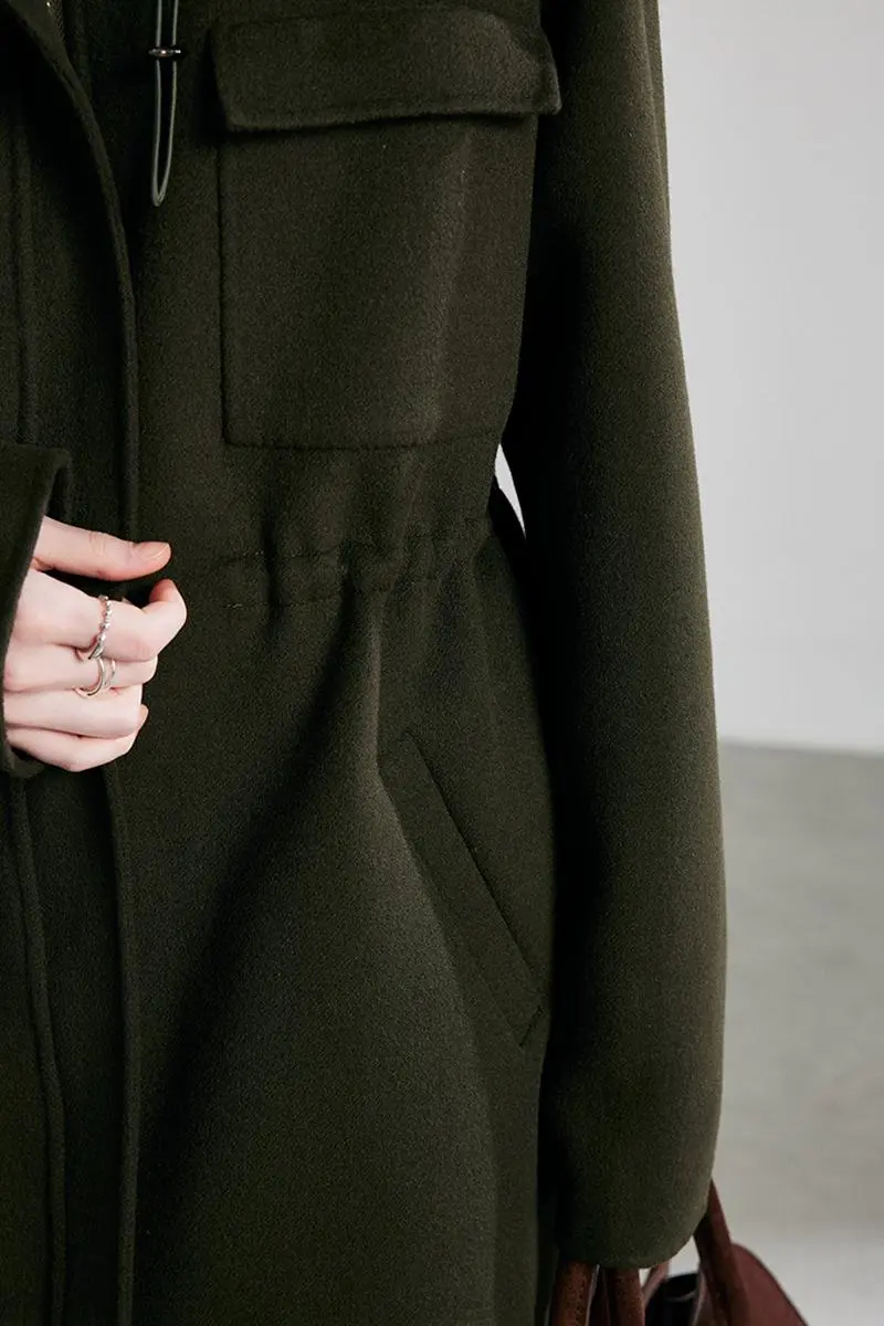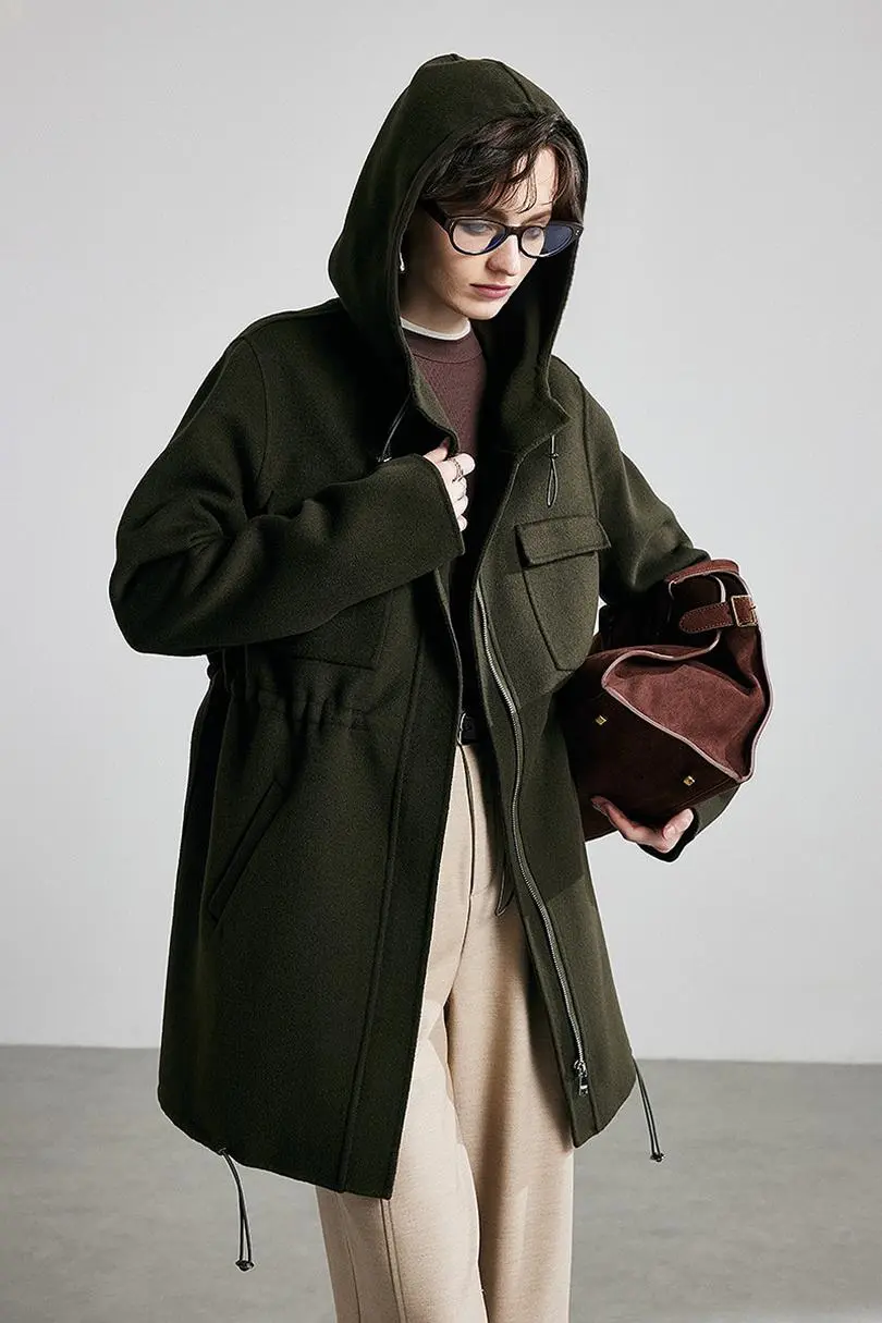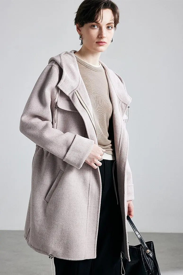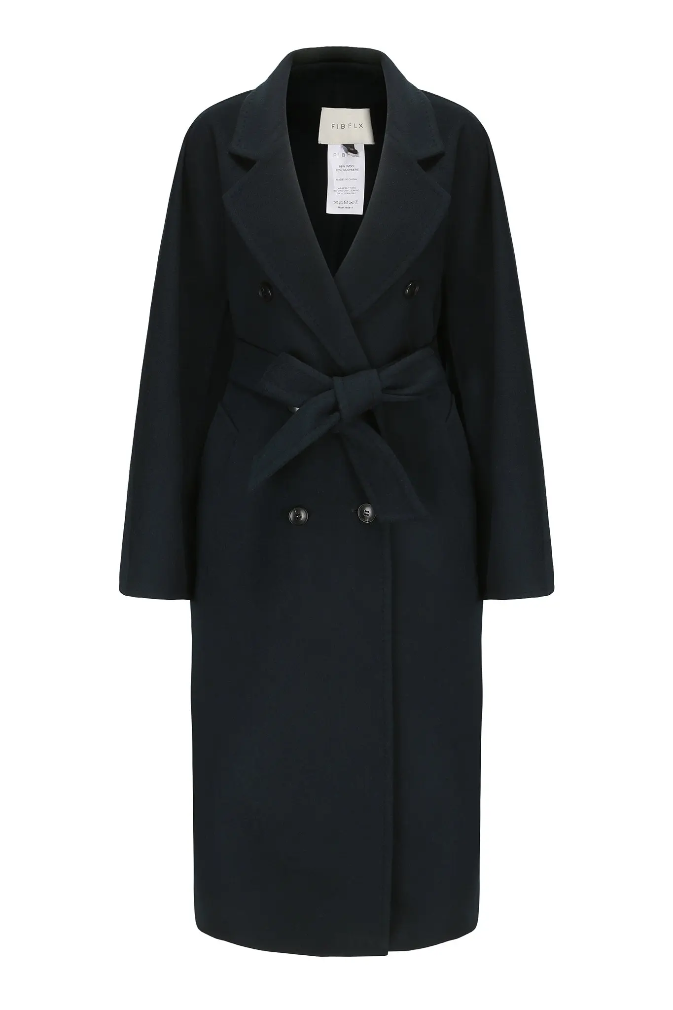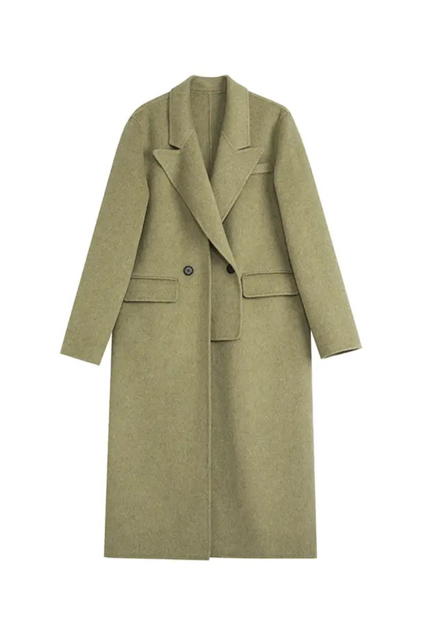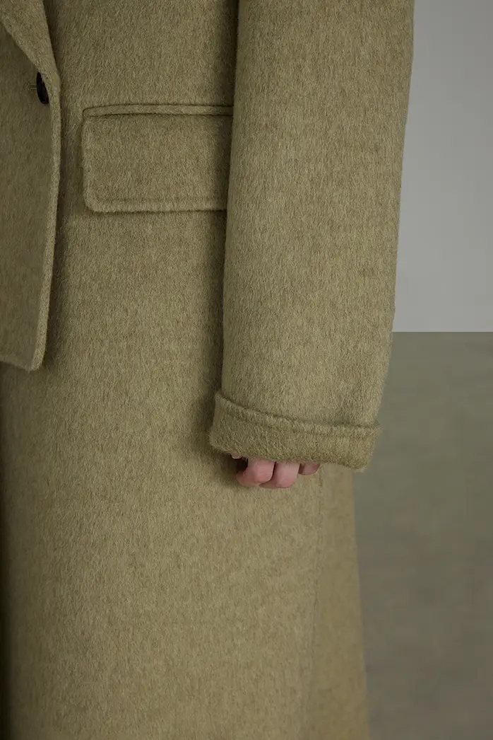 Long Wool Silk Blend Wrap Coat with Notched Lapel