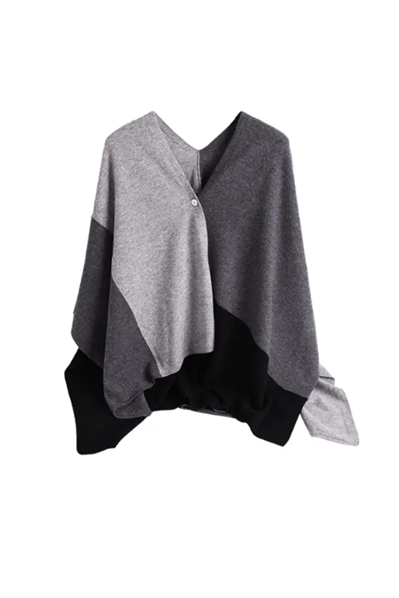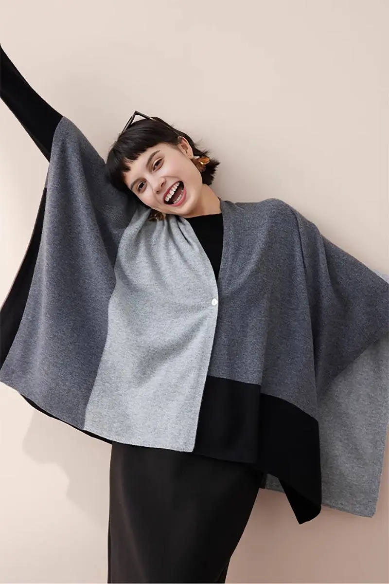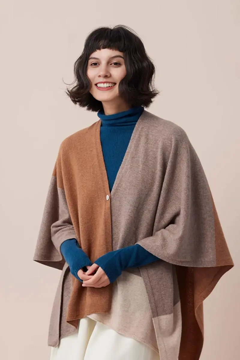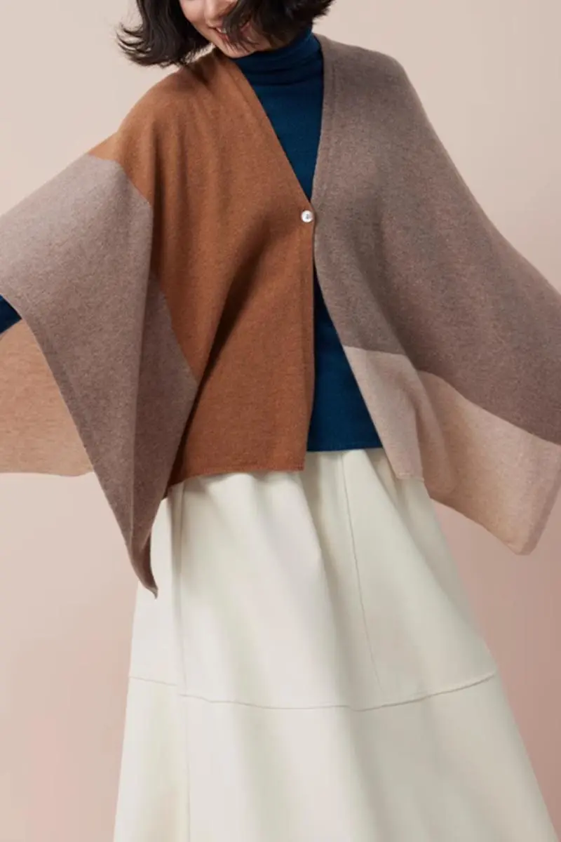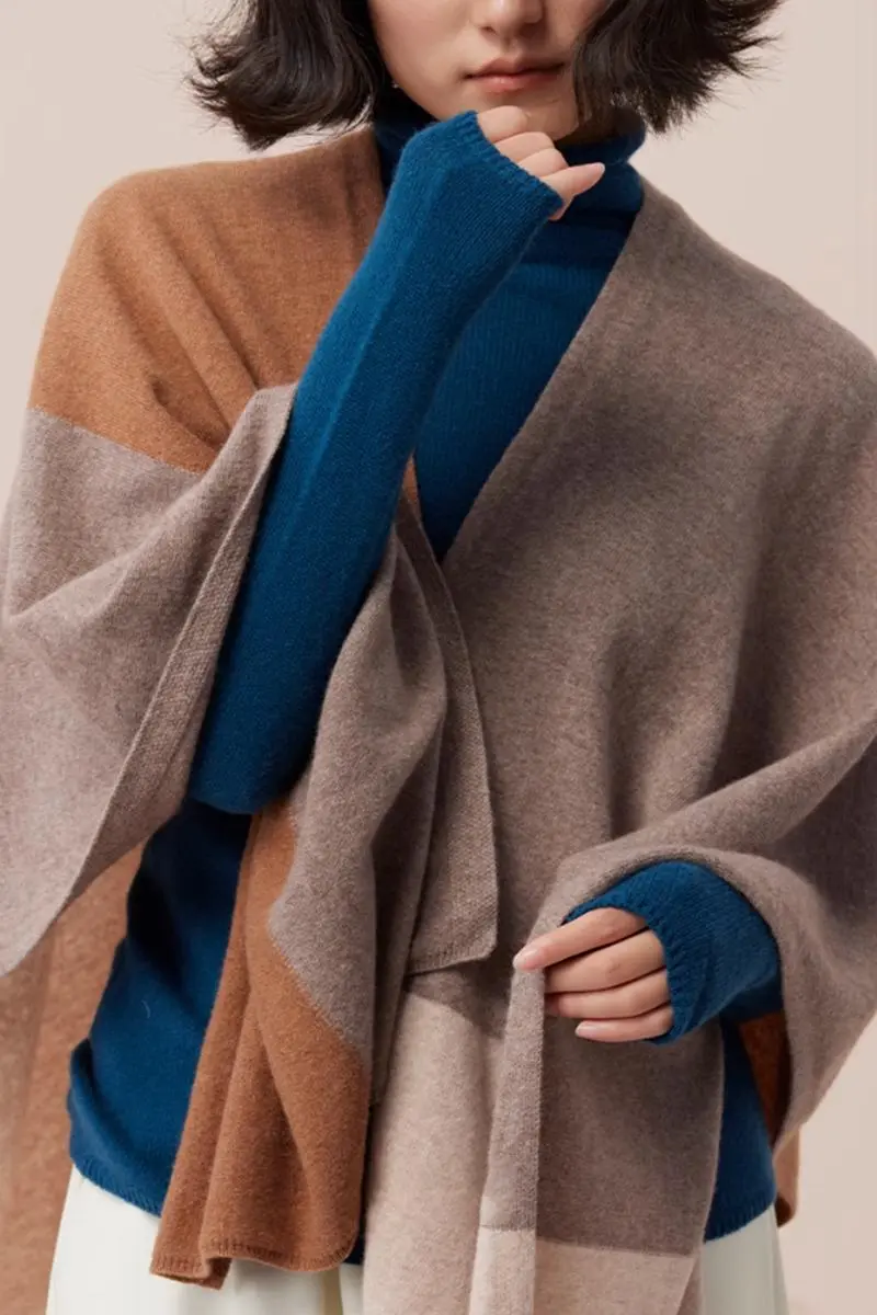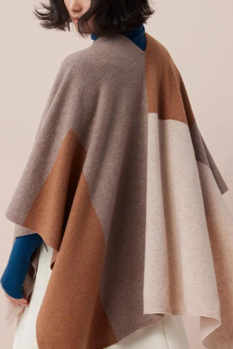 Cashmere Wool Knit Colorblock Poncho Sweater
