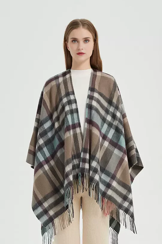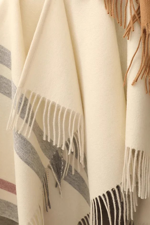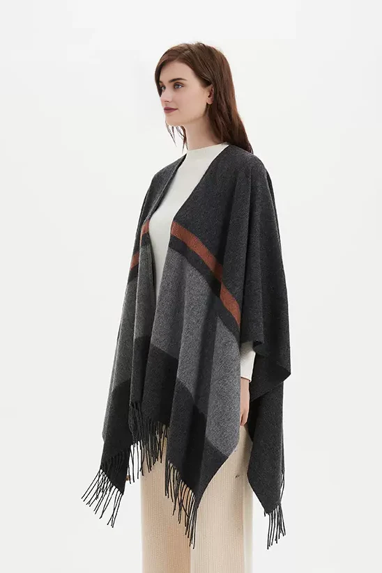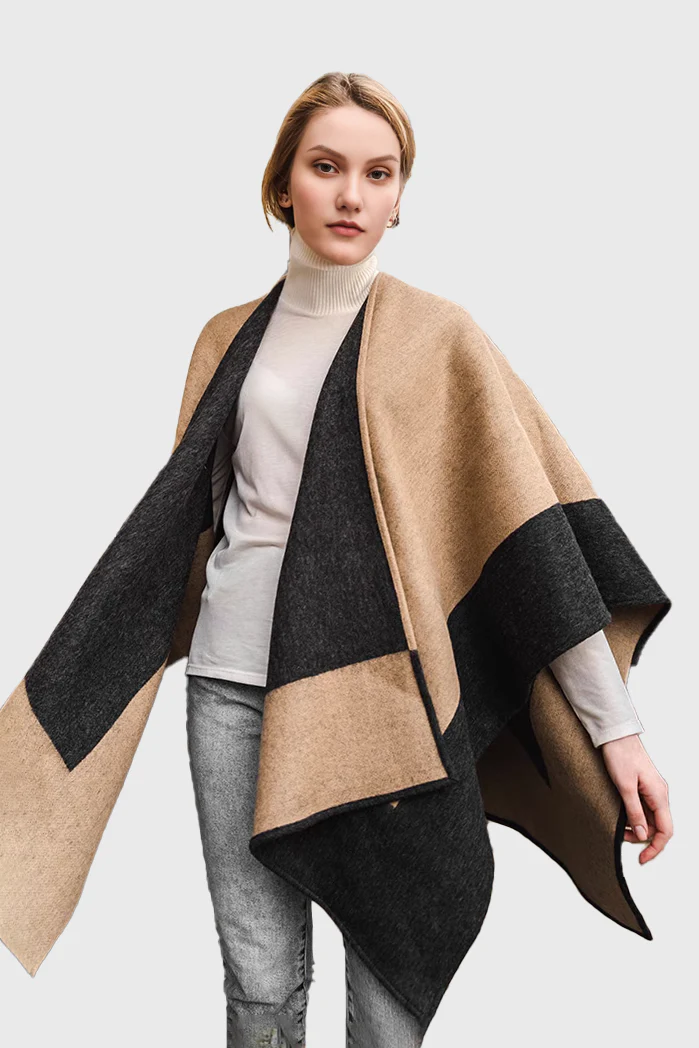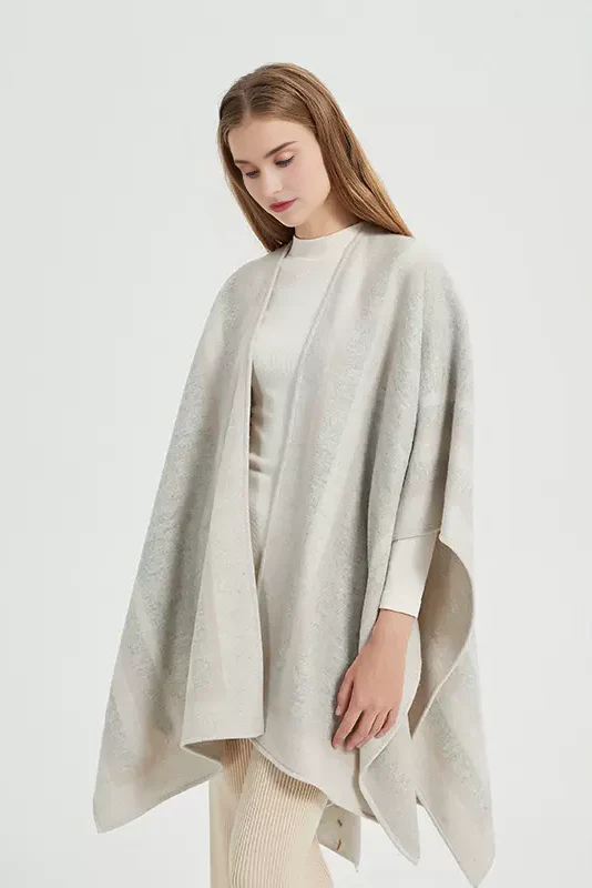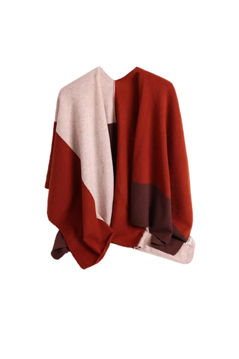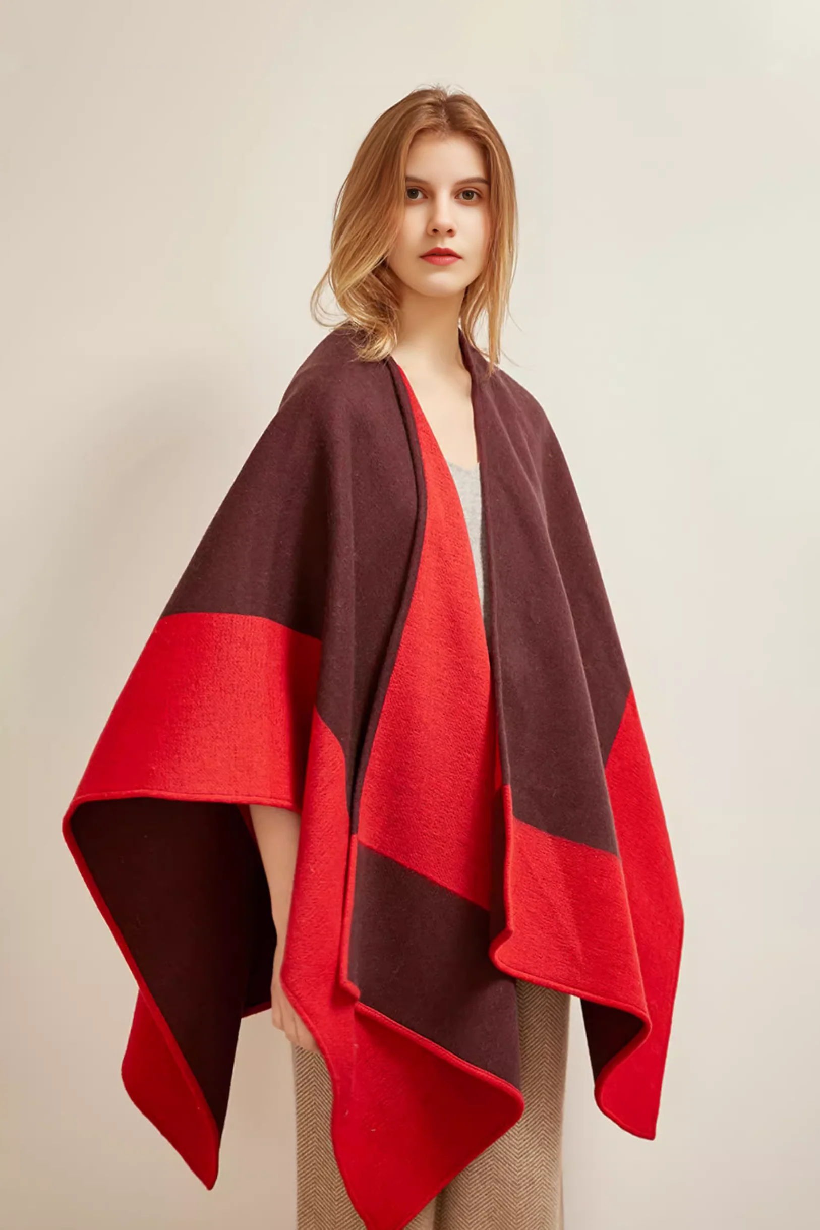 Cashmere Wool Knit Colorblock Poncho Sweater