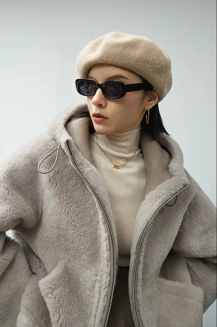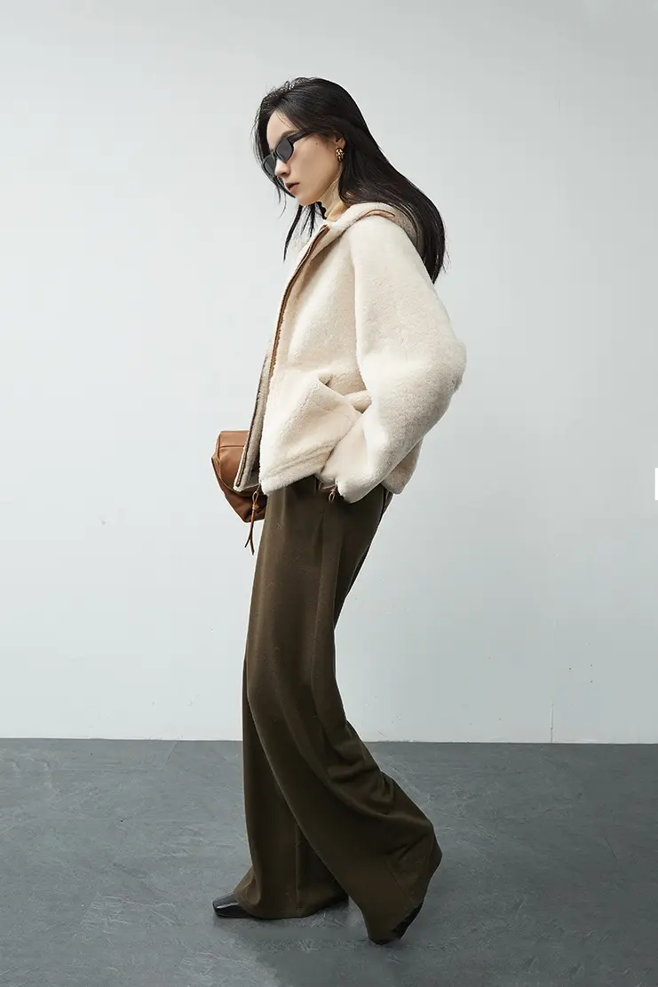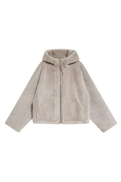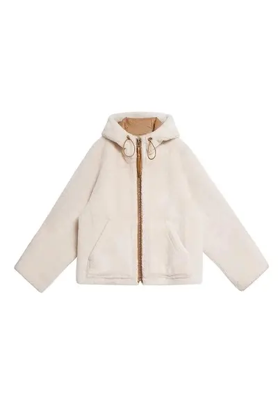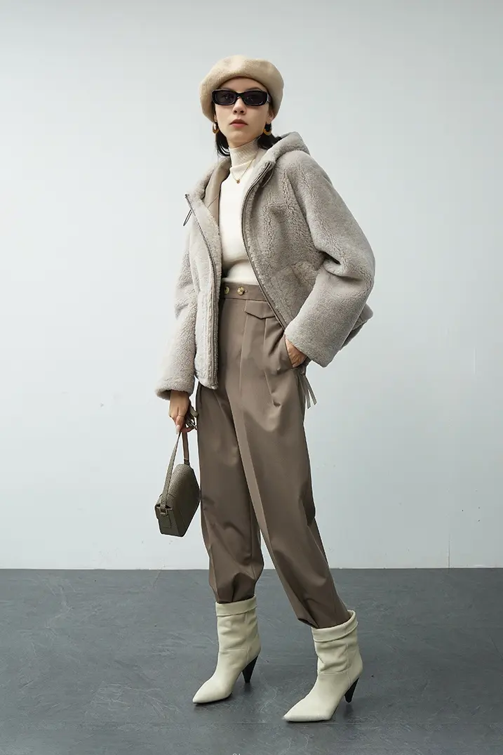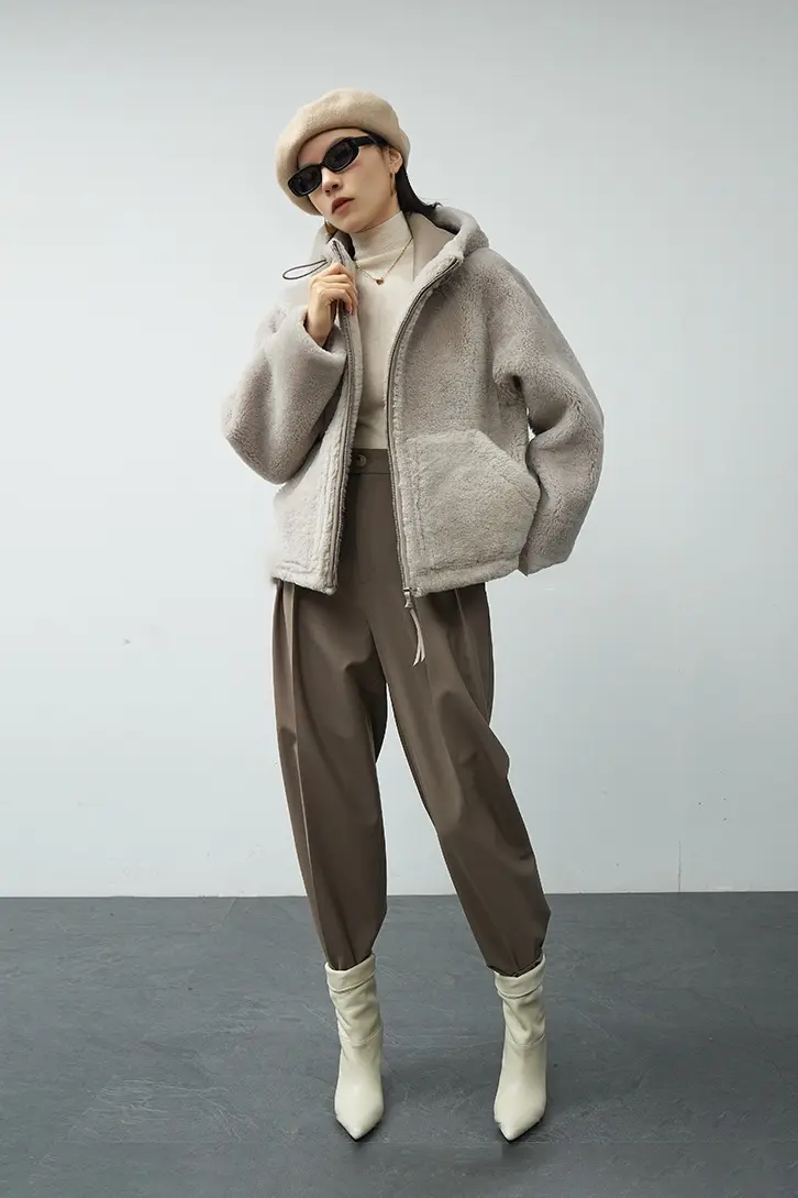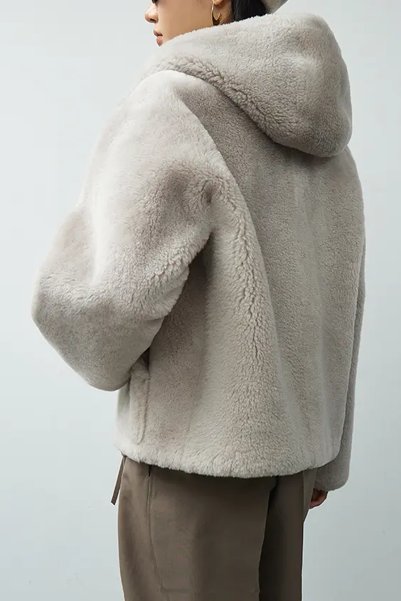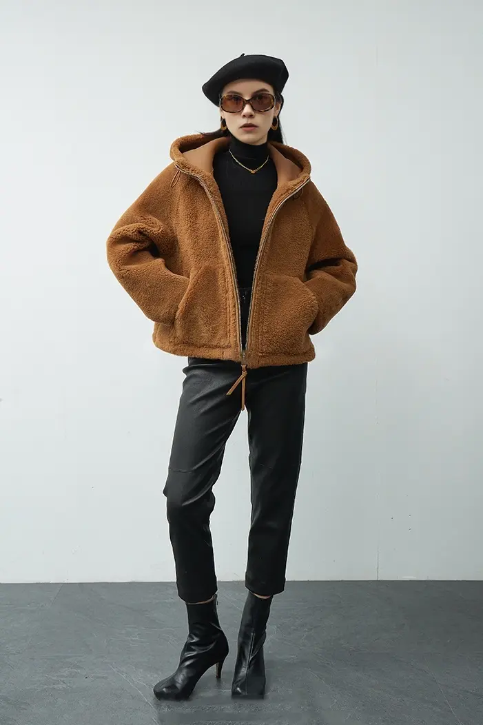 Oversized Zebra Print Genuine Wool Shearling Jacket with Hood