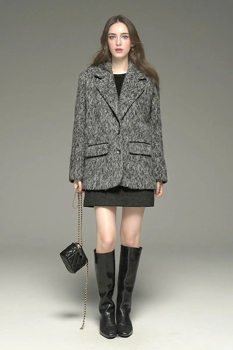 Oversized Fluffy Boyfirend Blazer in Brushed Wool Mohair