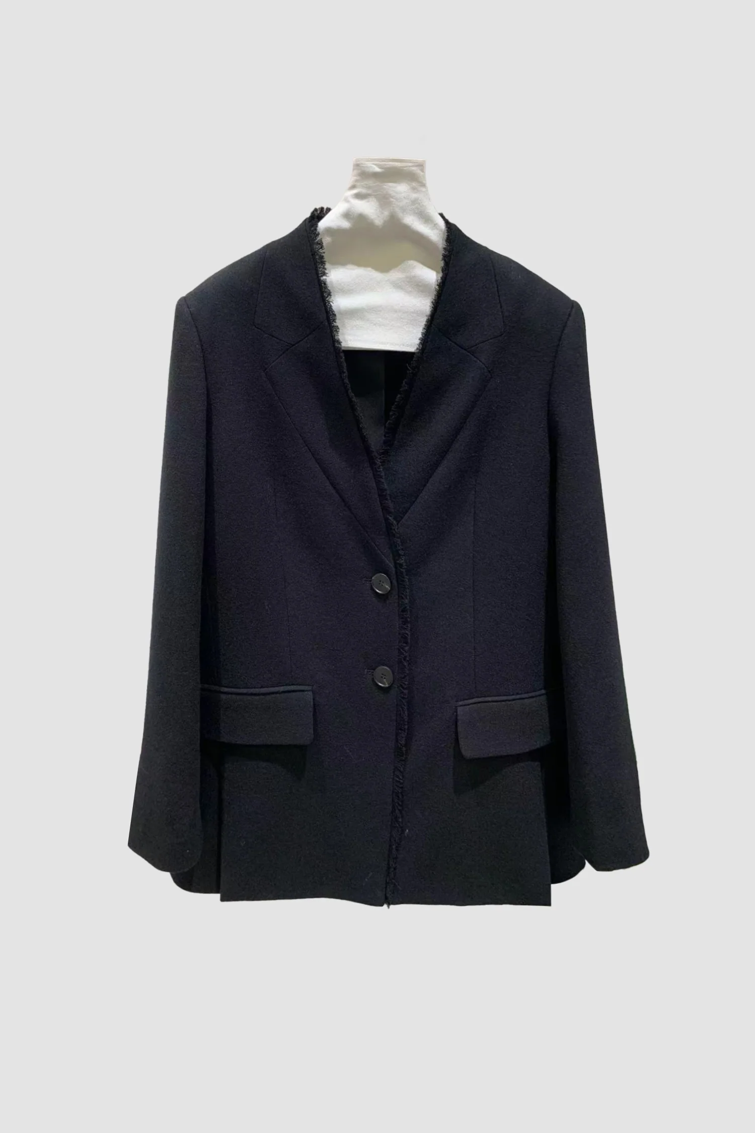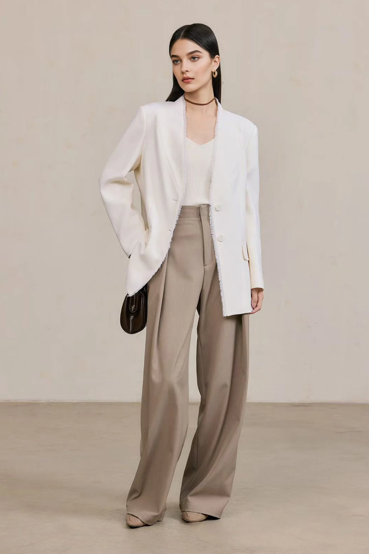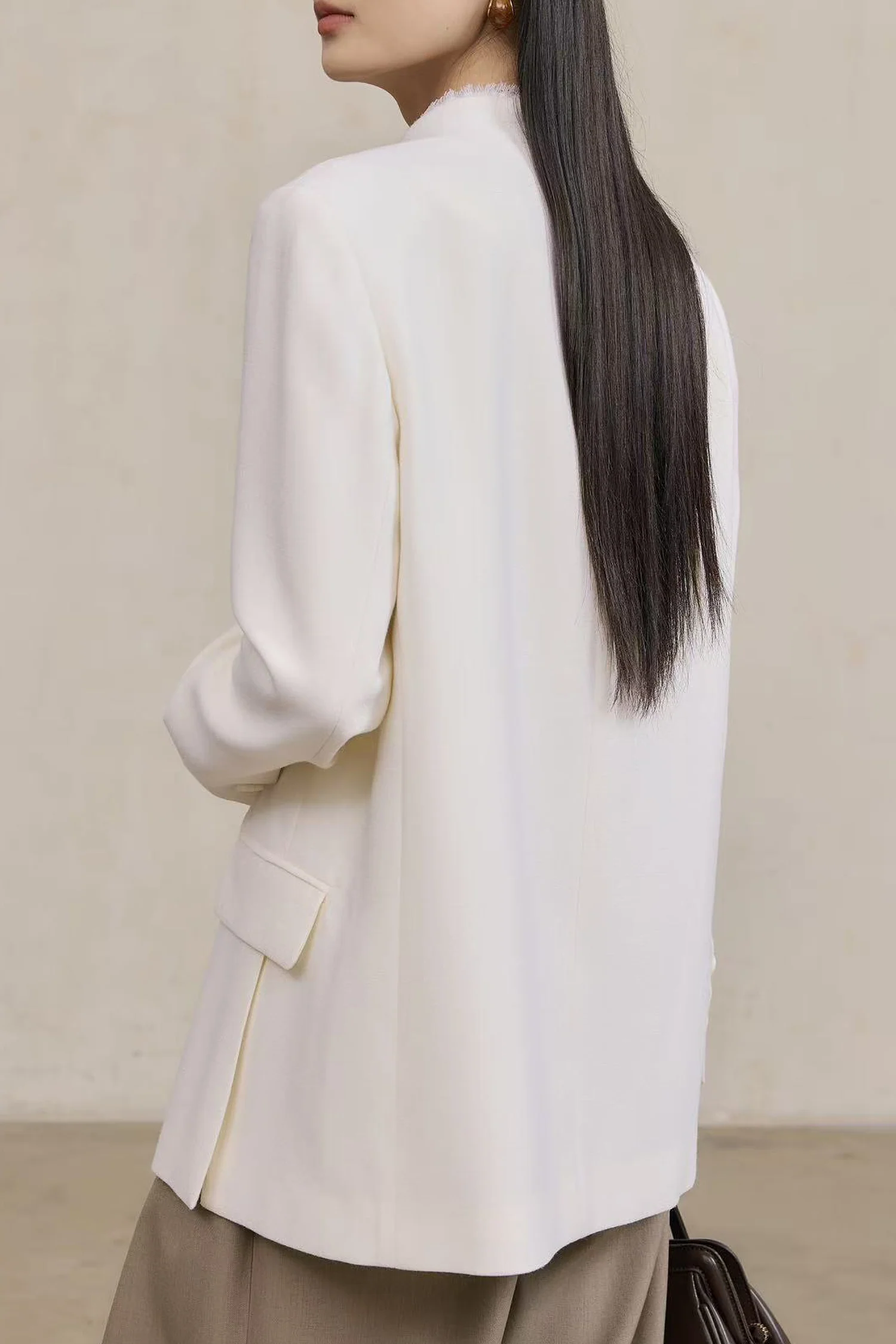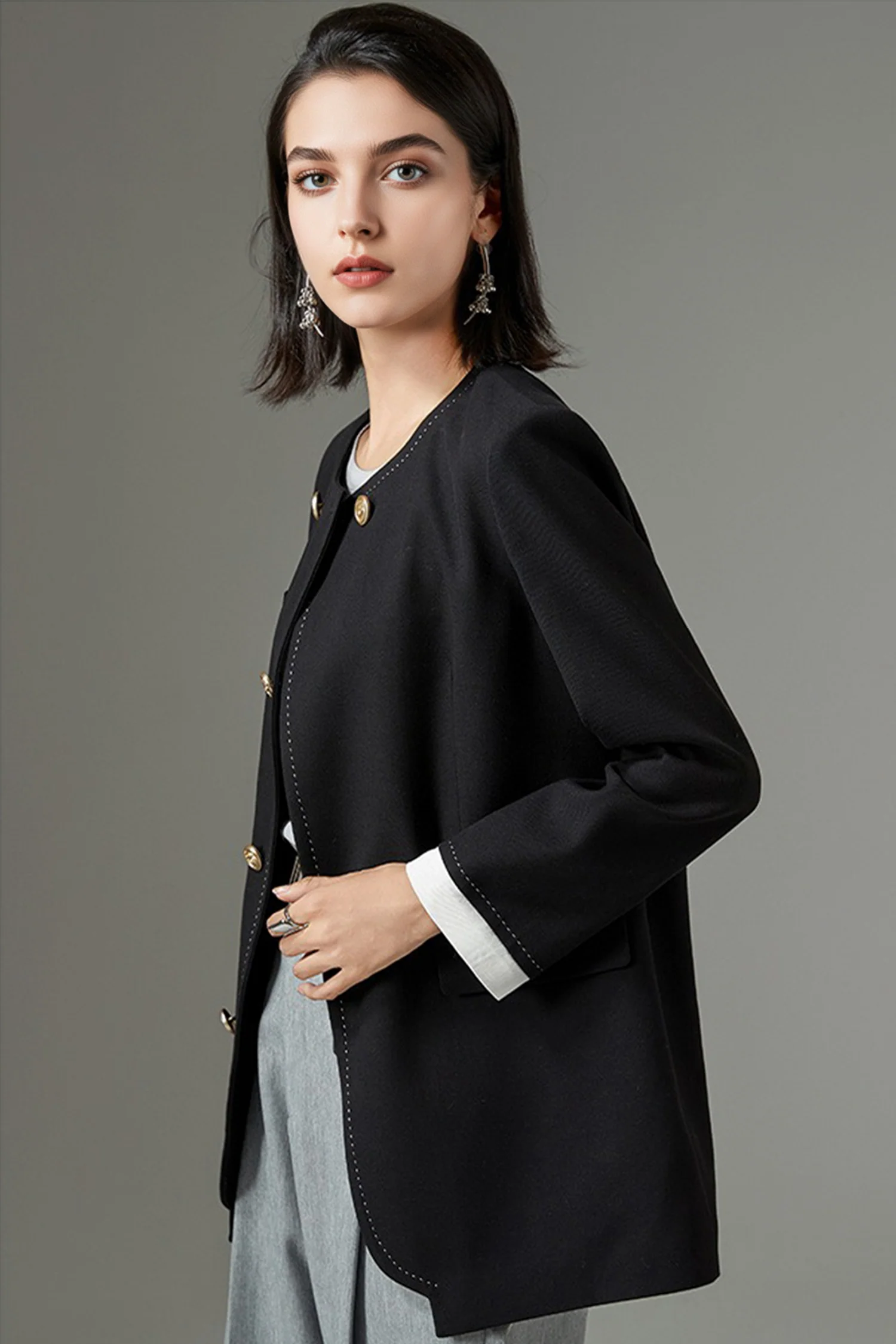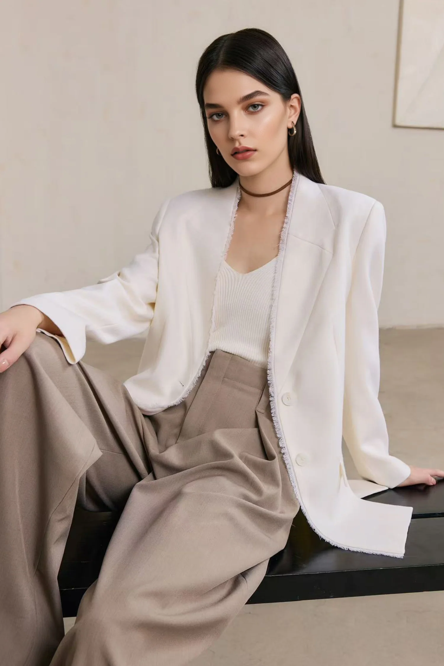 Asymmetric Collarless Wool-Blend Blazer Jacket