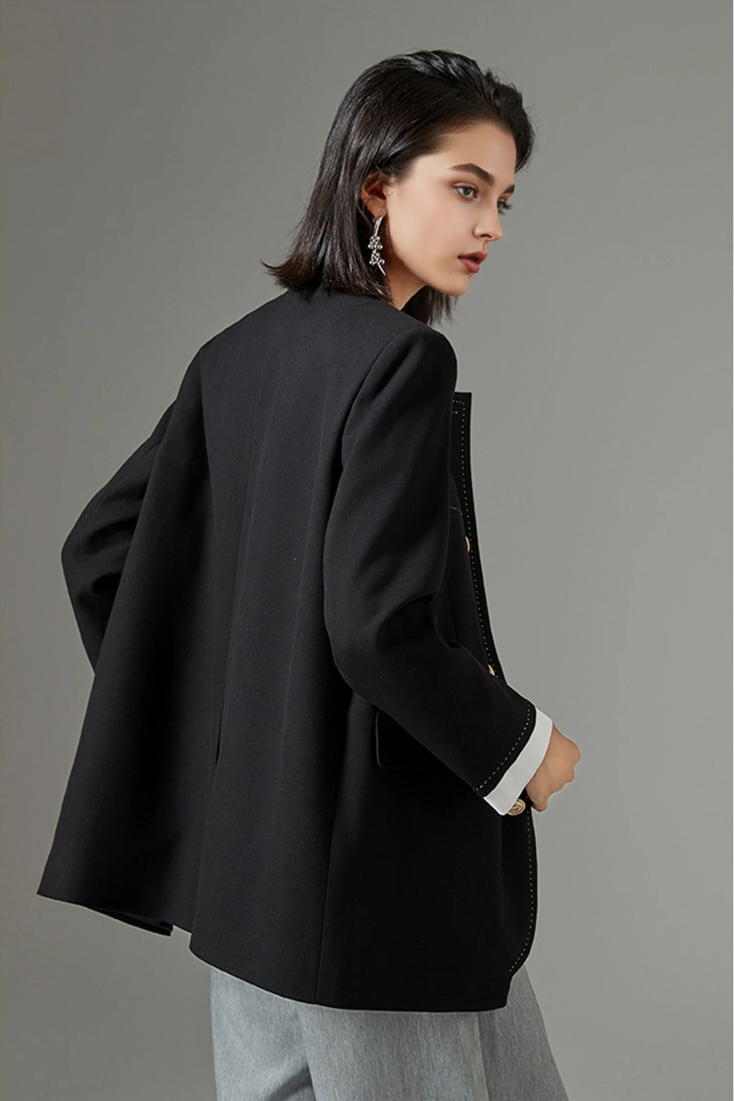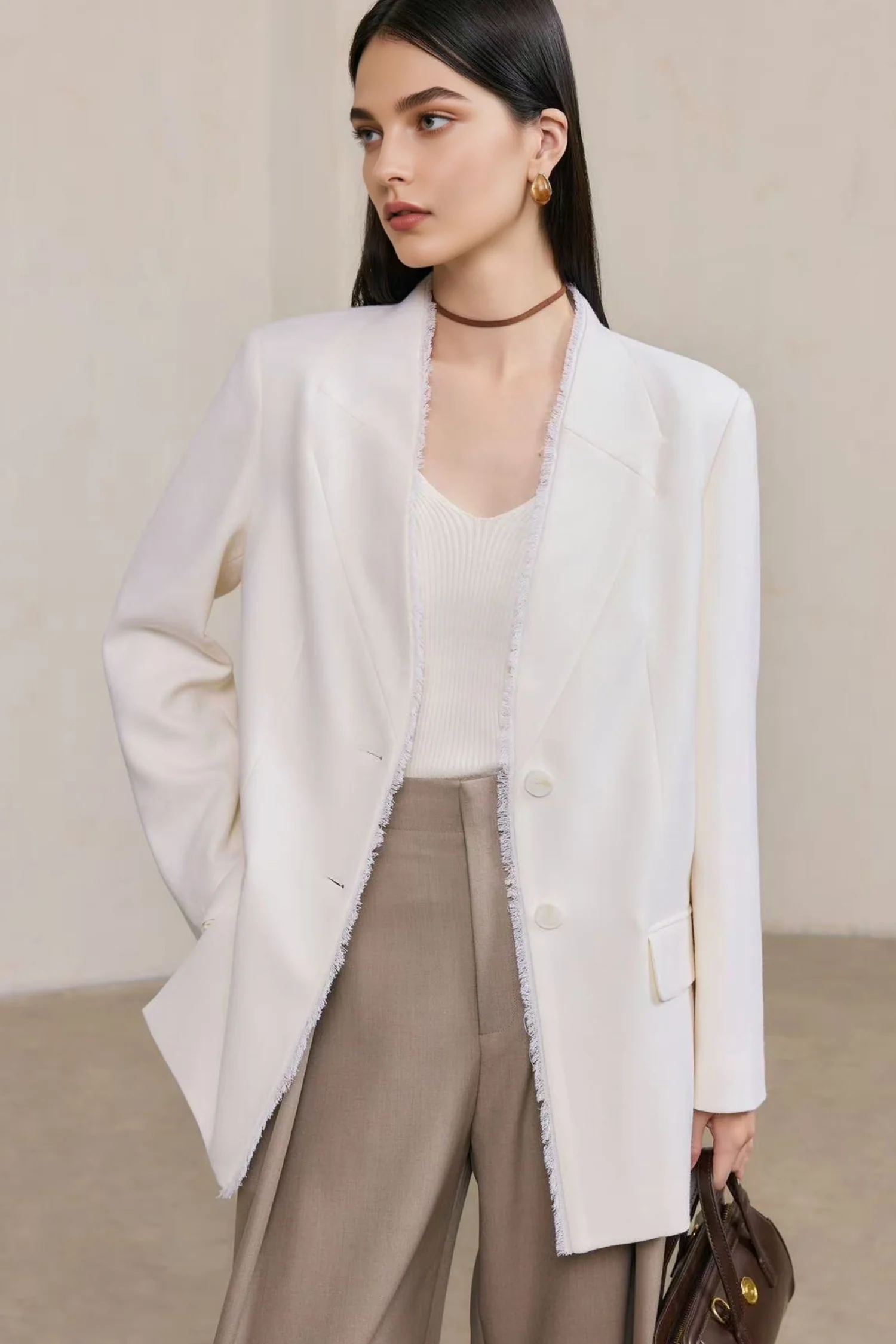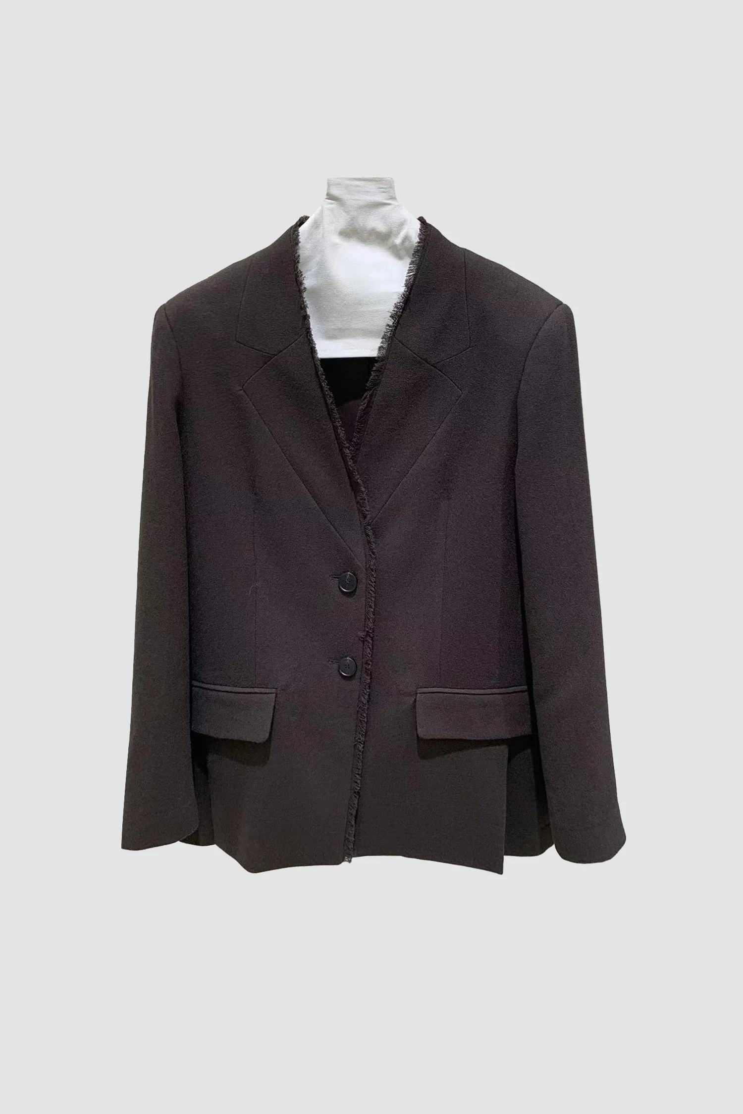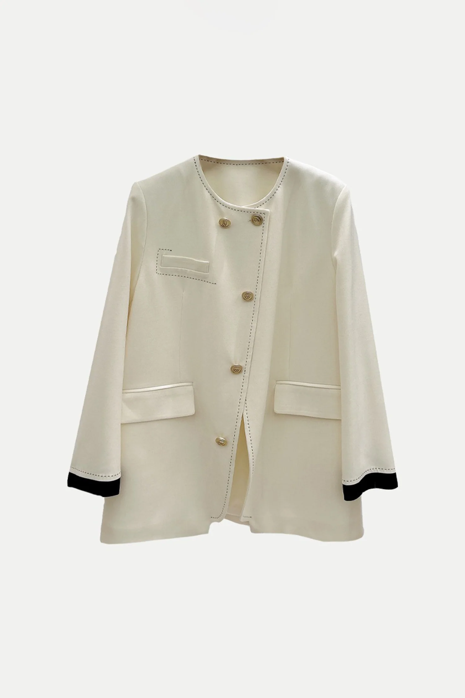 Asymmetric Collarless Wool-Blend Blazer Jacket