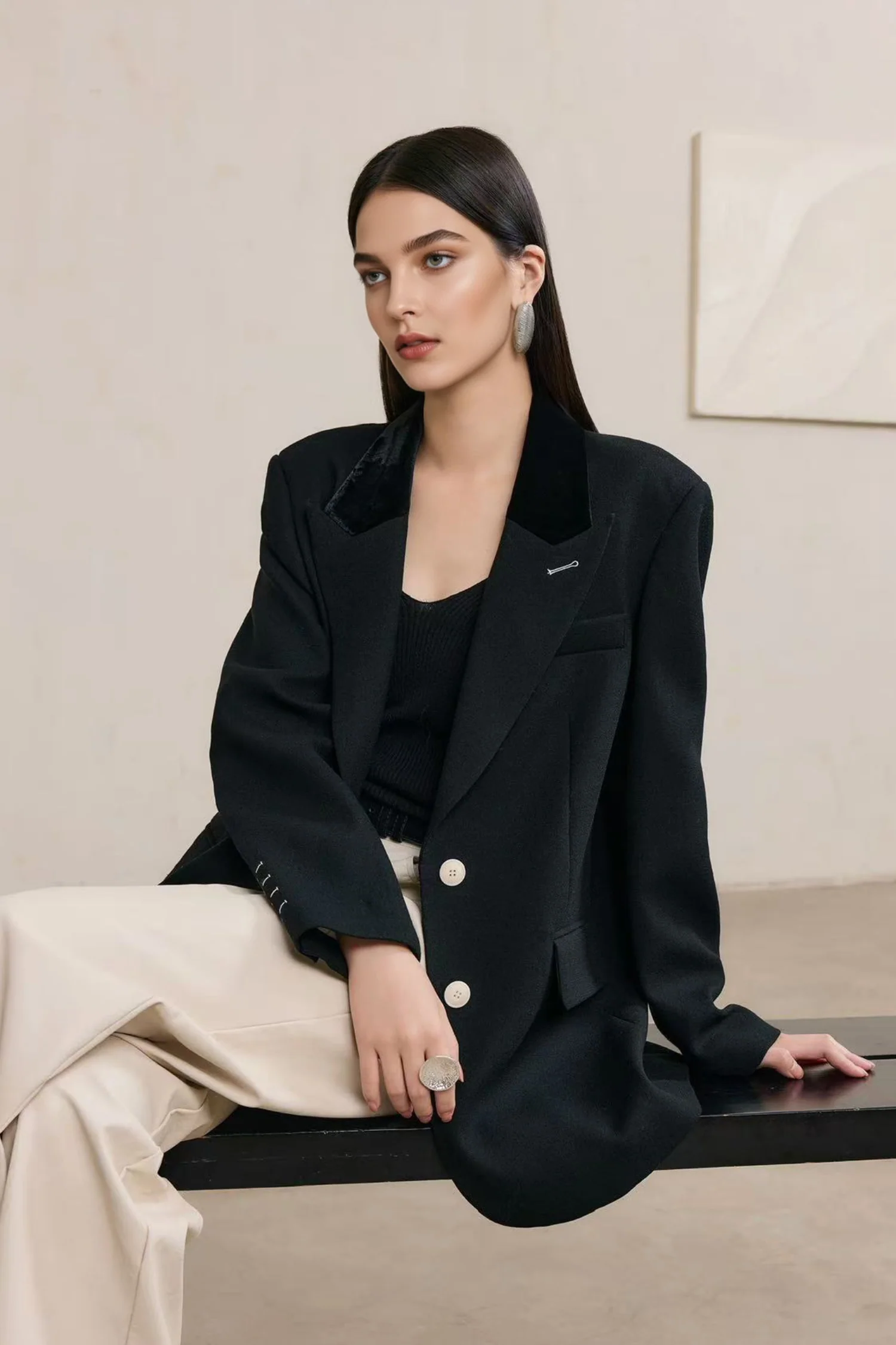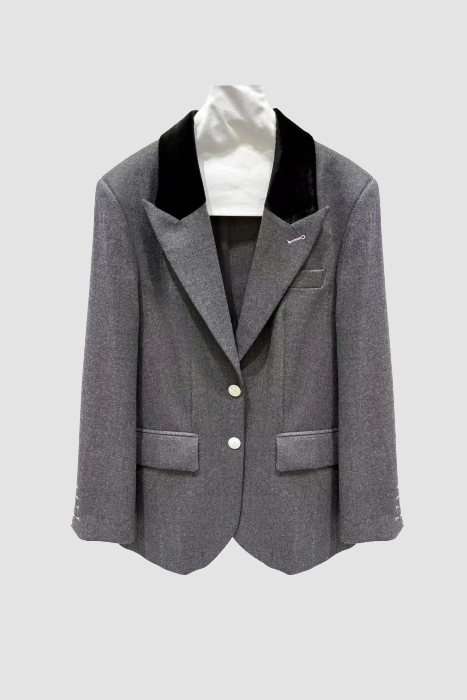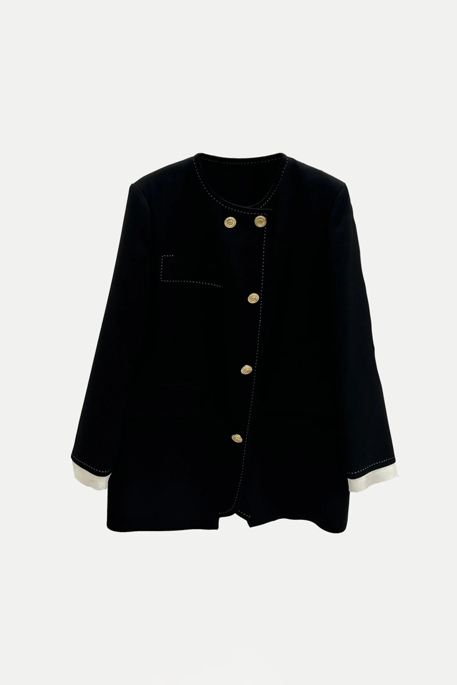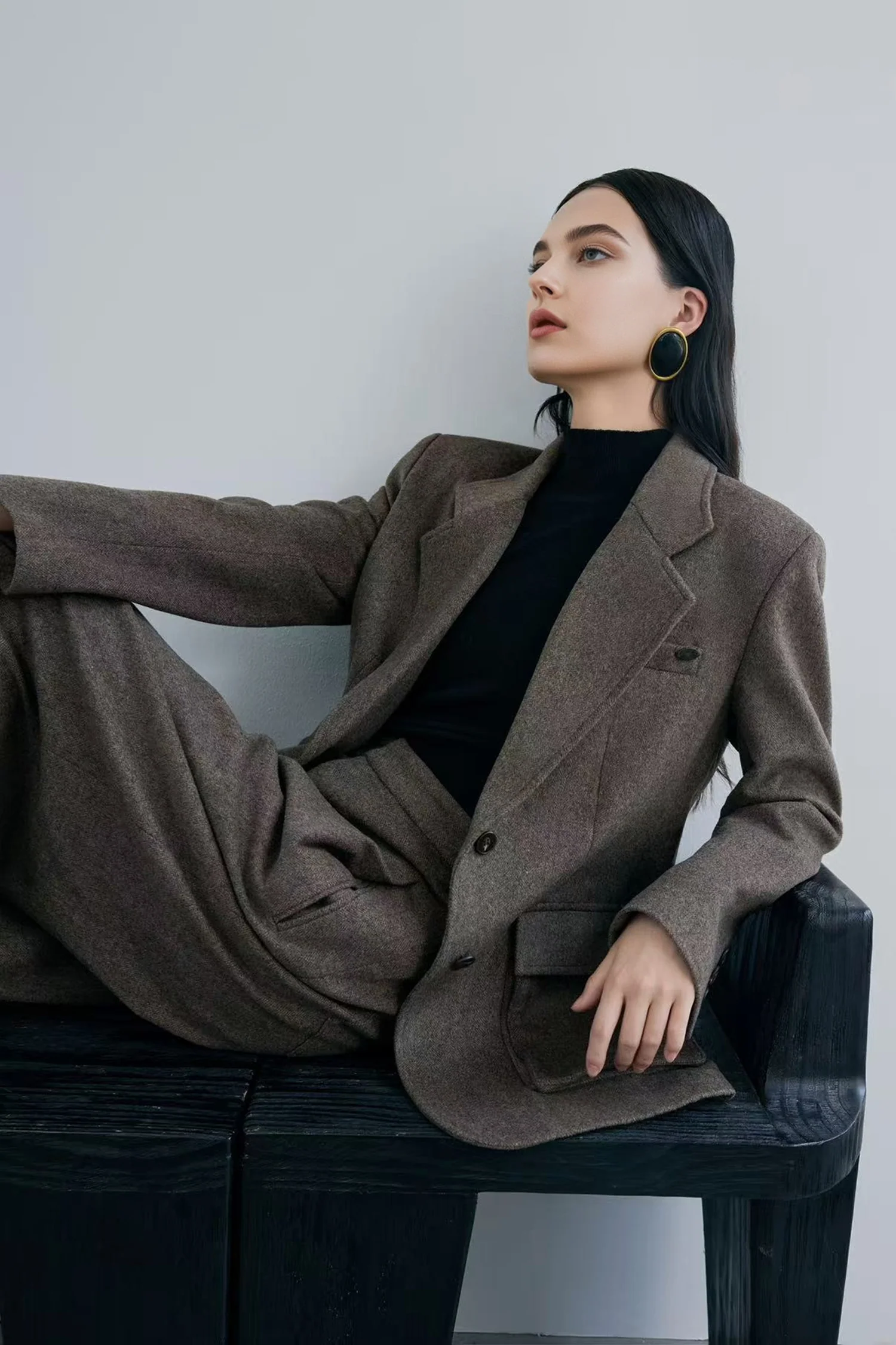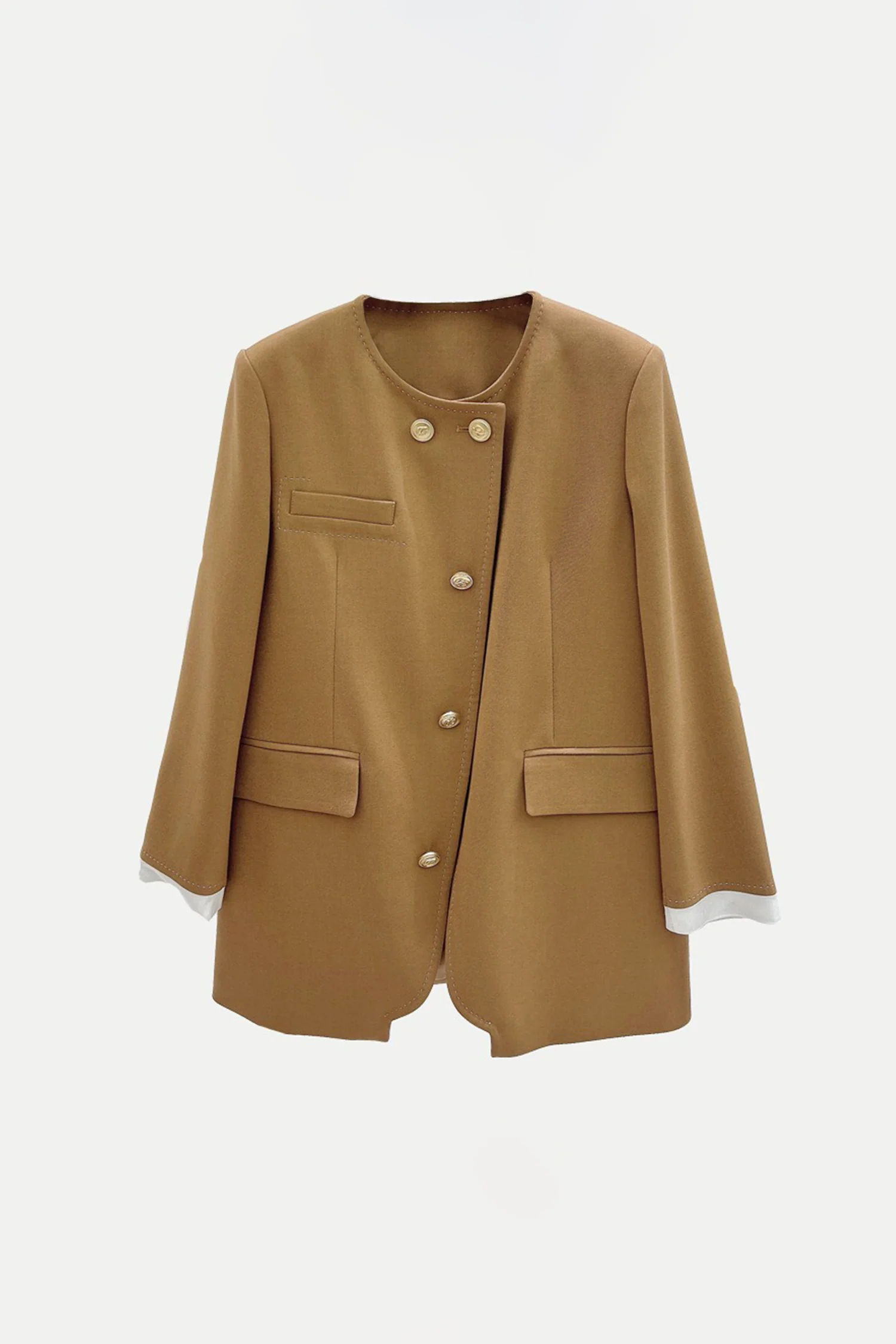Asymmetric Collarless Wool-Blend Blazer Jacket