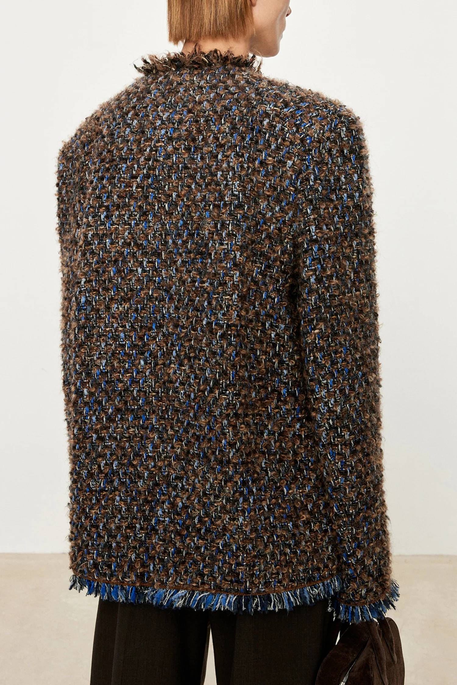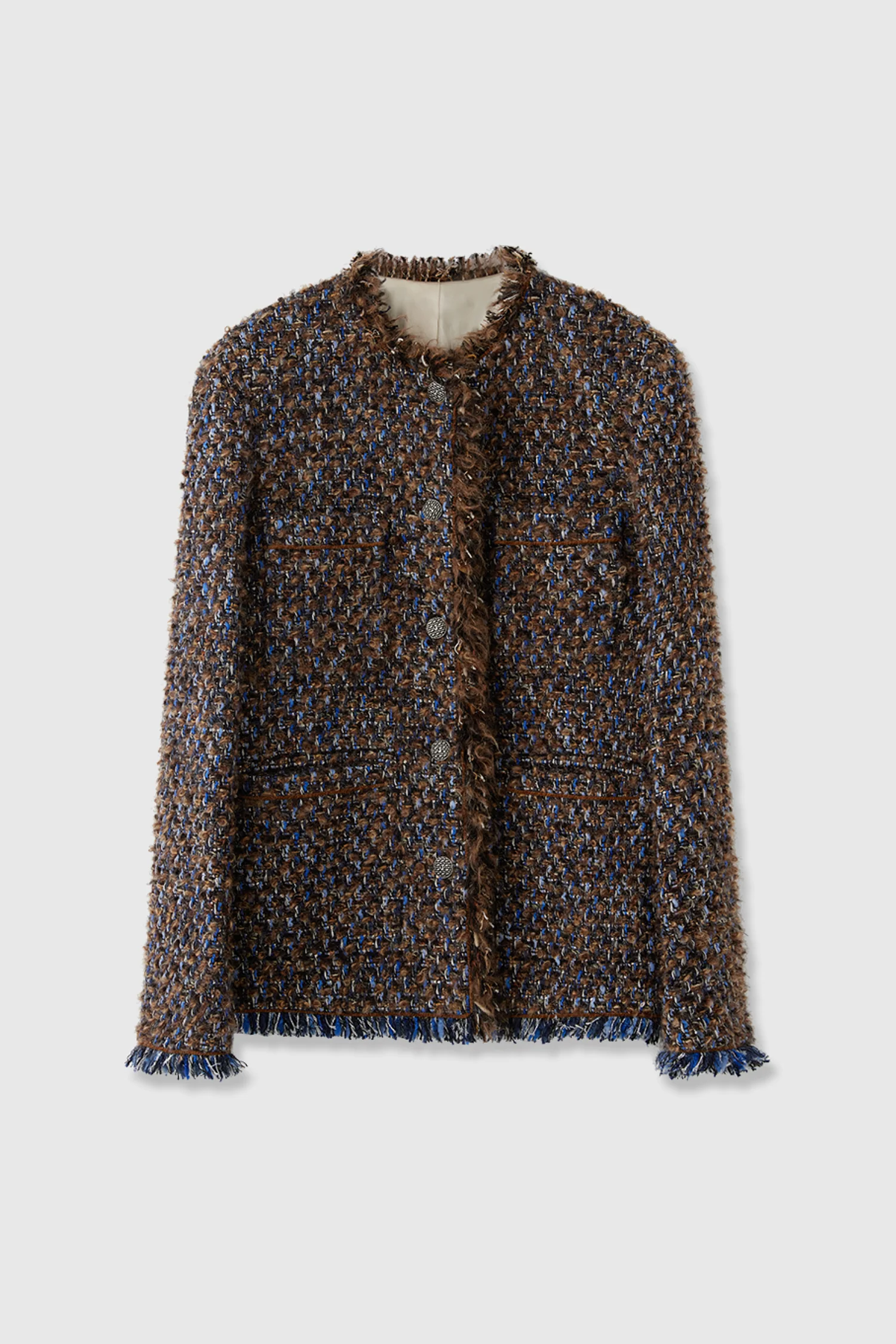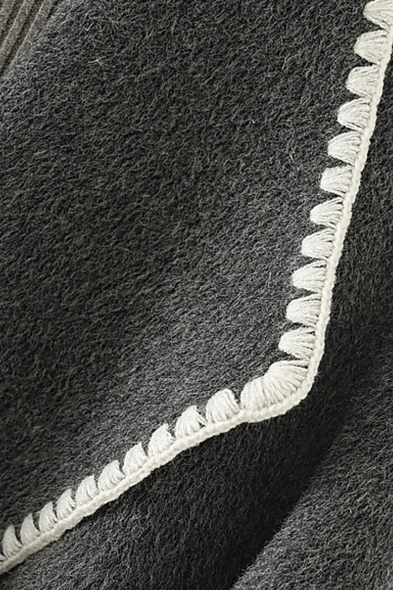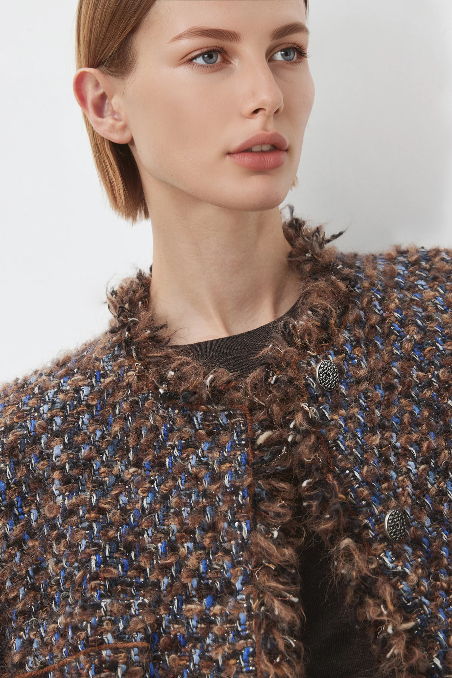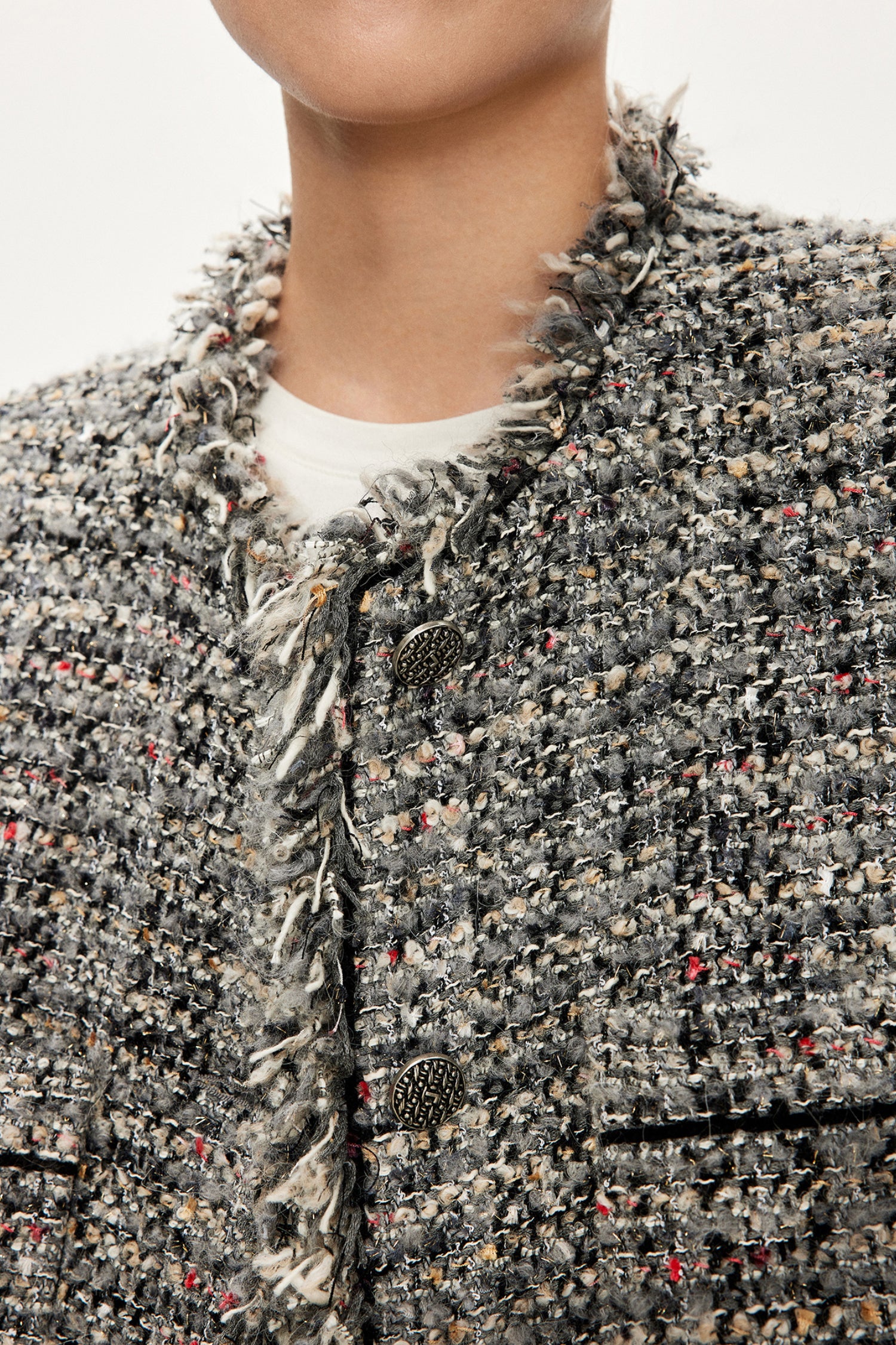 Cropped Wool-Blend Contrast-Trim Fringe Jacket