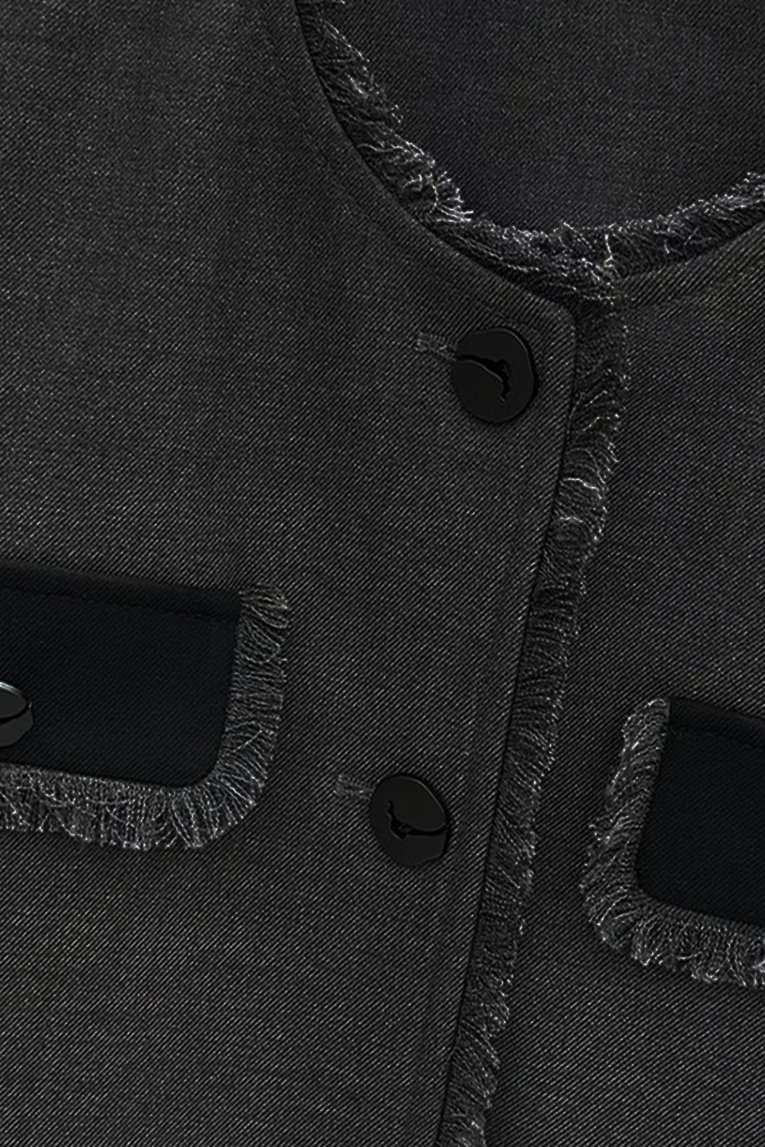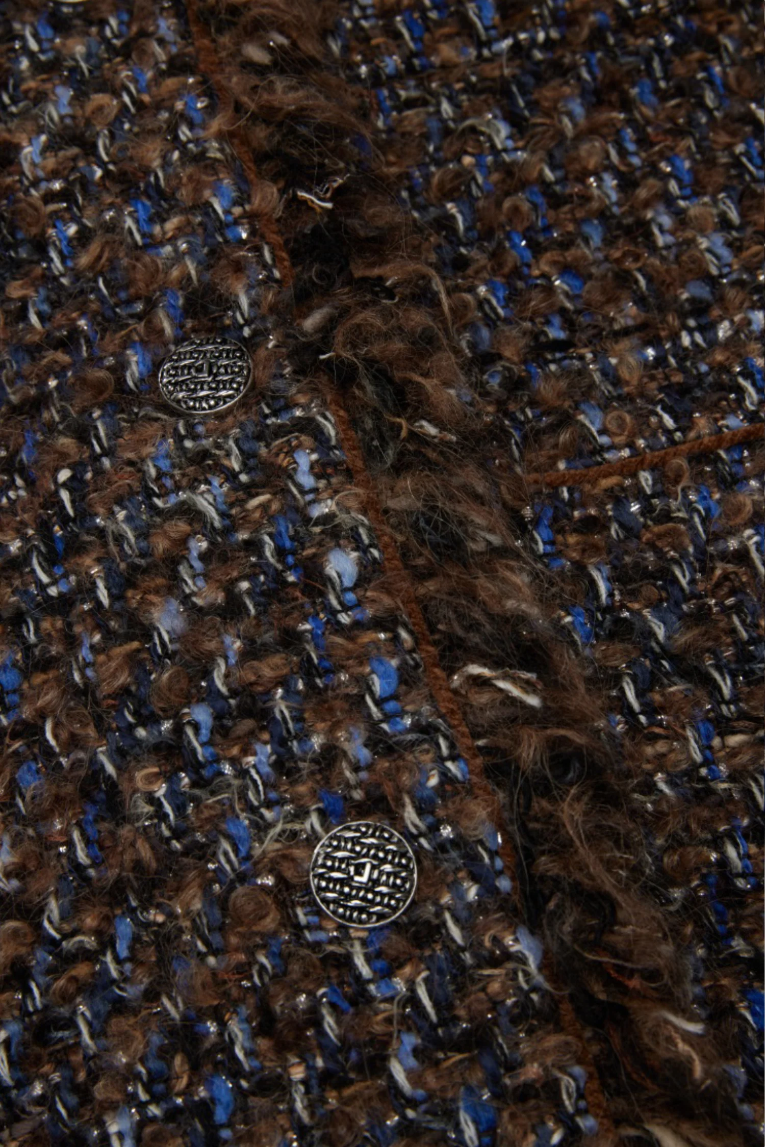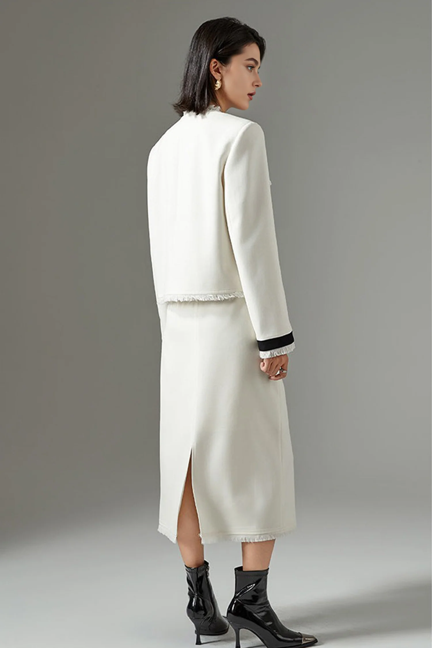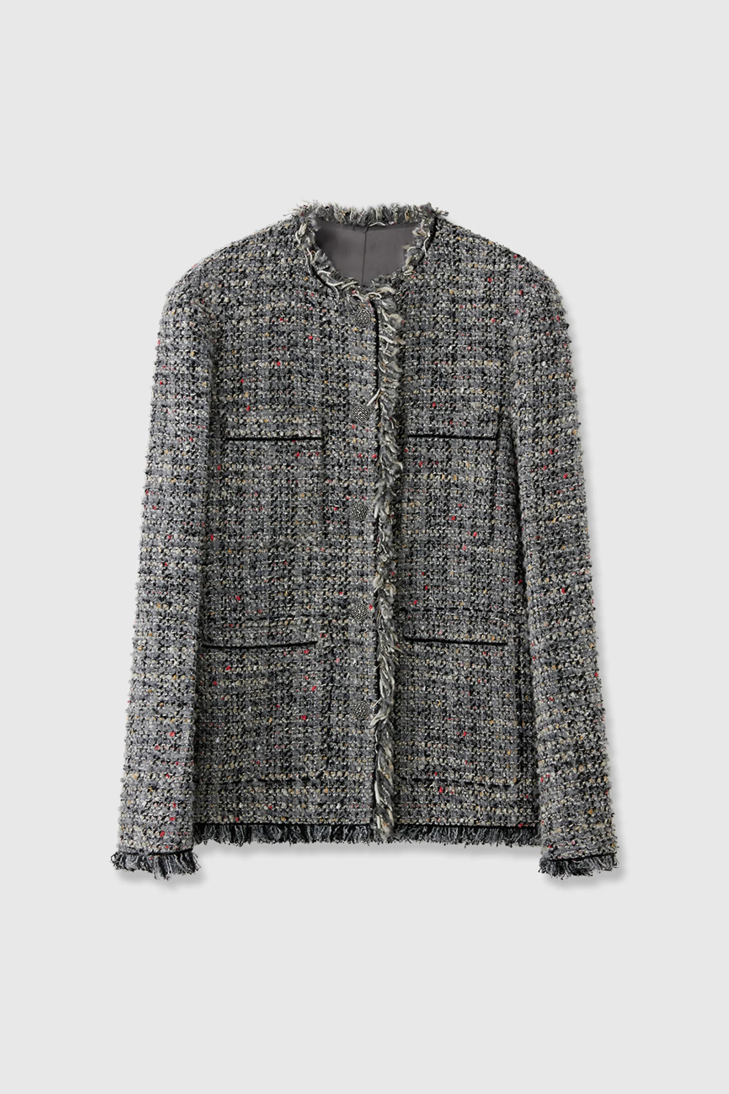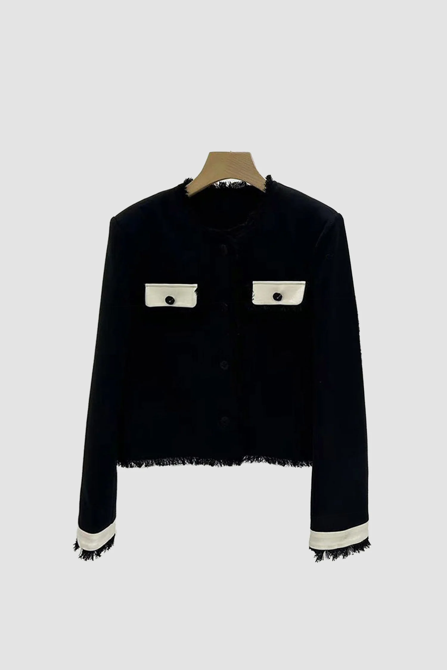 Cropped Wool-Blend Contrast-Trim Fringe Jacket