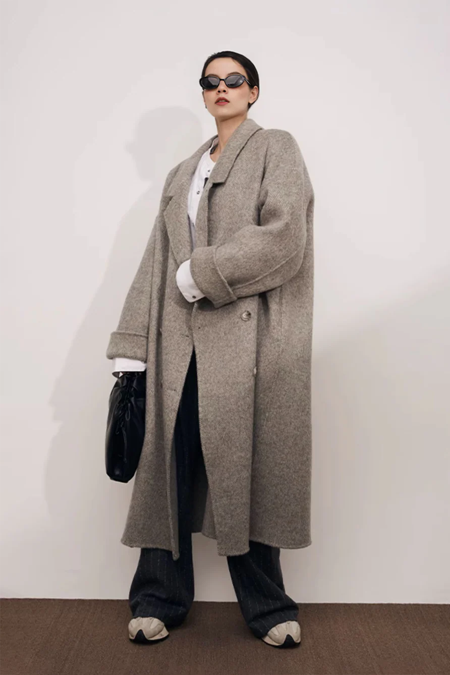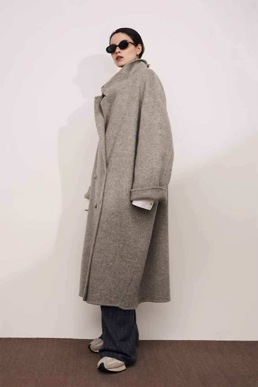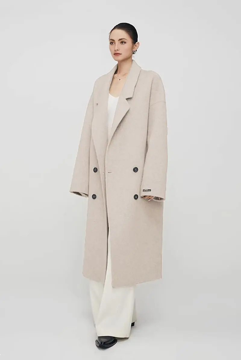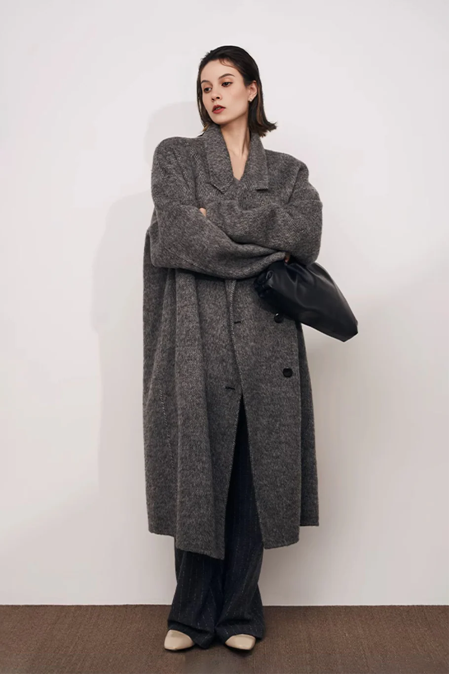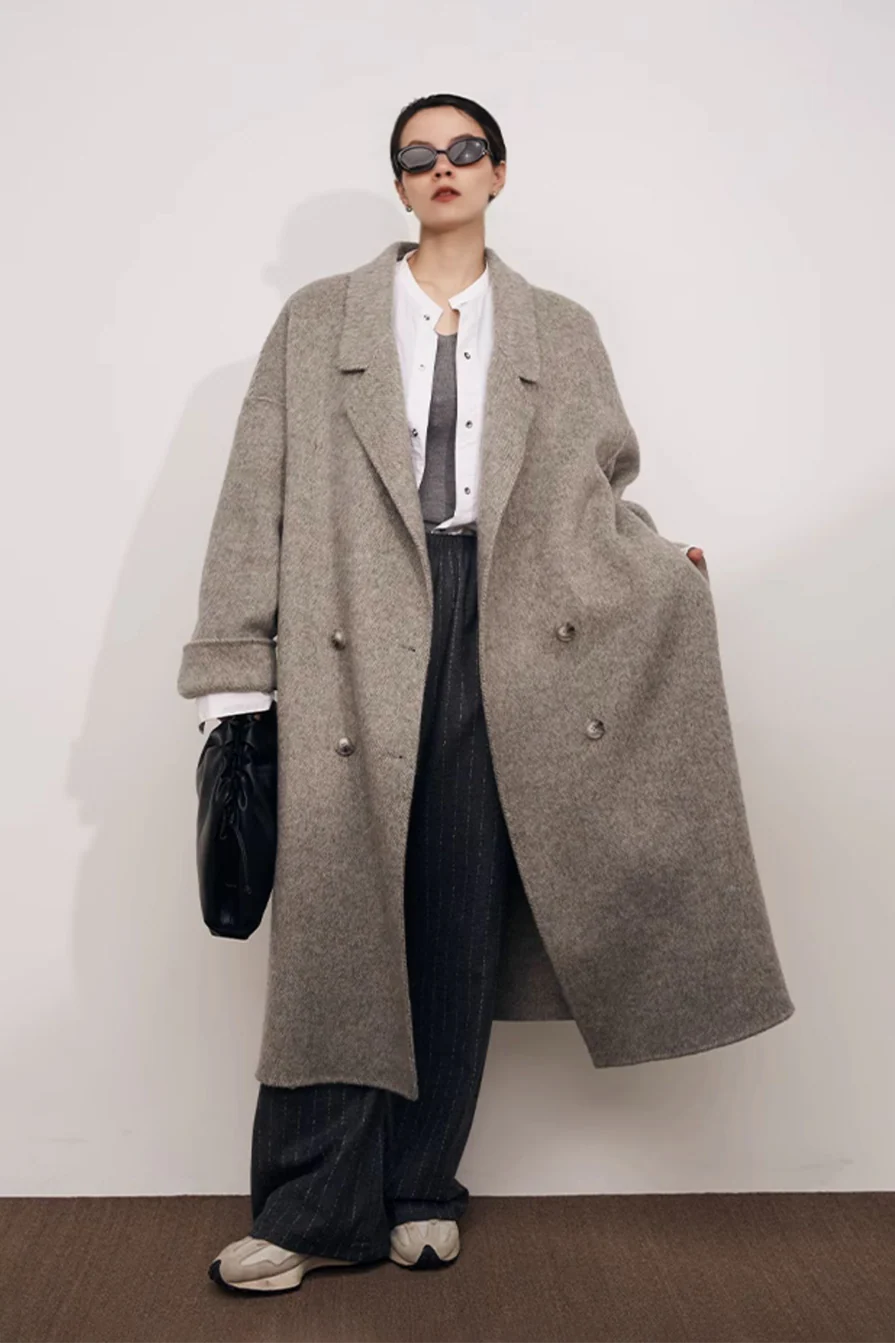 Oversized Double-breasted Long Wool Coat With Lapel Collar