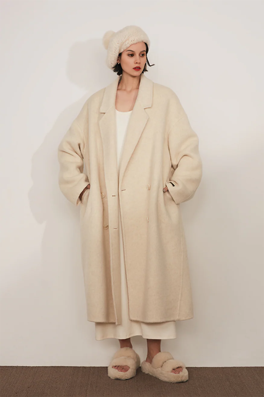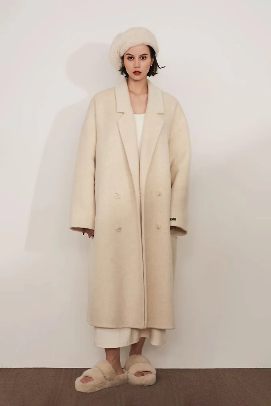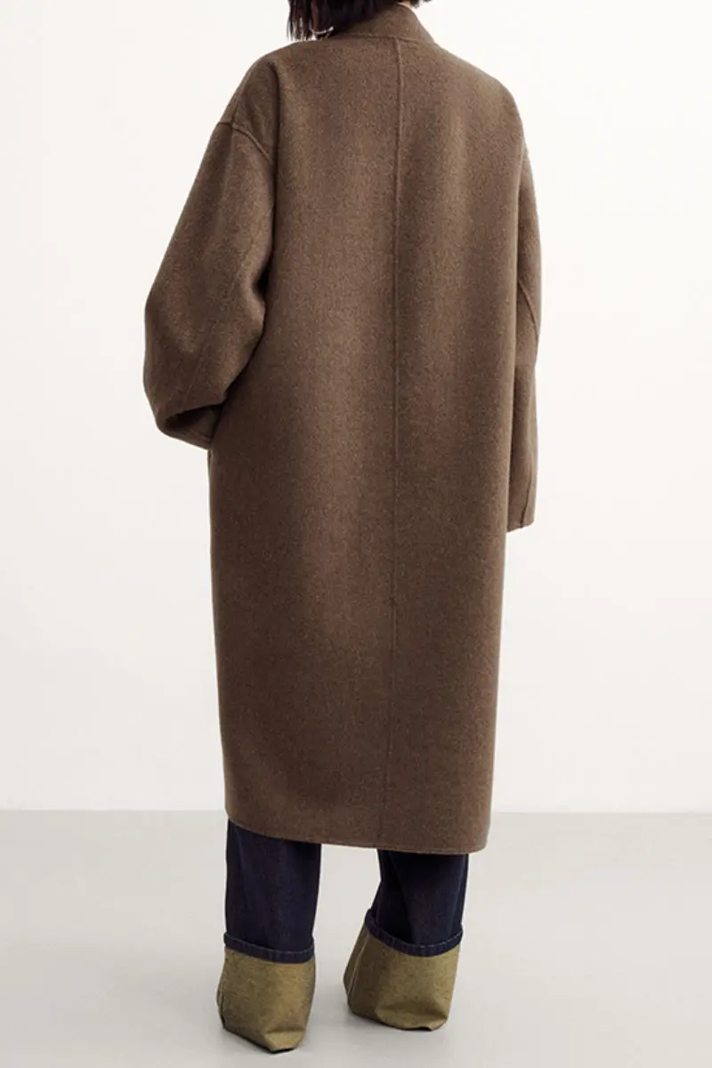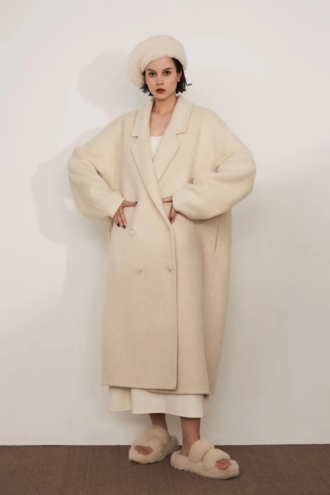 Oversized Double-breasted Long Wool Coat With Lapel Collar