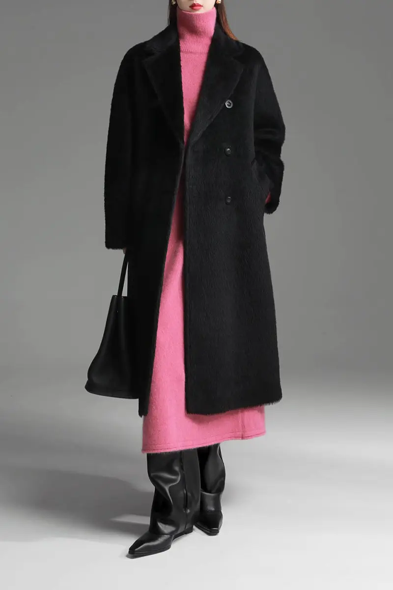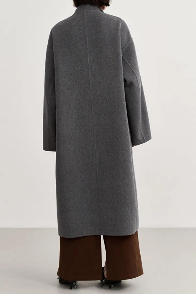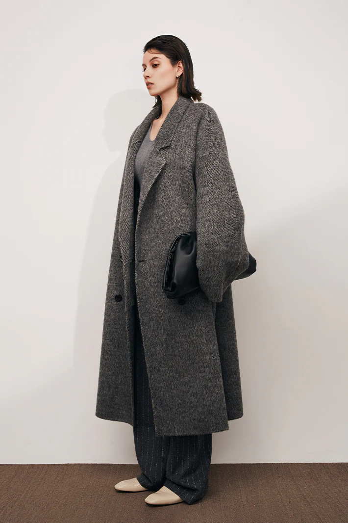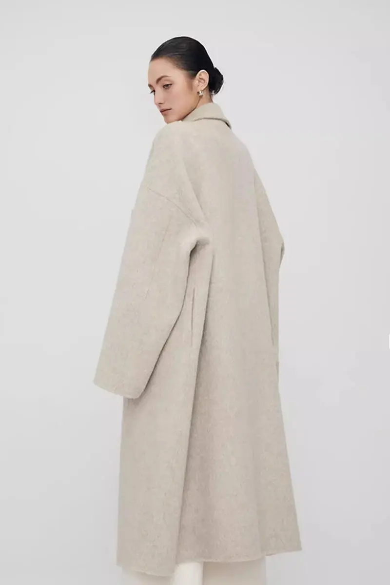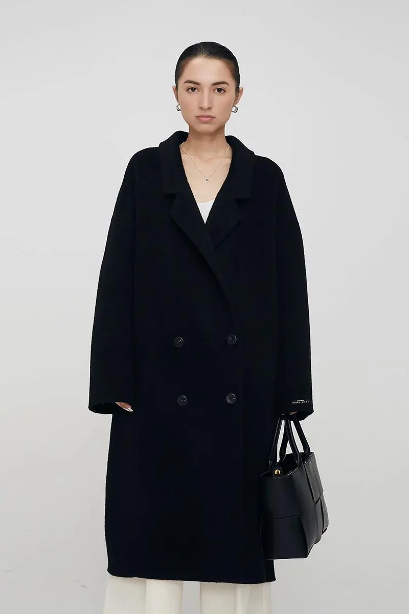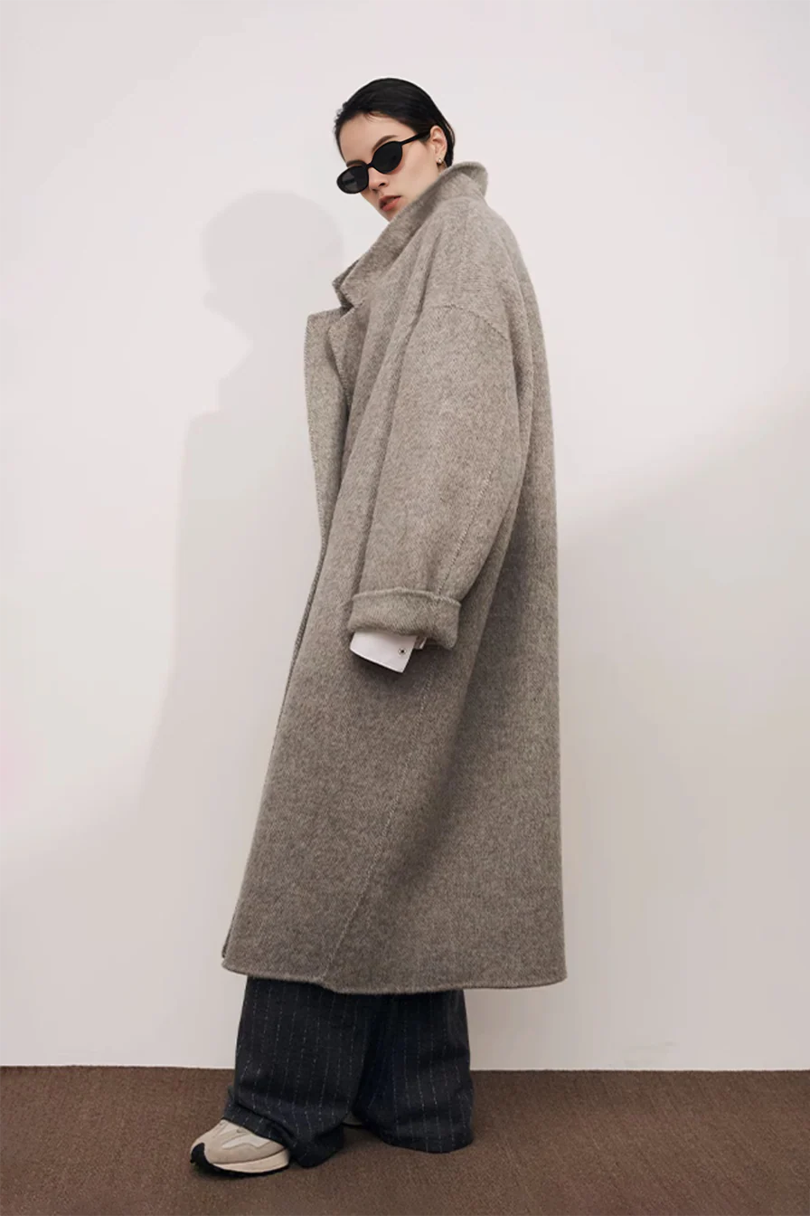 Oversized Double-breasted Long Wool Coat With Lapel Collar