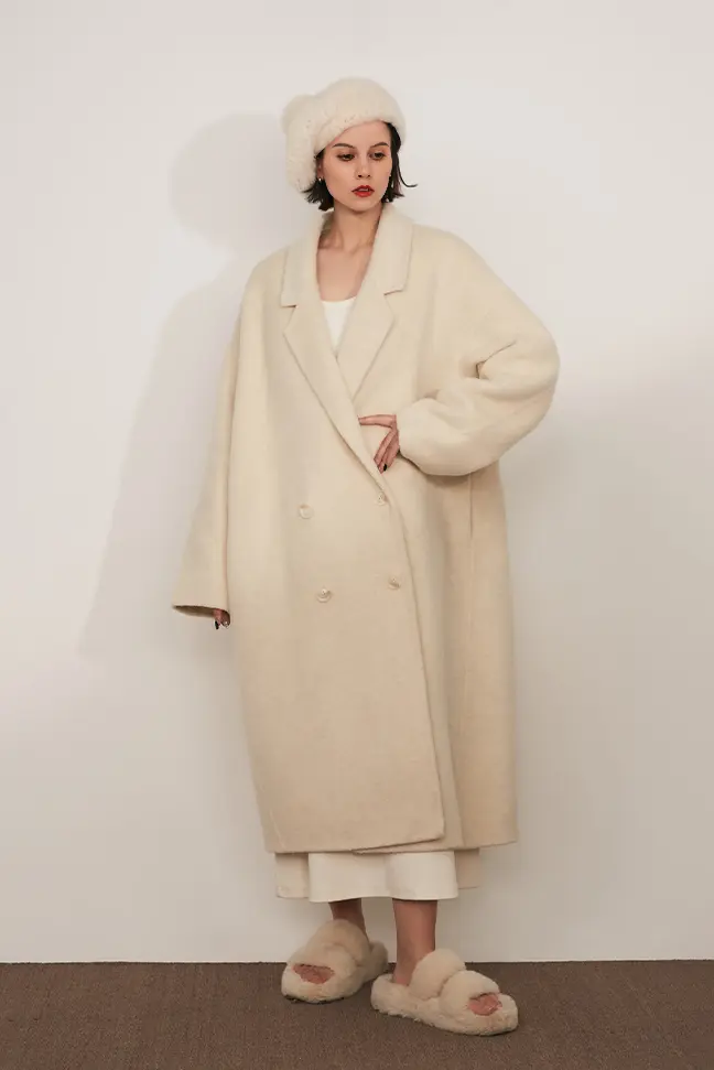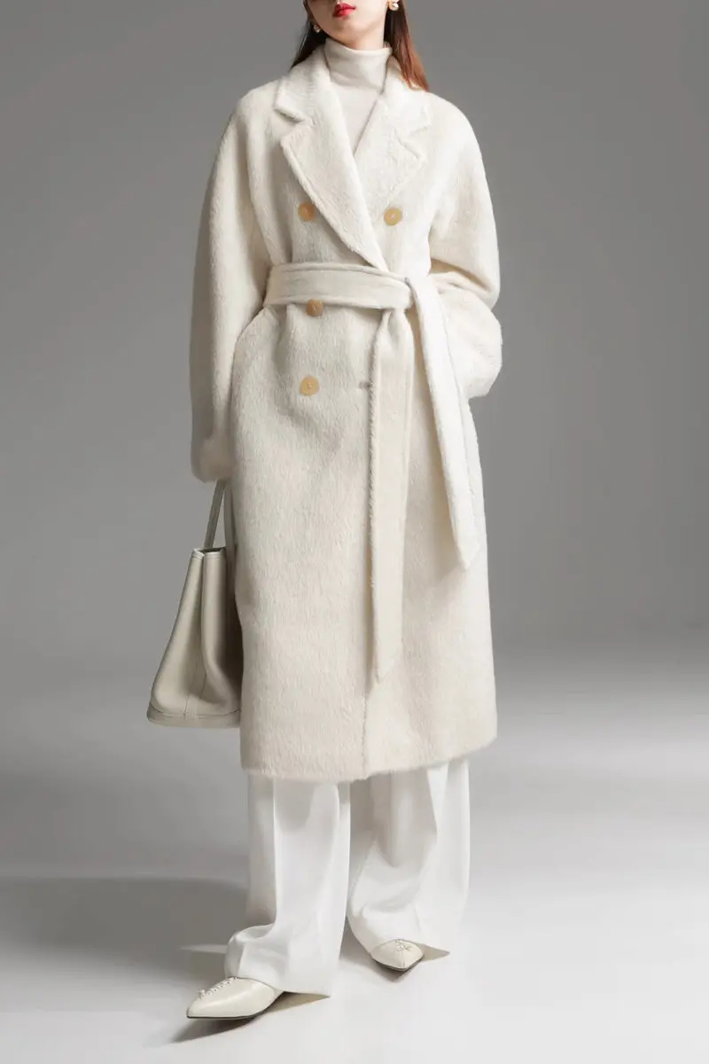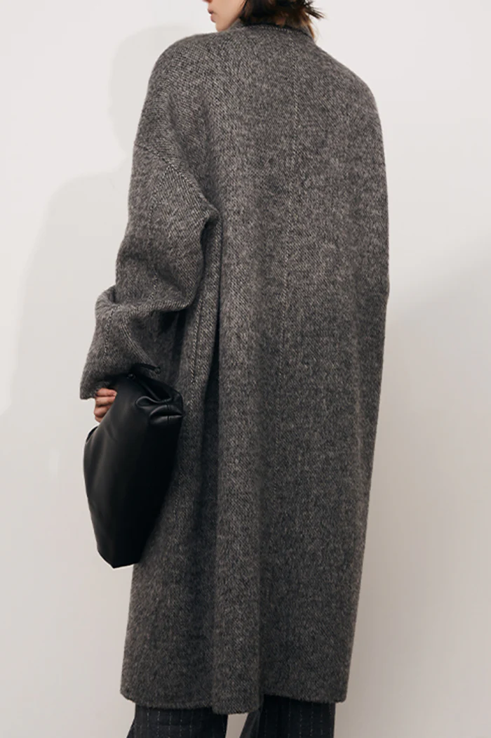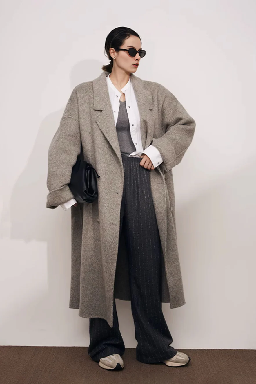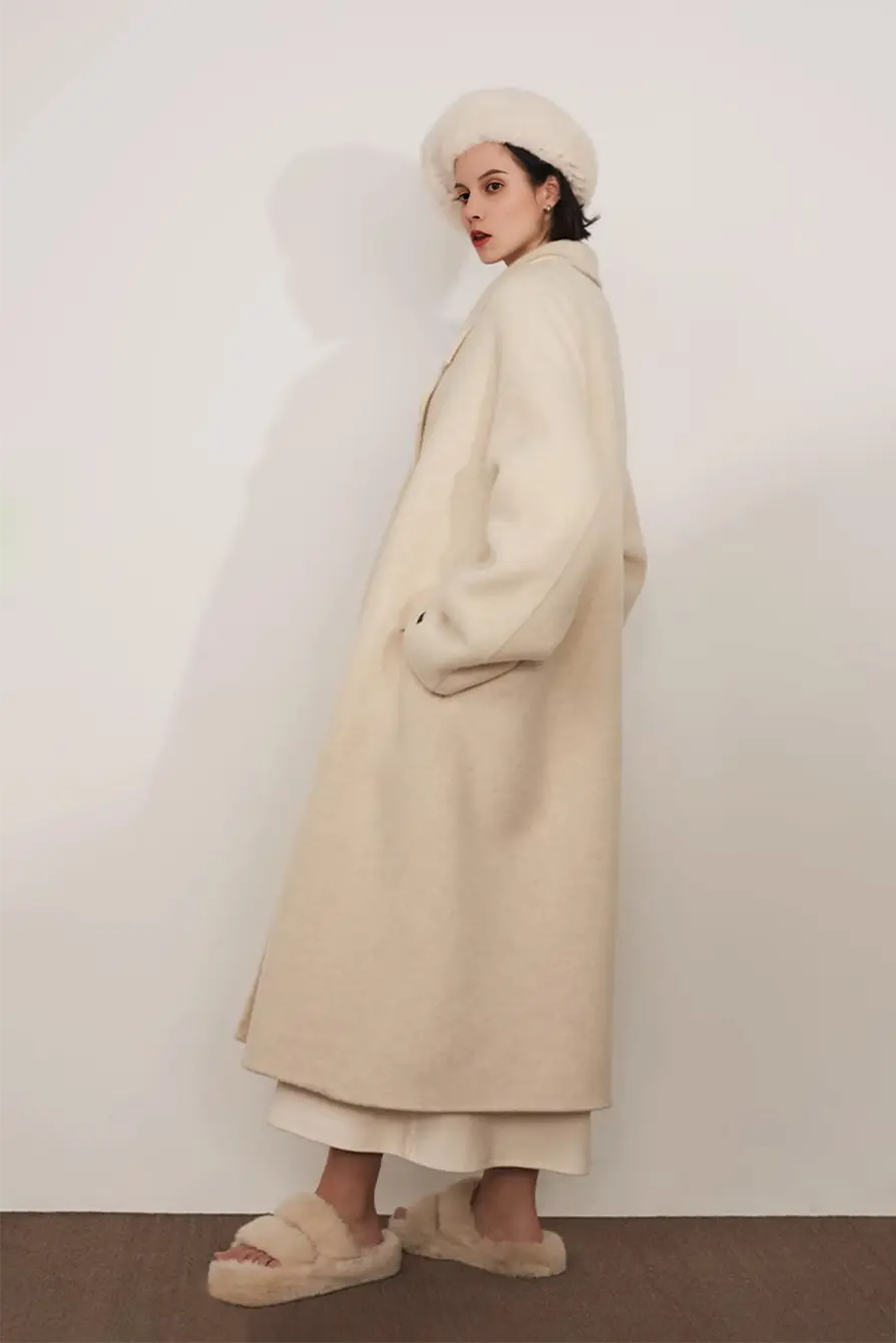 Oversized Double-breasted Long Wool Coat With Lapel Collar