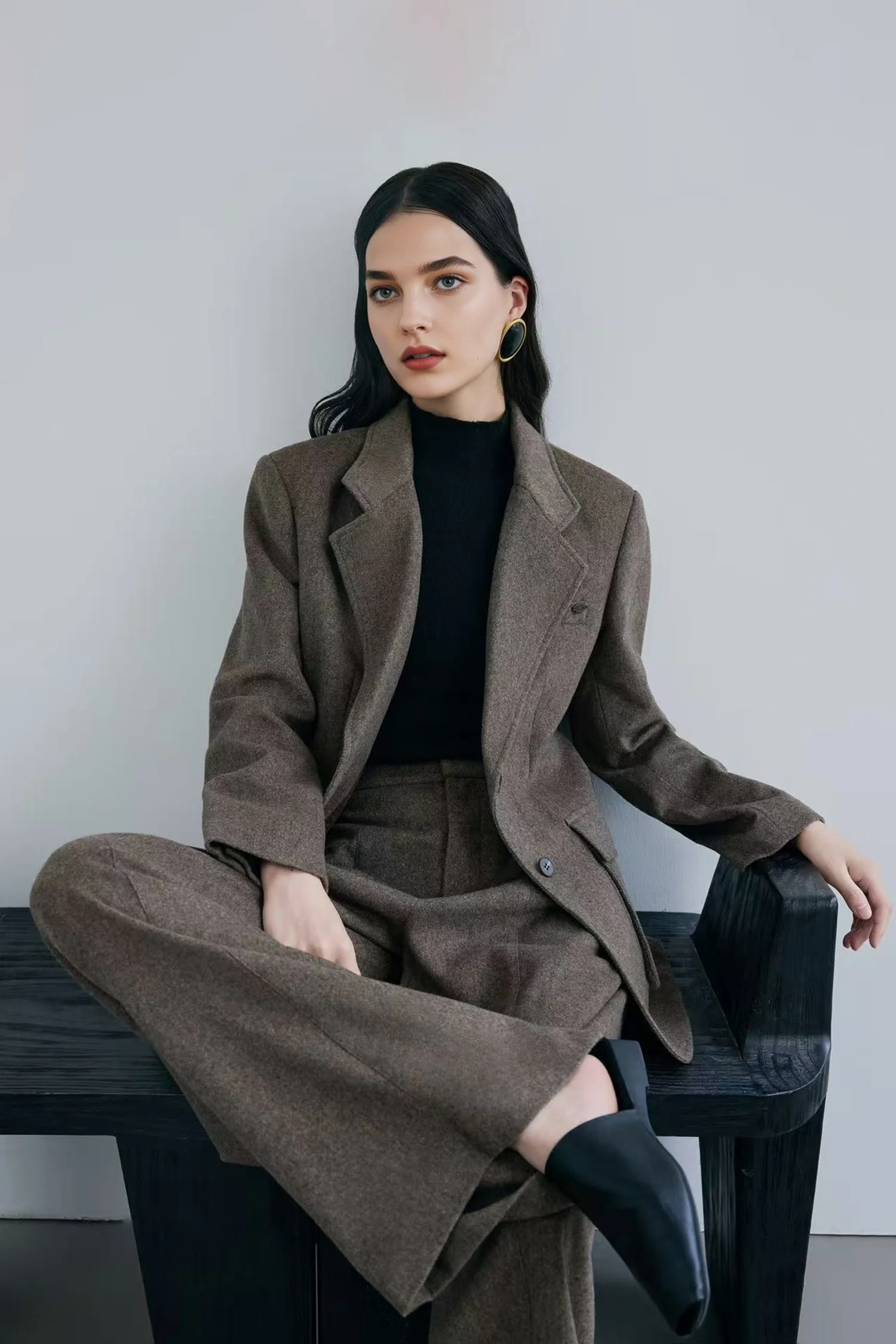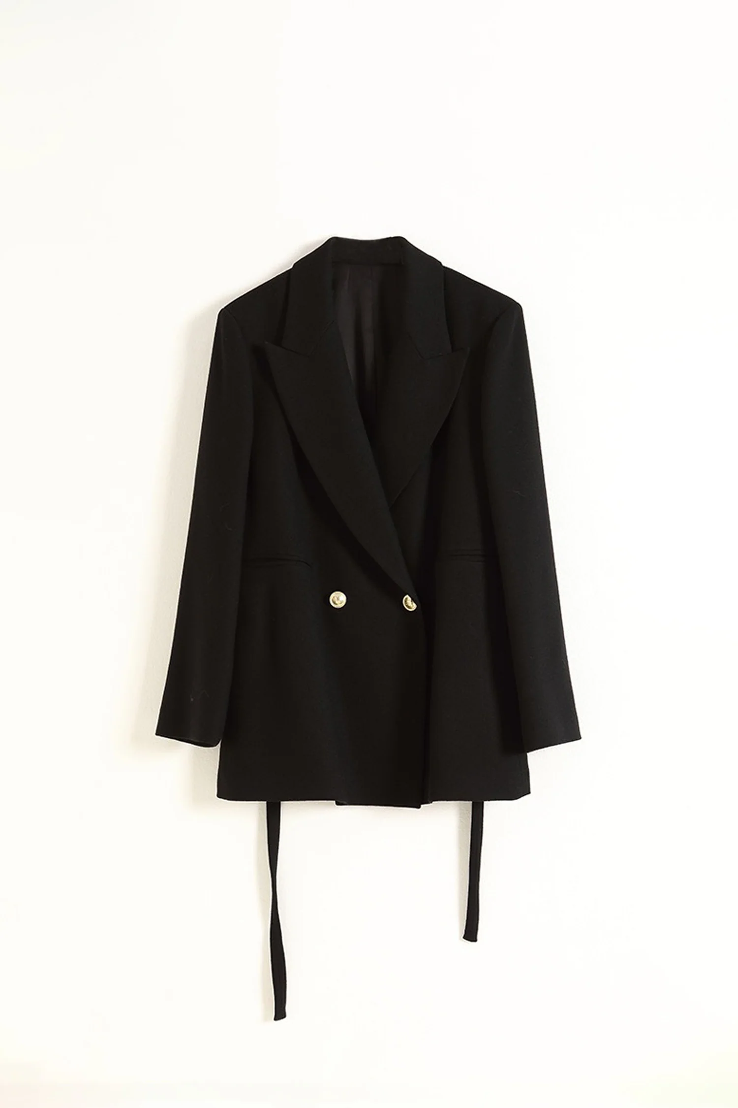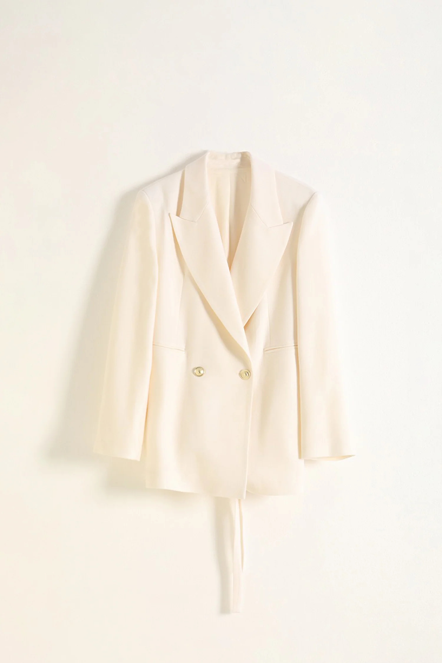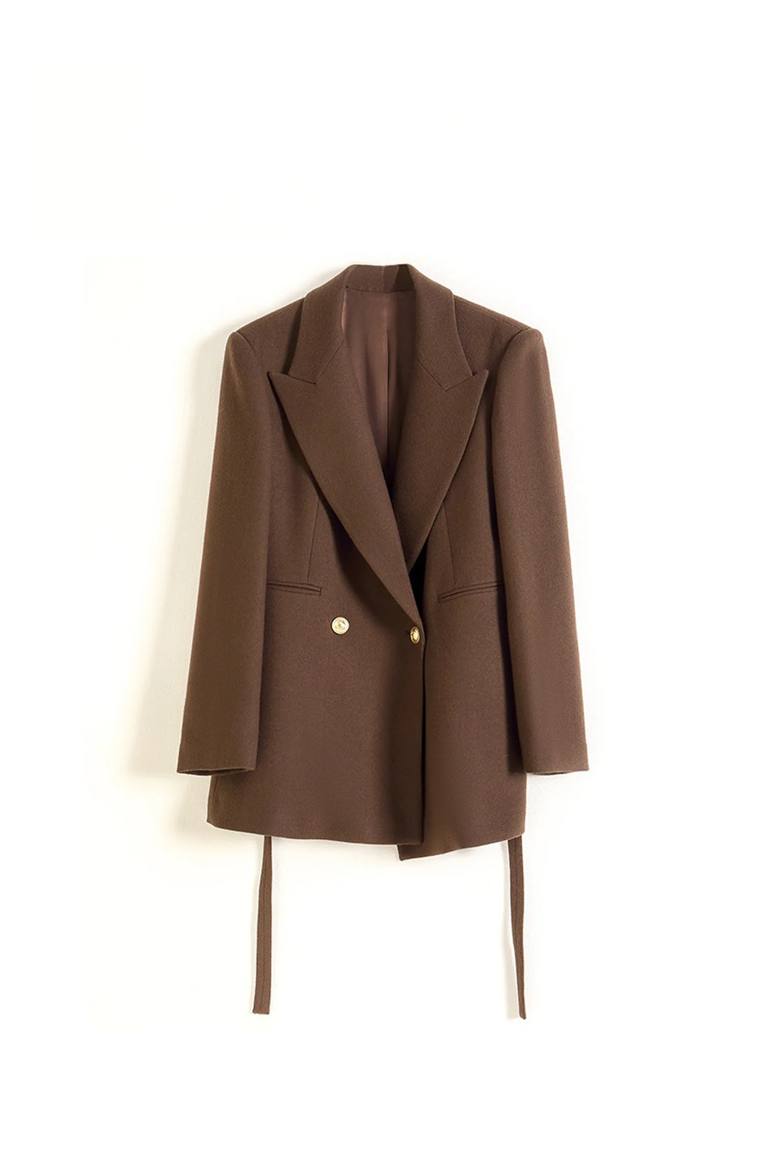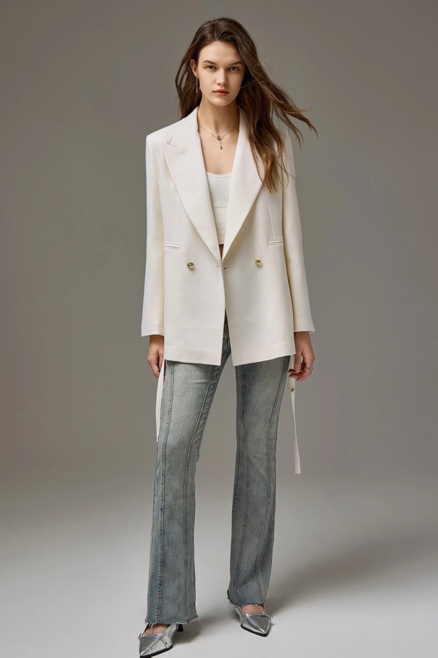100% Wool Tailored Double-Breasted Blazer with Belt