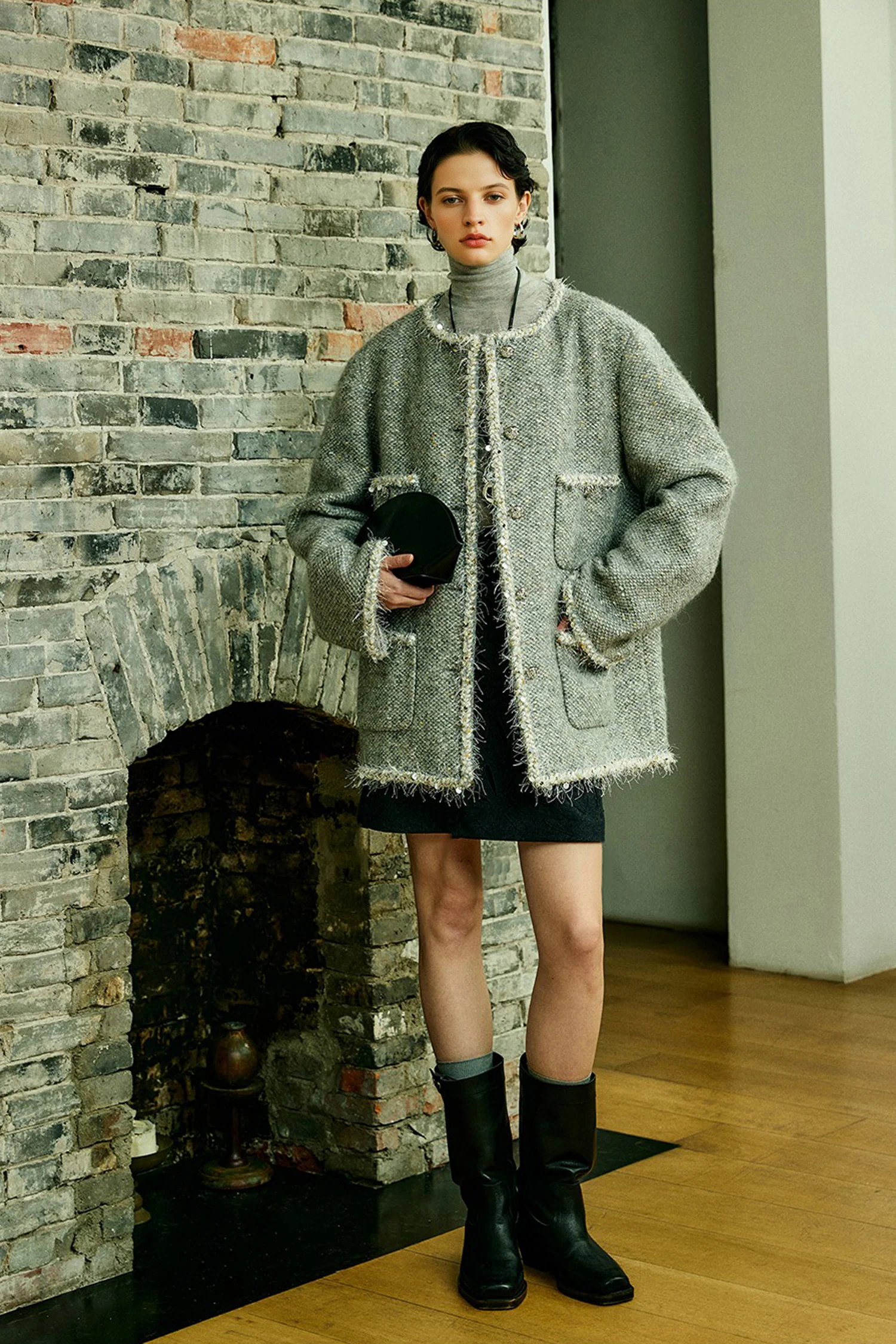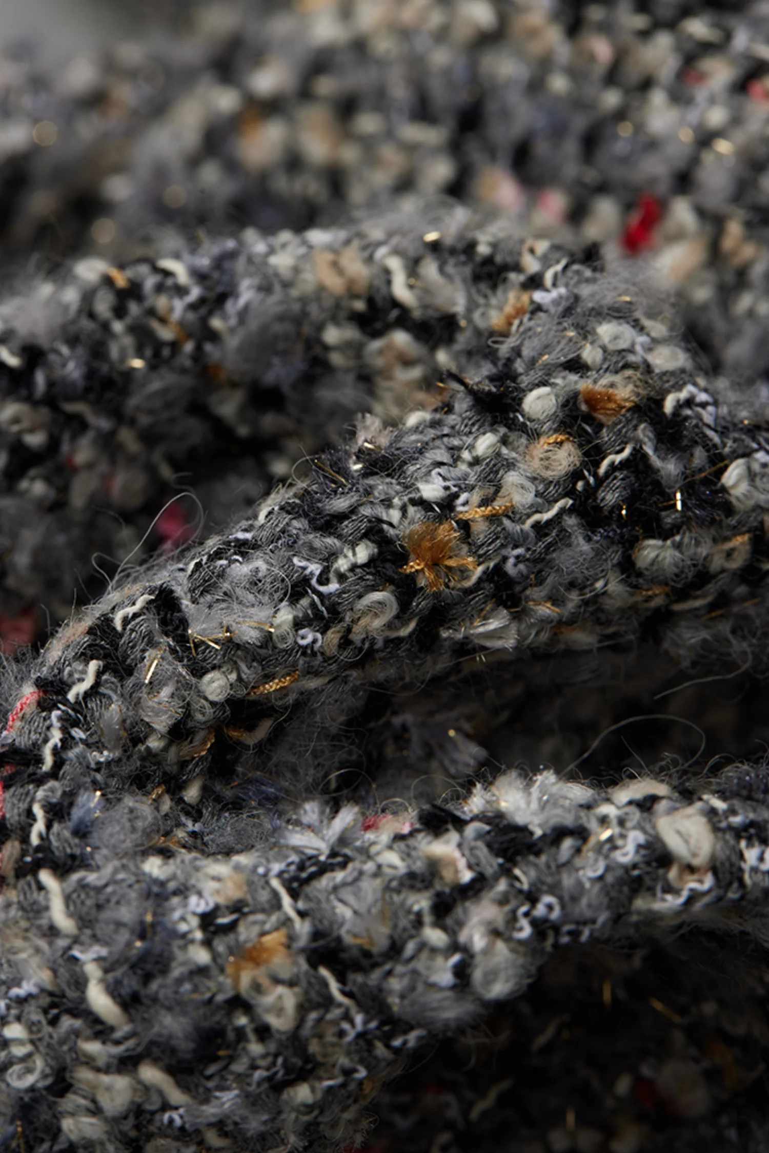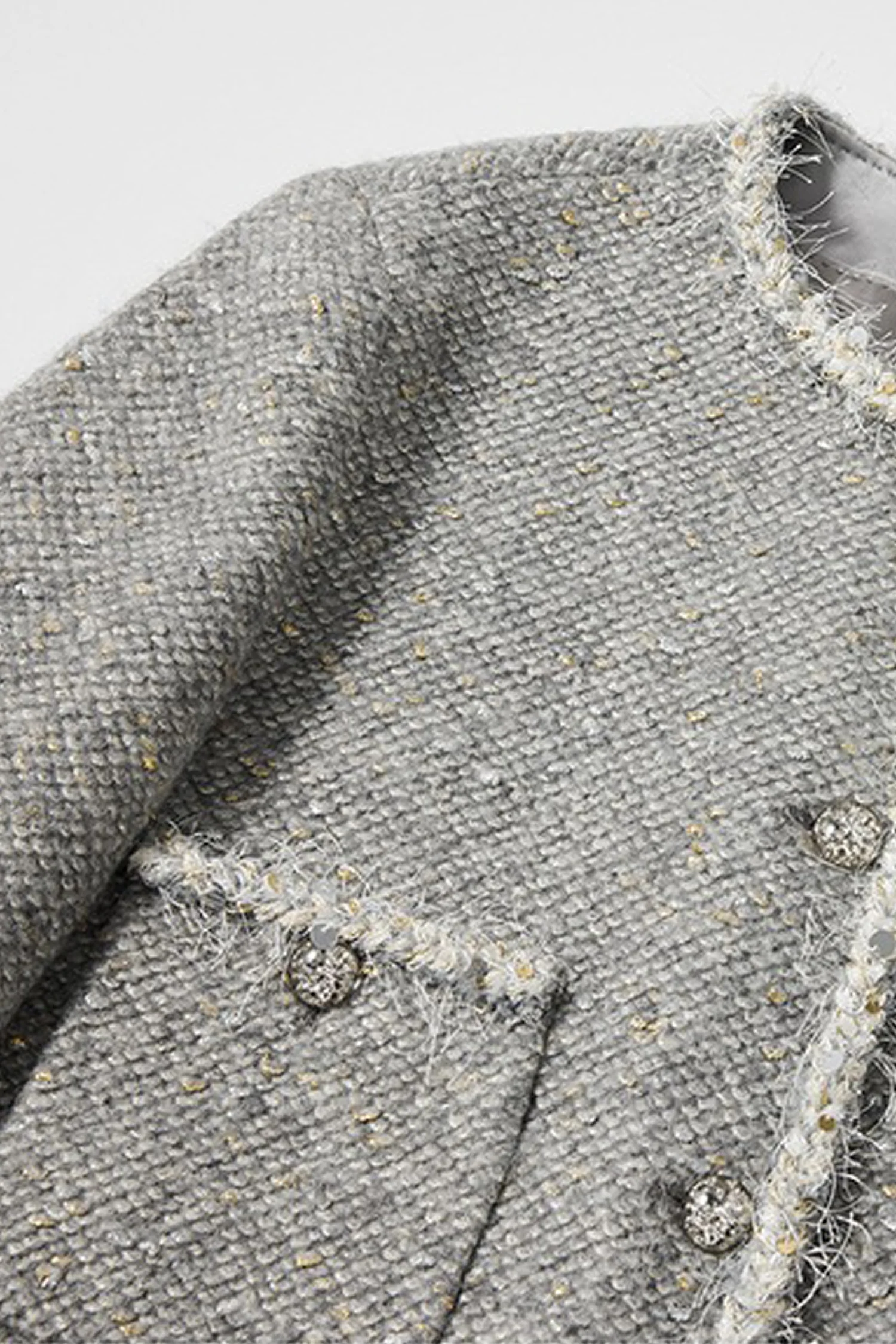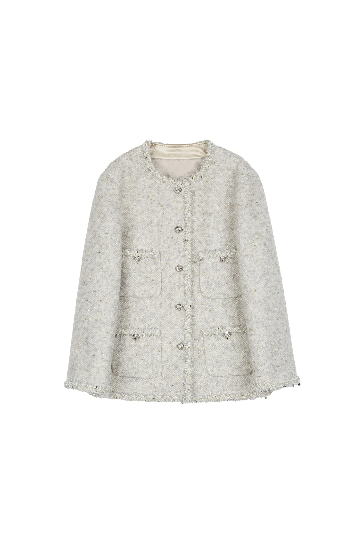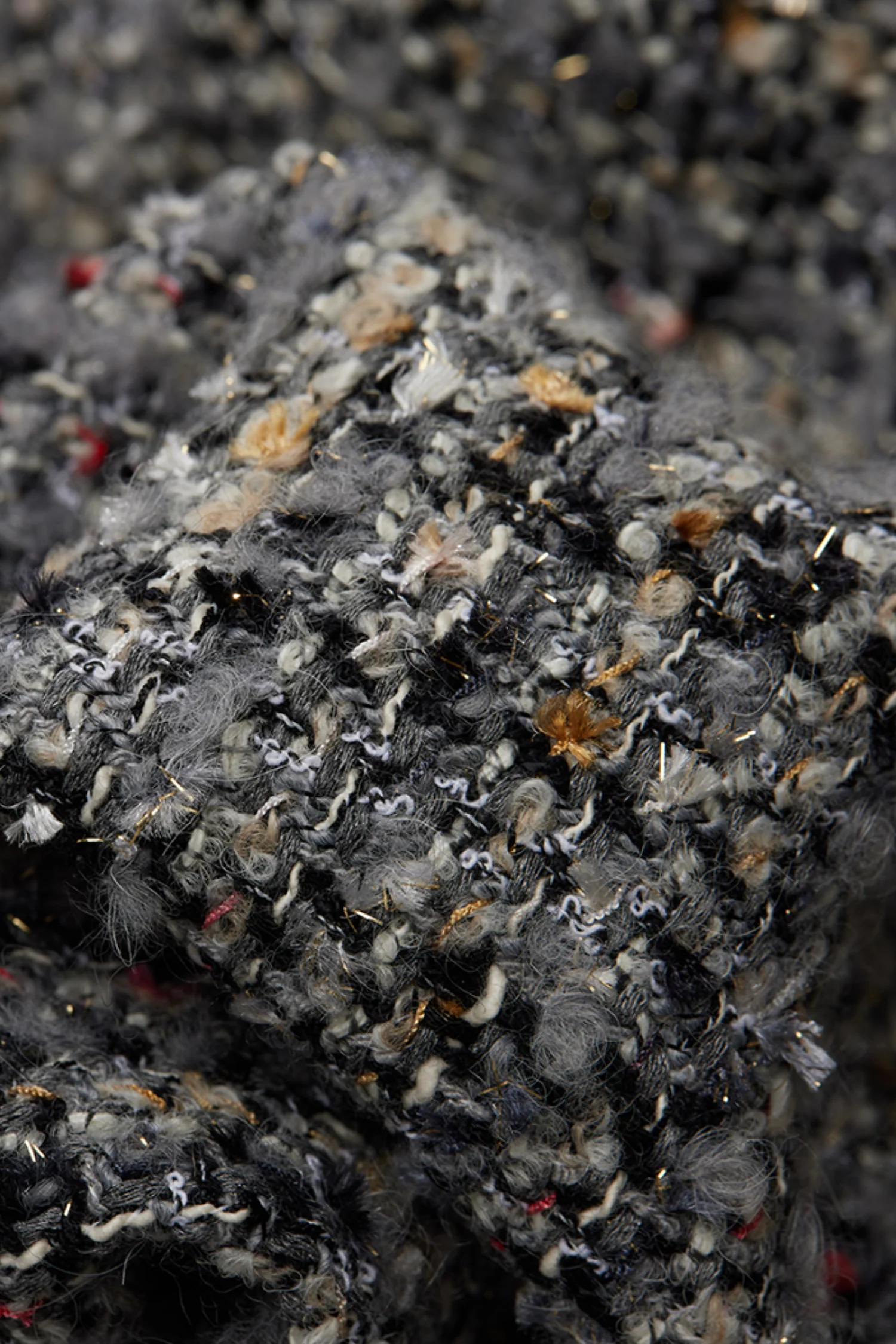 Oversized Wool Metallic Tweed Jacket with Braided Trim