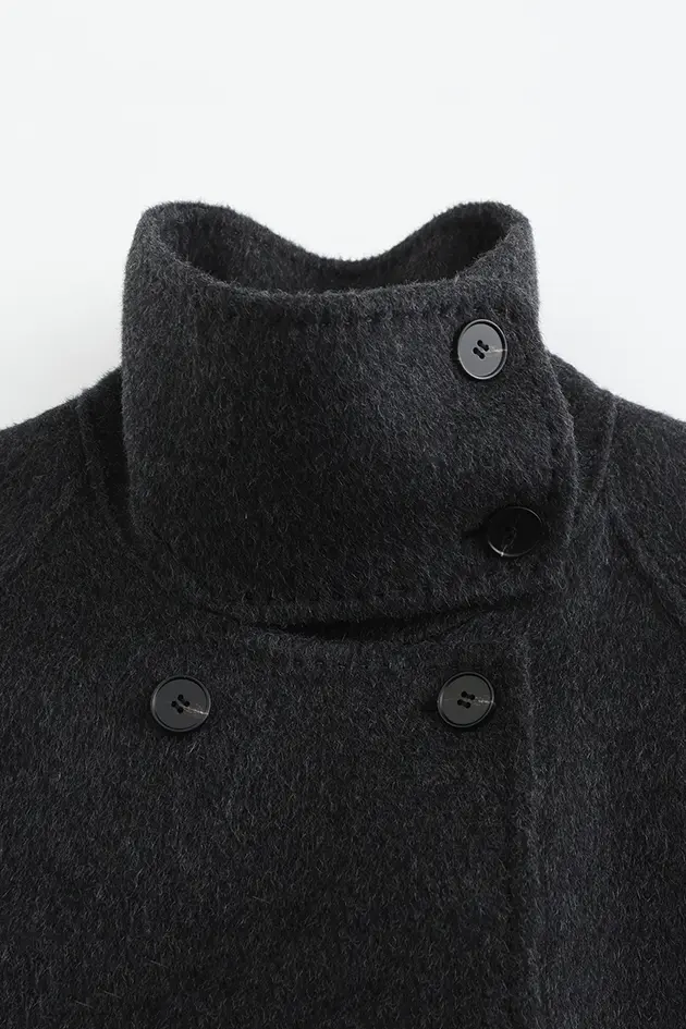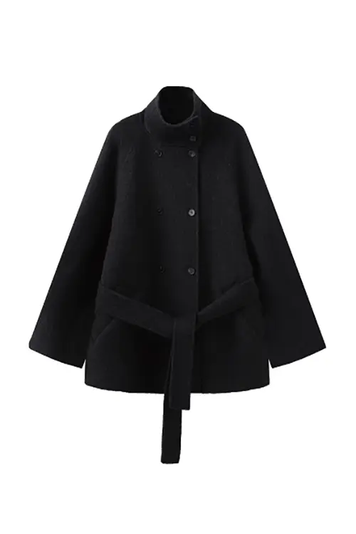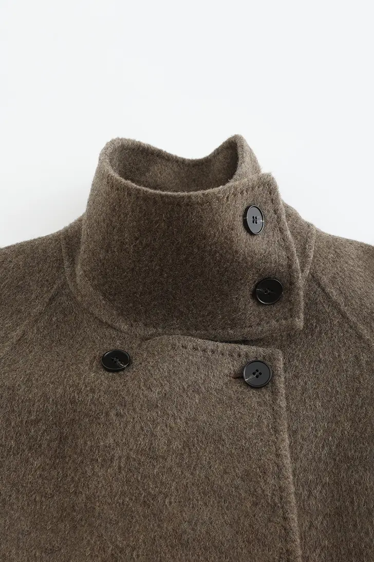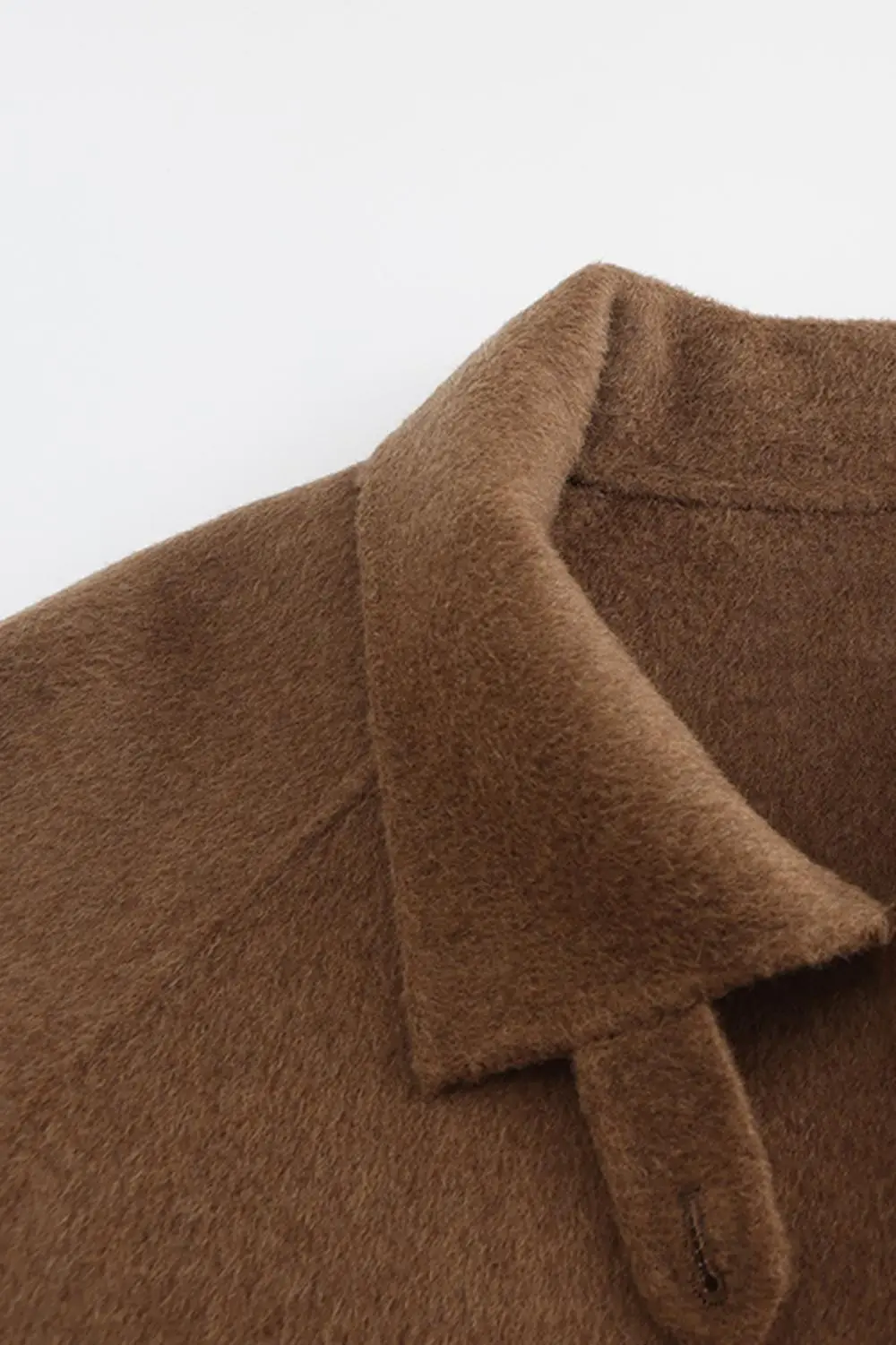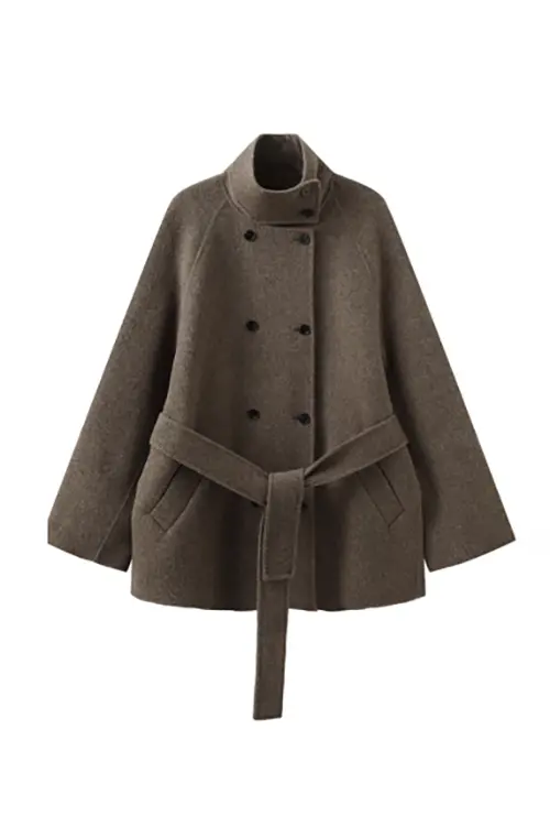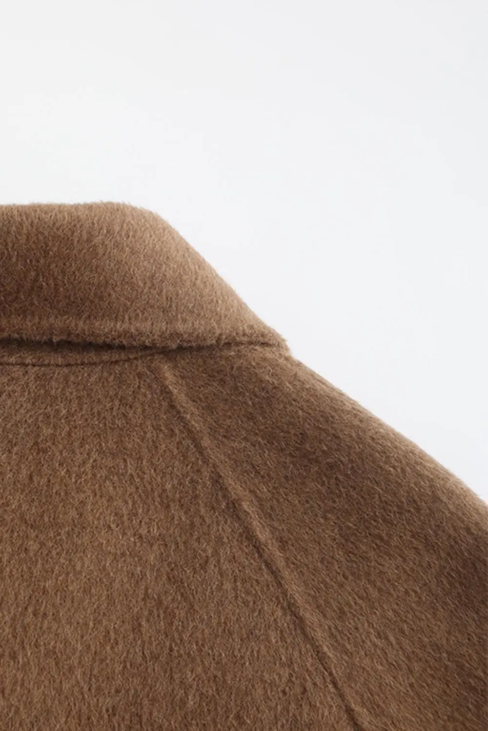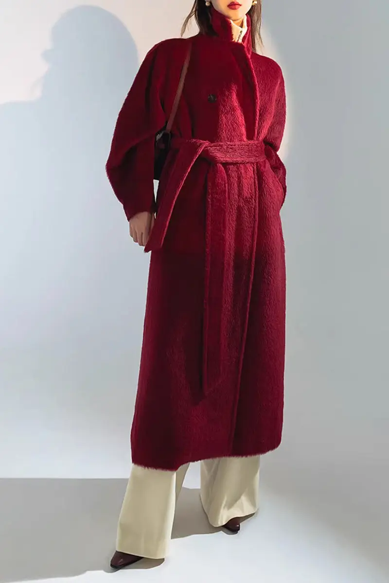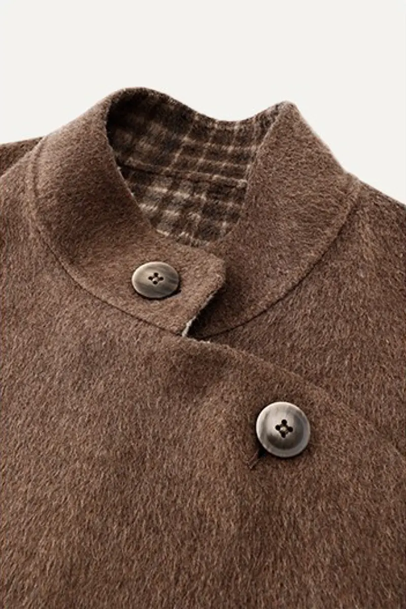 Oversized Wool Alpaca Stand Collar Cape Coat with Belt