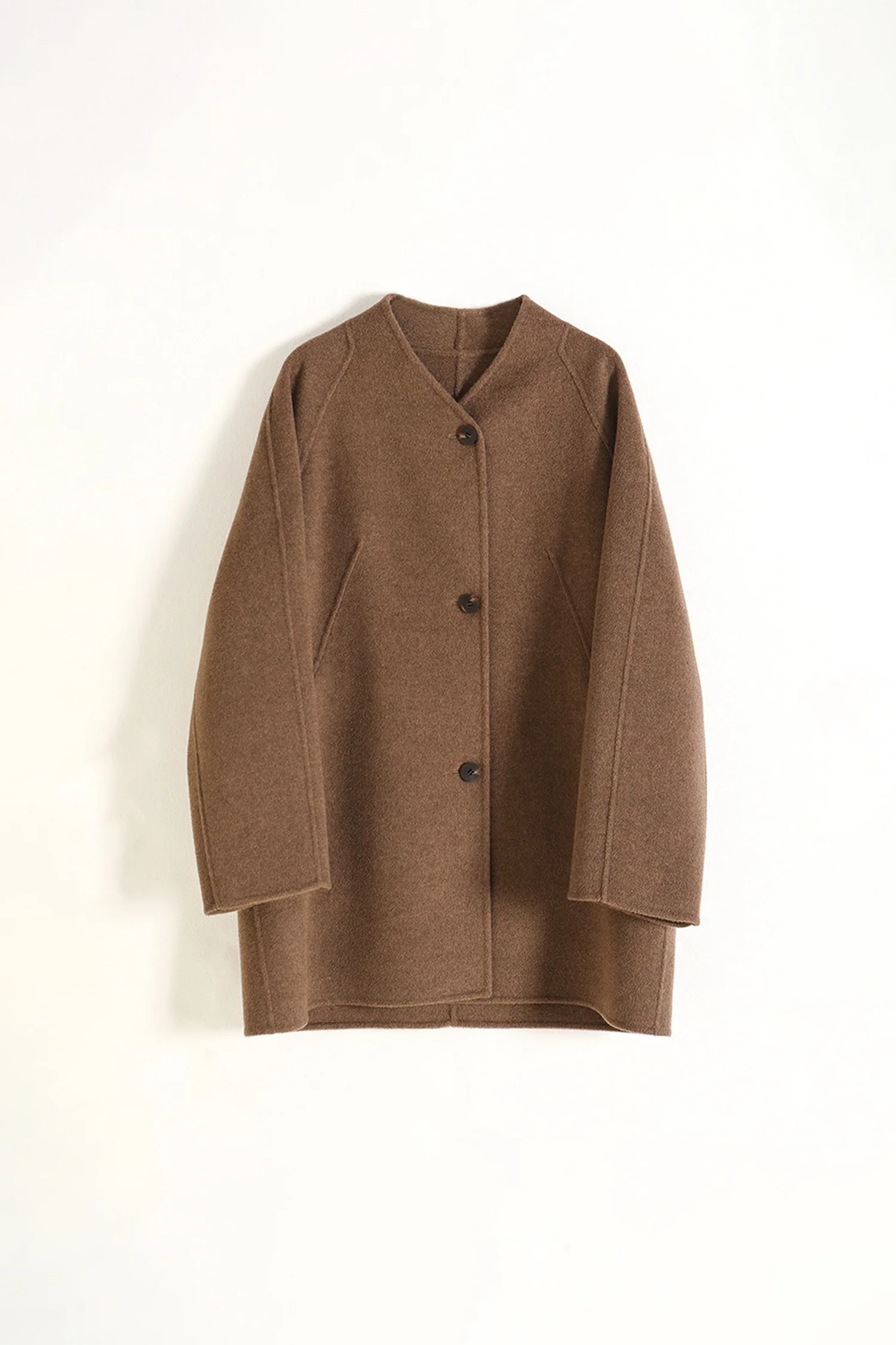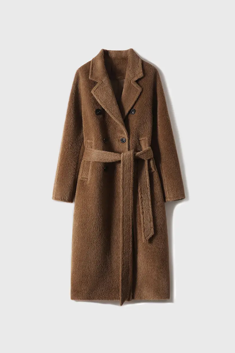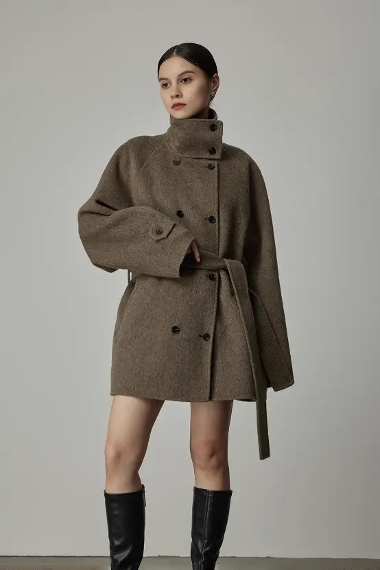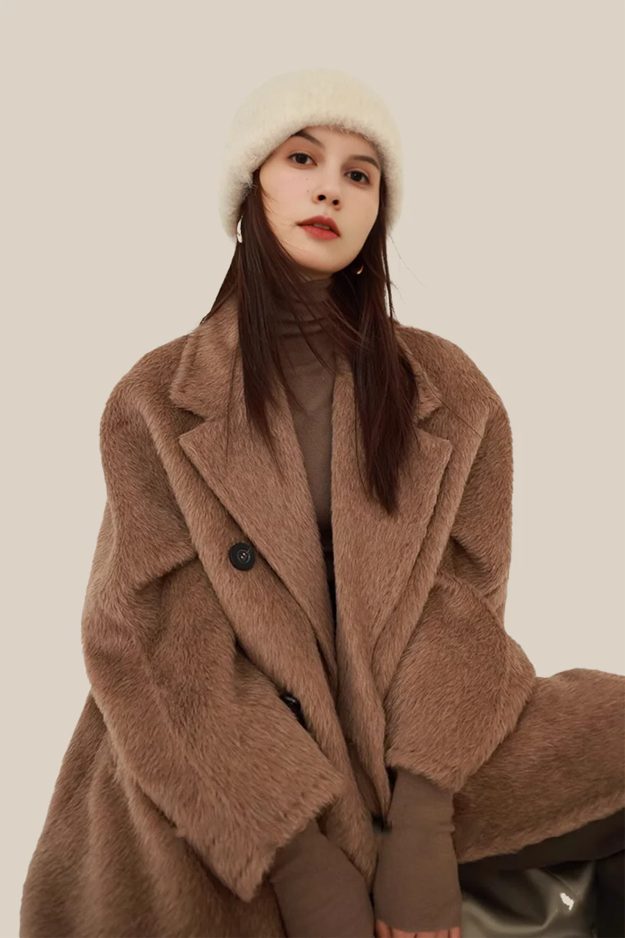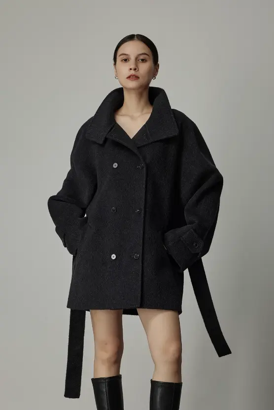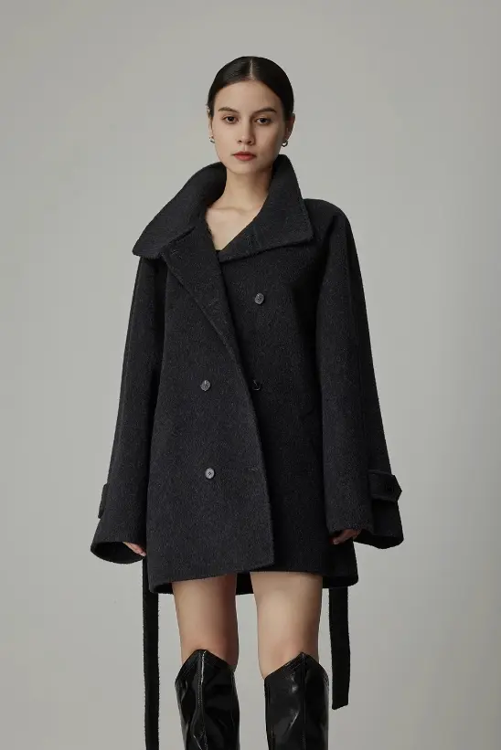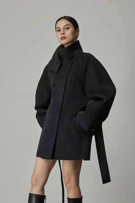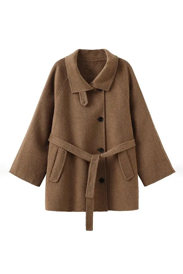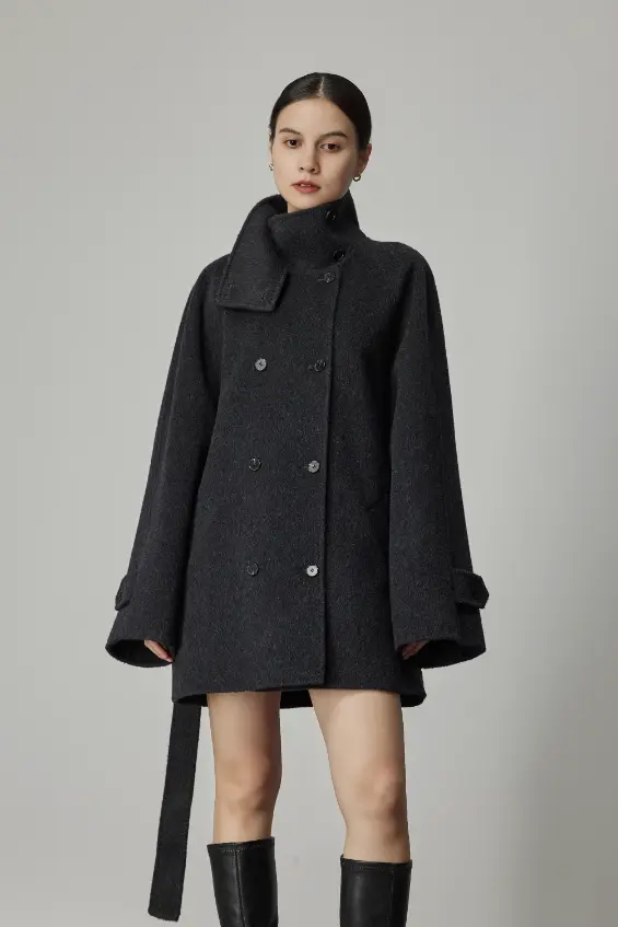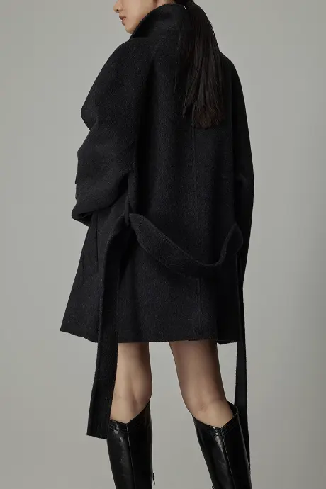 Oversized Wool Alpaca Stand Collar Cape Coat with Belt