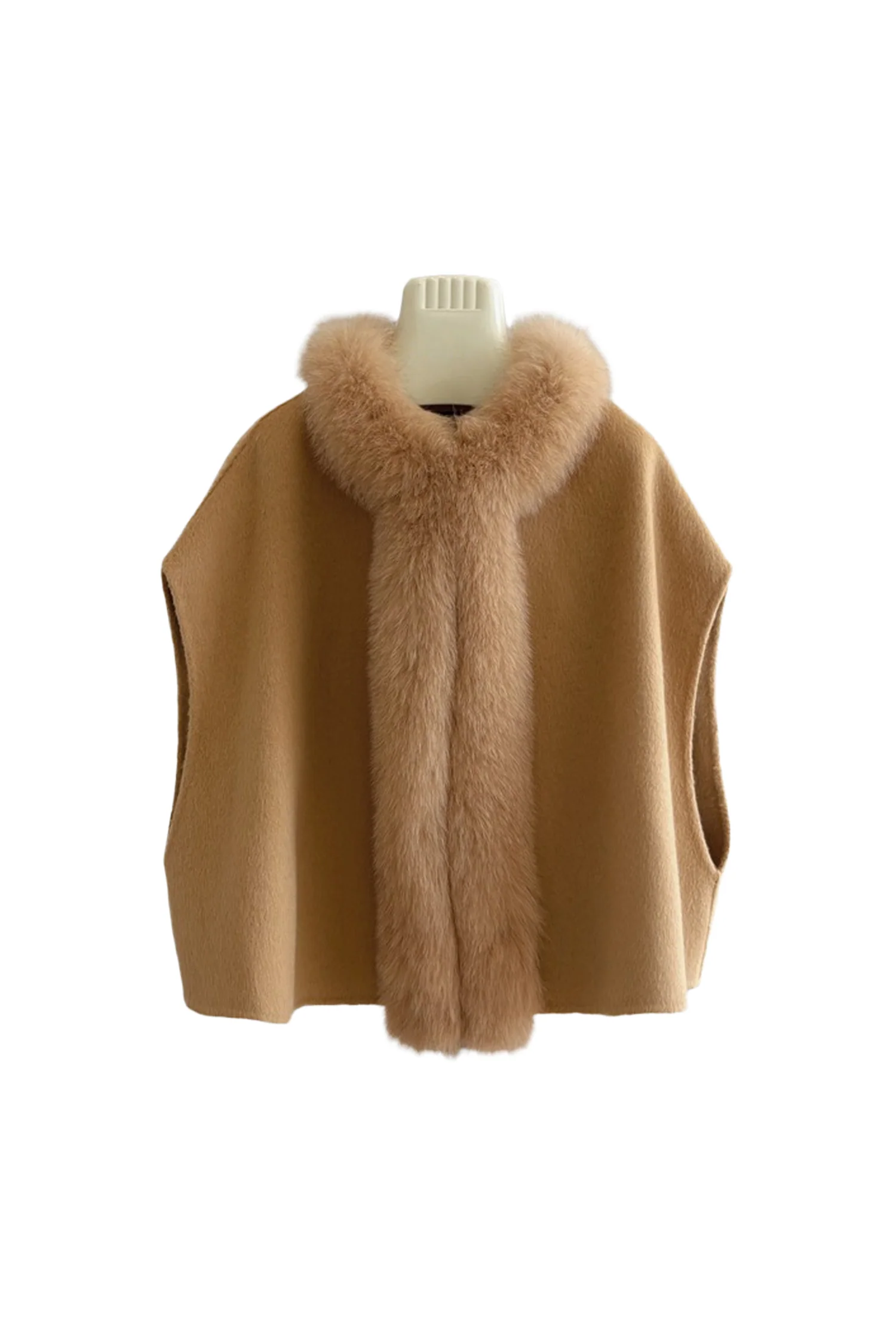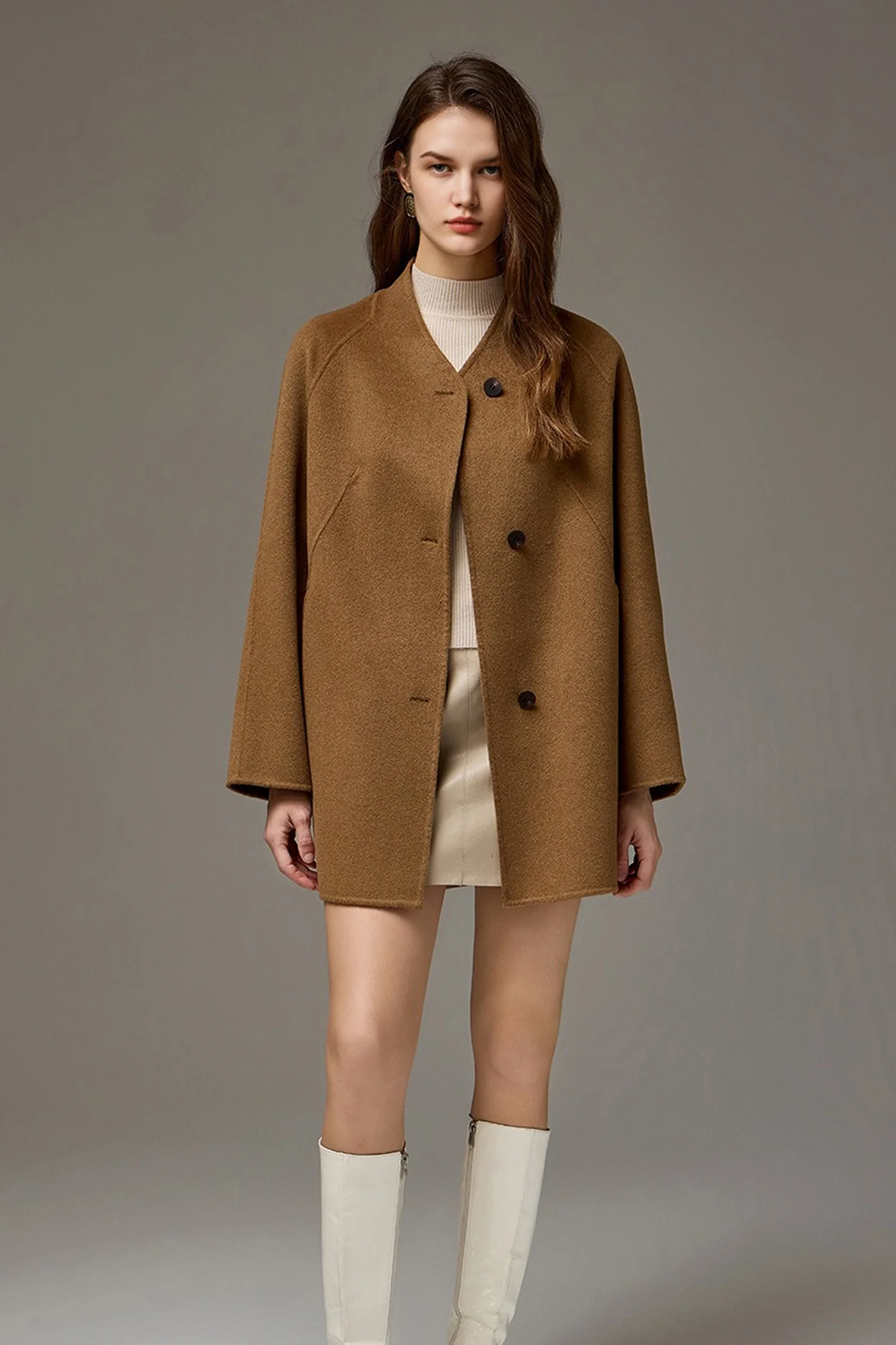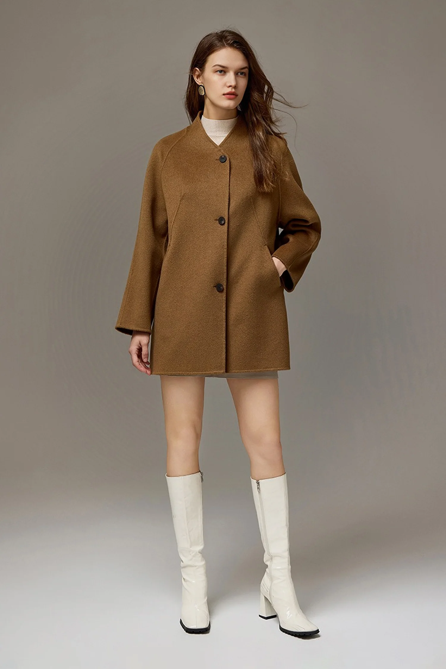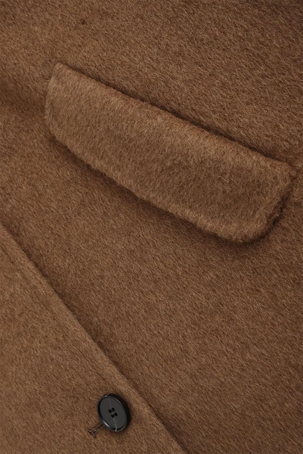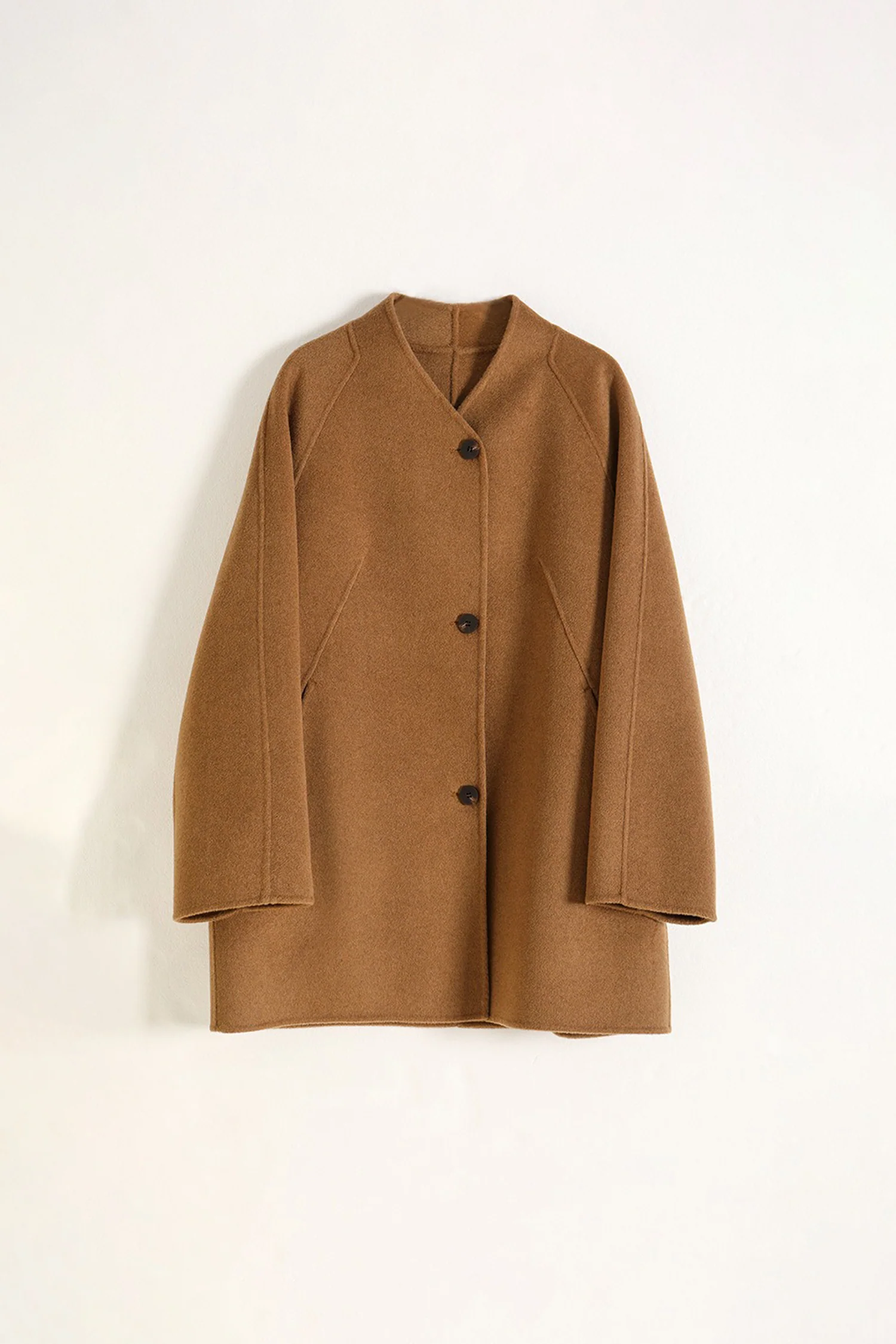 Oversized Wool Alpaca Stand Collar Cape Coat with Belt