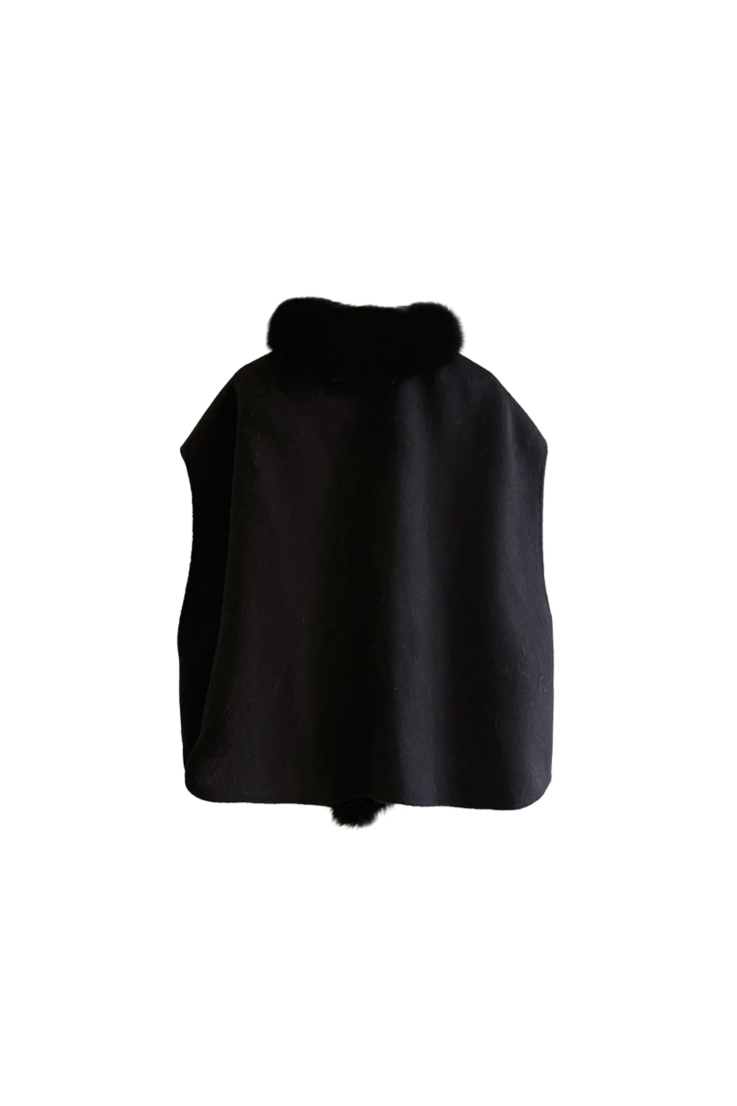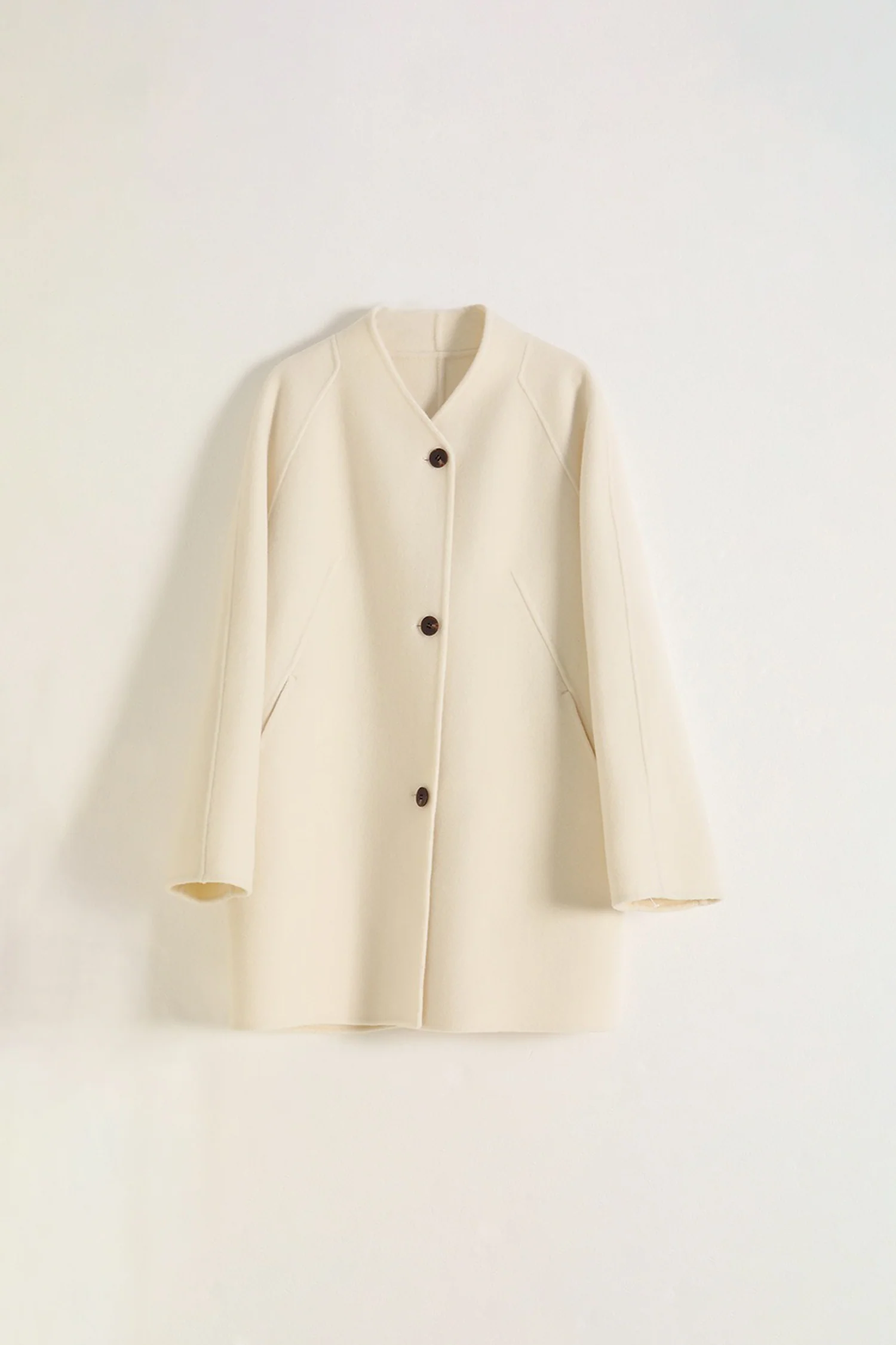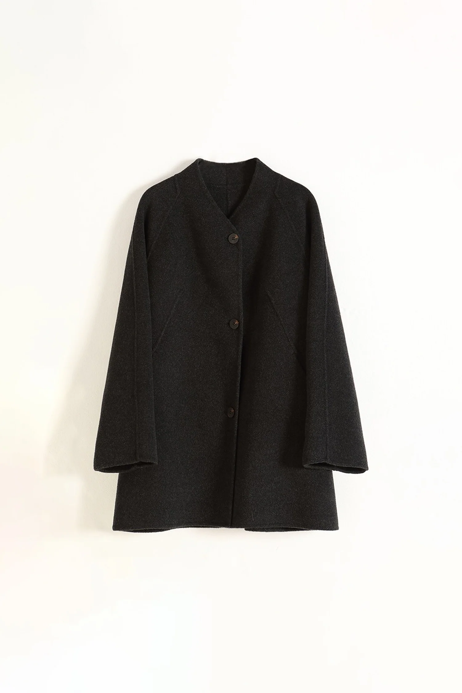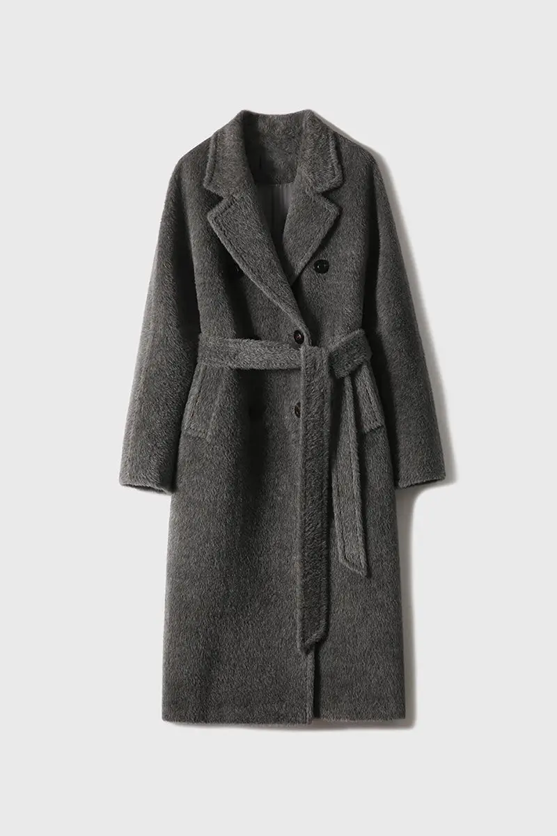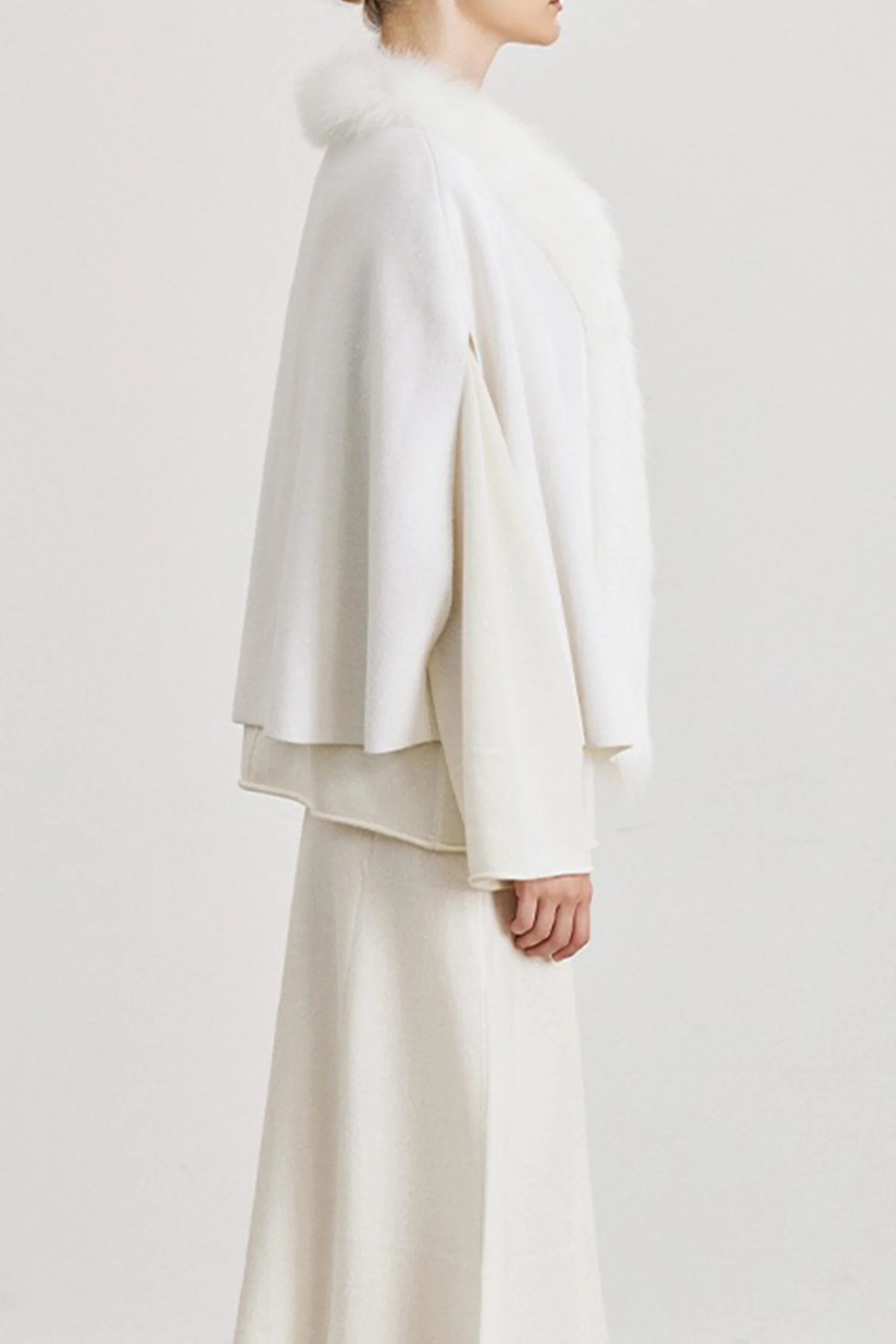 Oversized Wool Alpaca Stand Collar Cape Coat with Belt