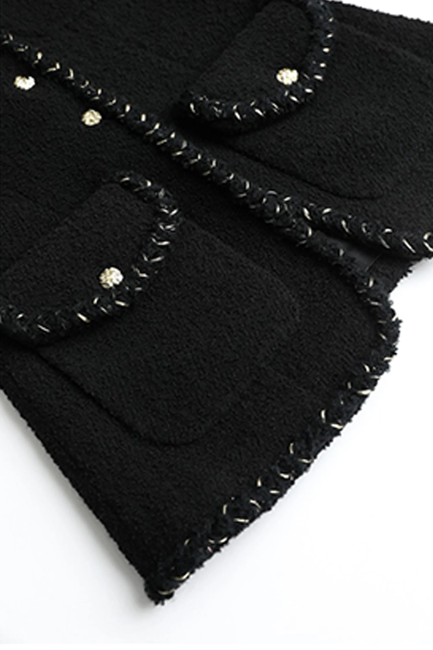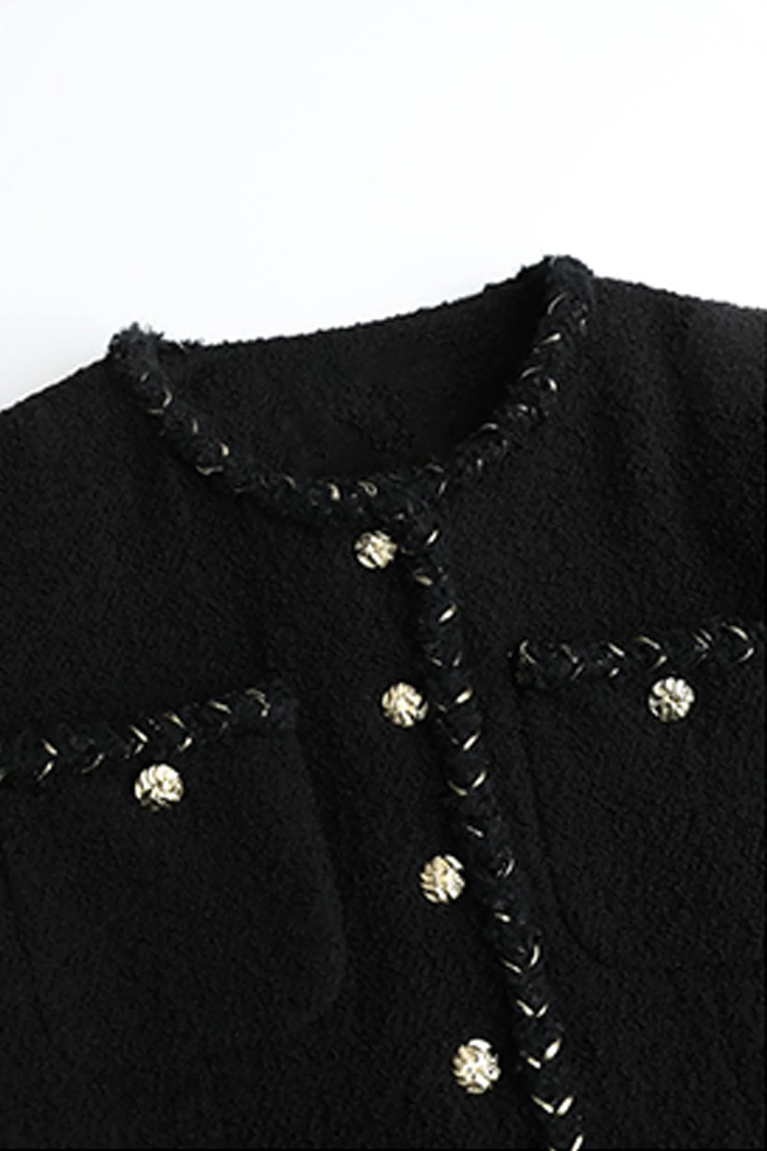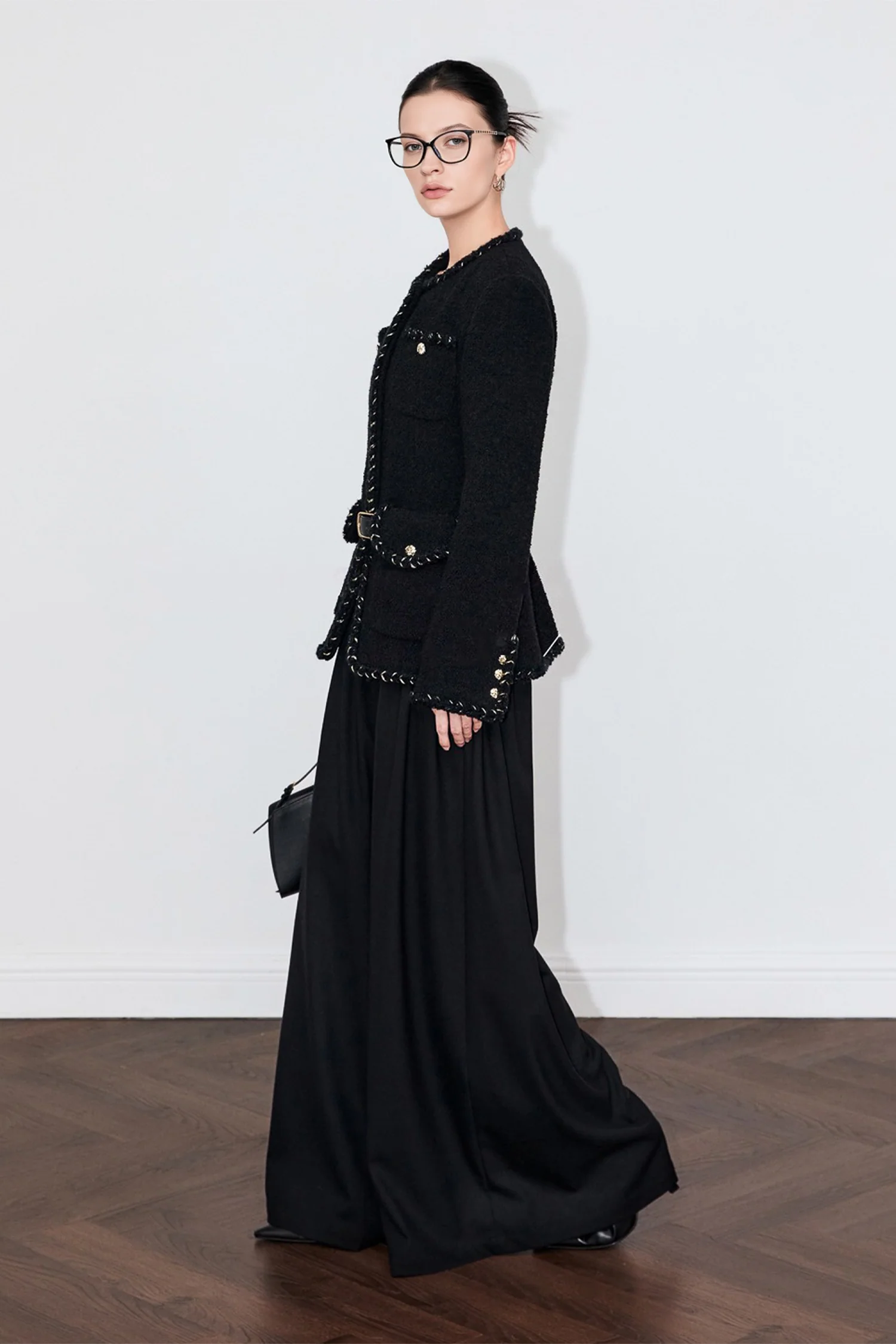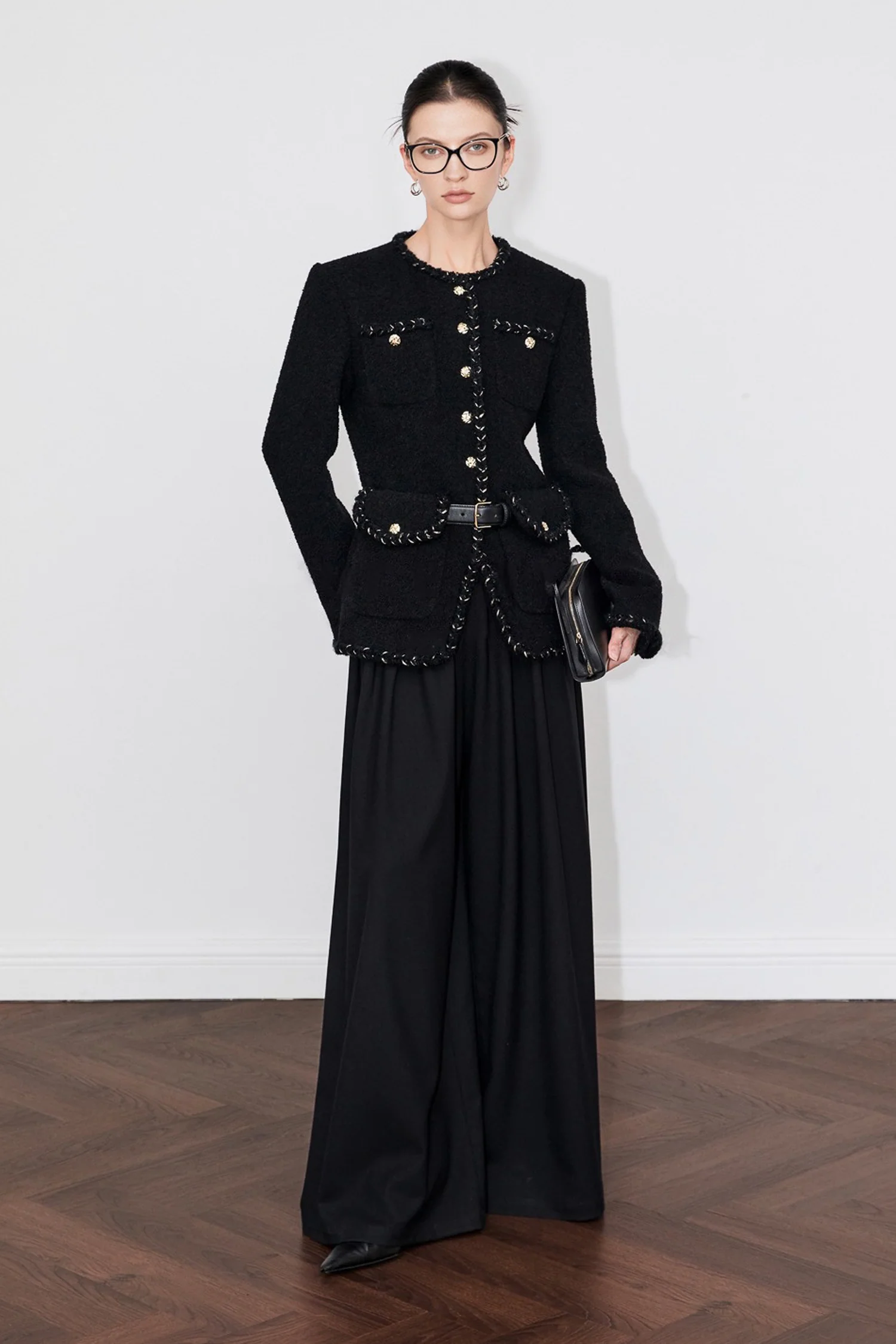 Chic Wool Tweed Braided-Trim Belted Jacket