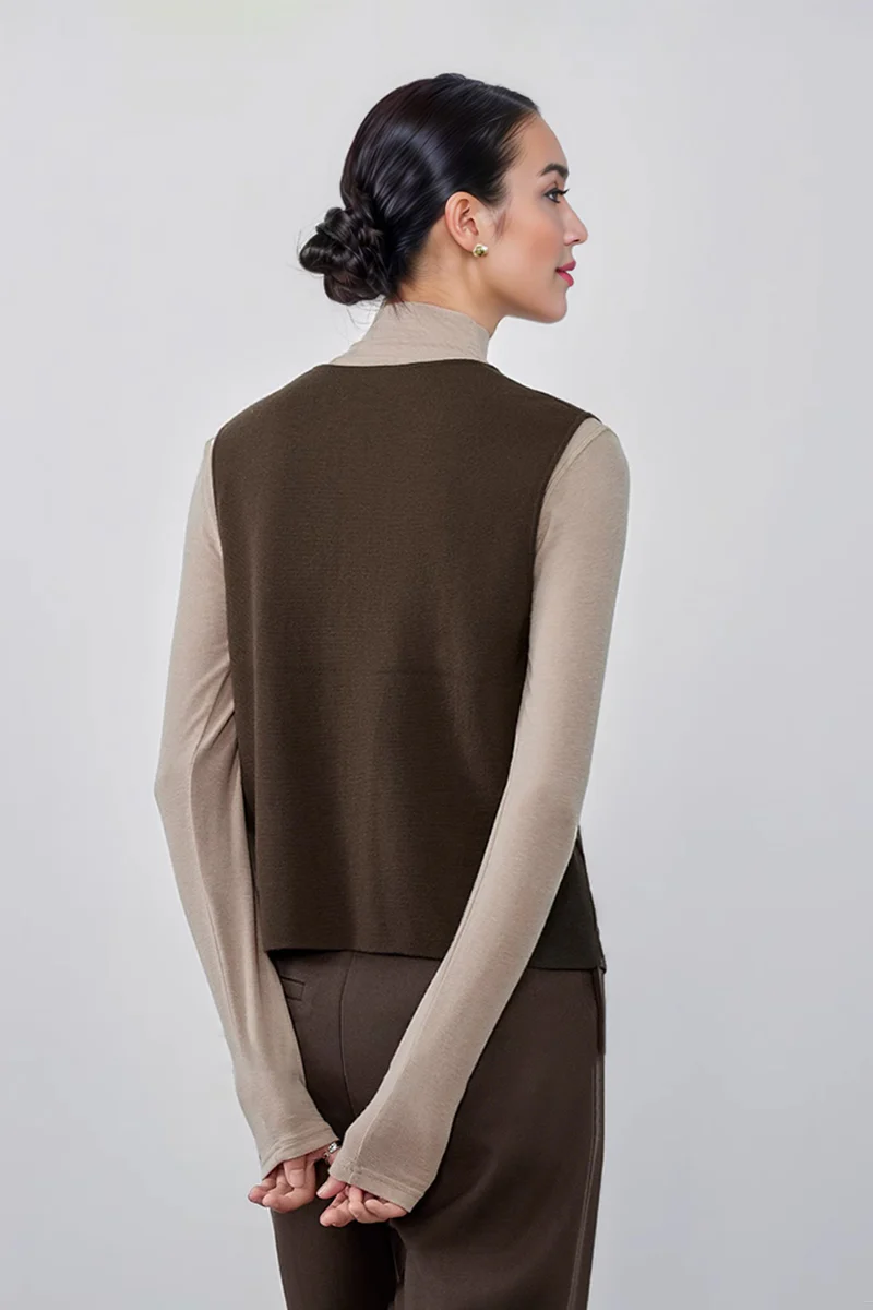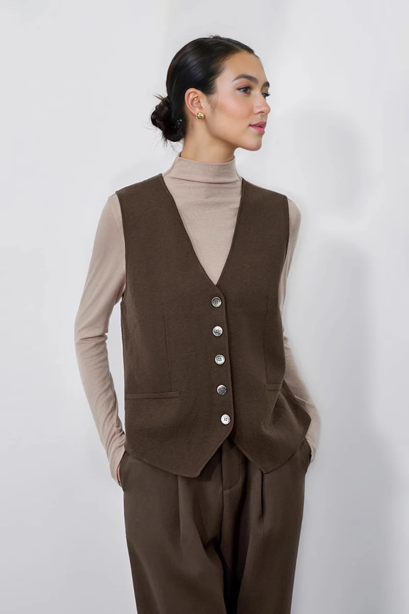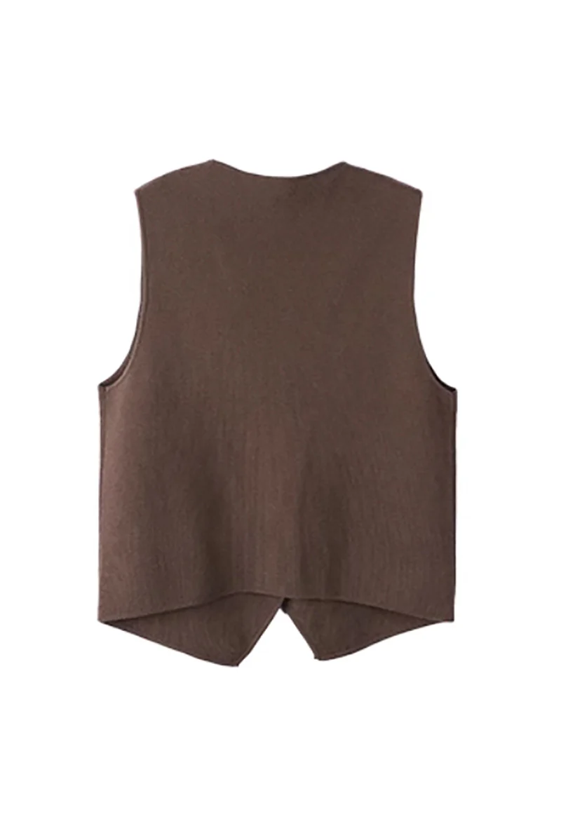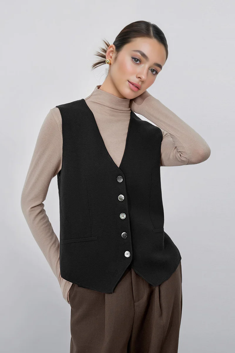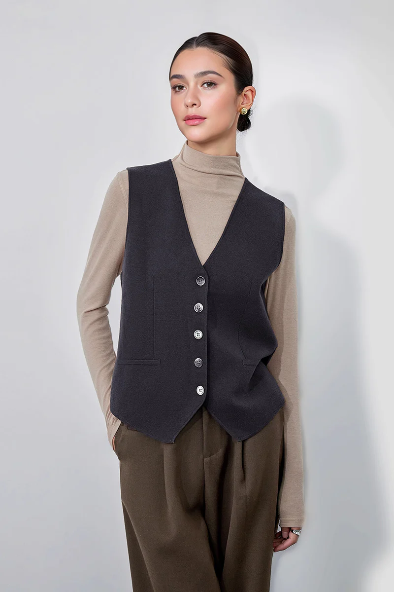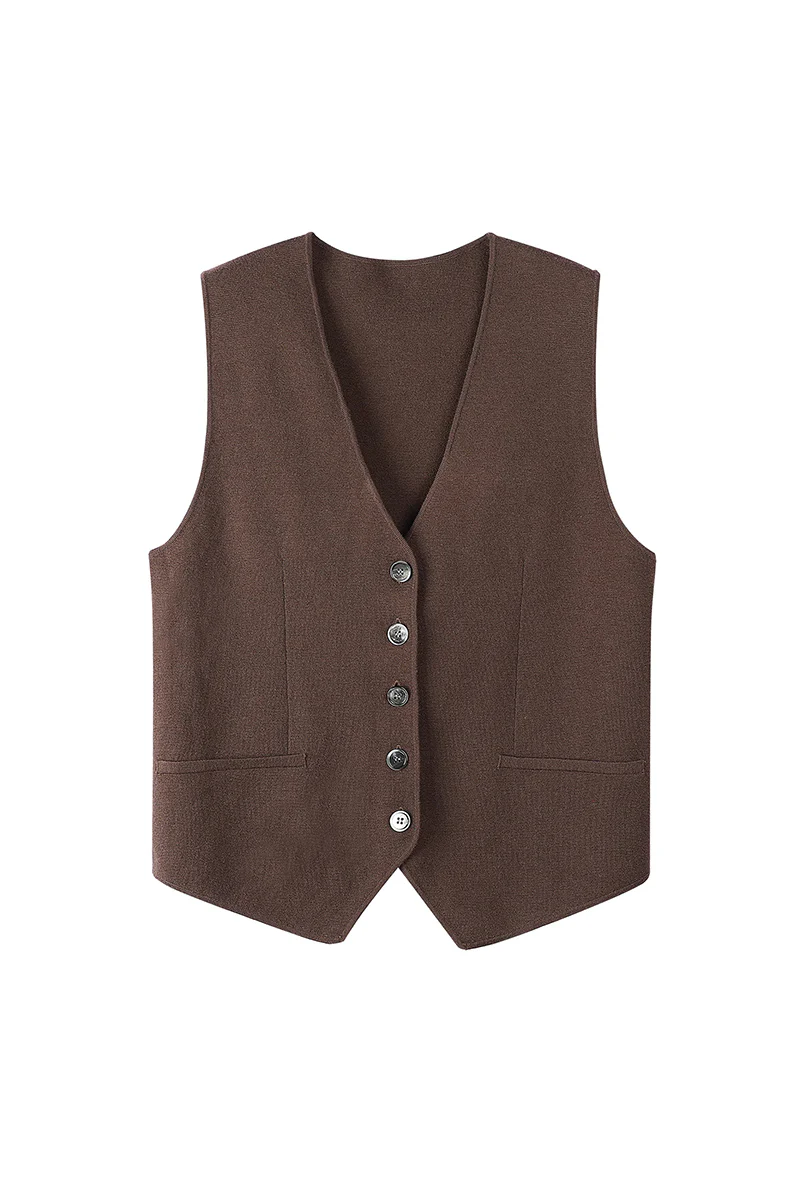 Soft Wool-Blend Knit Button-Up V-Neck Vest