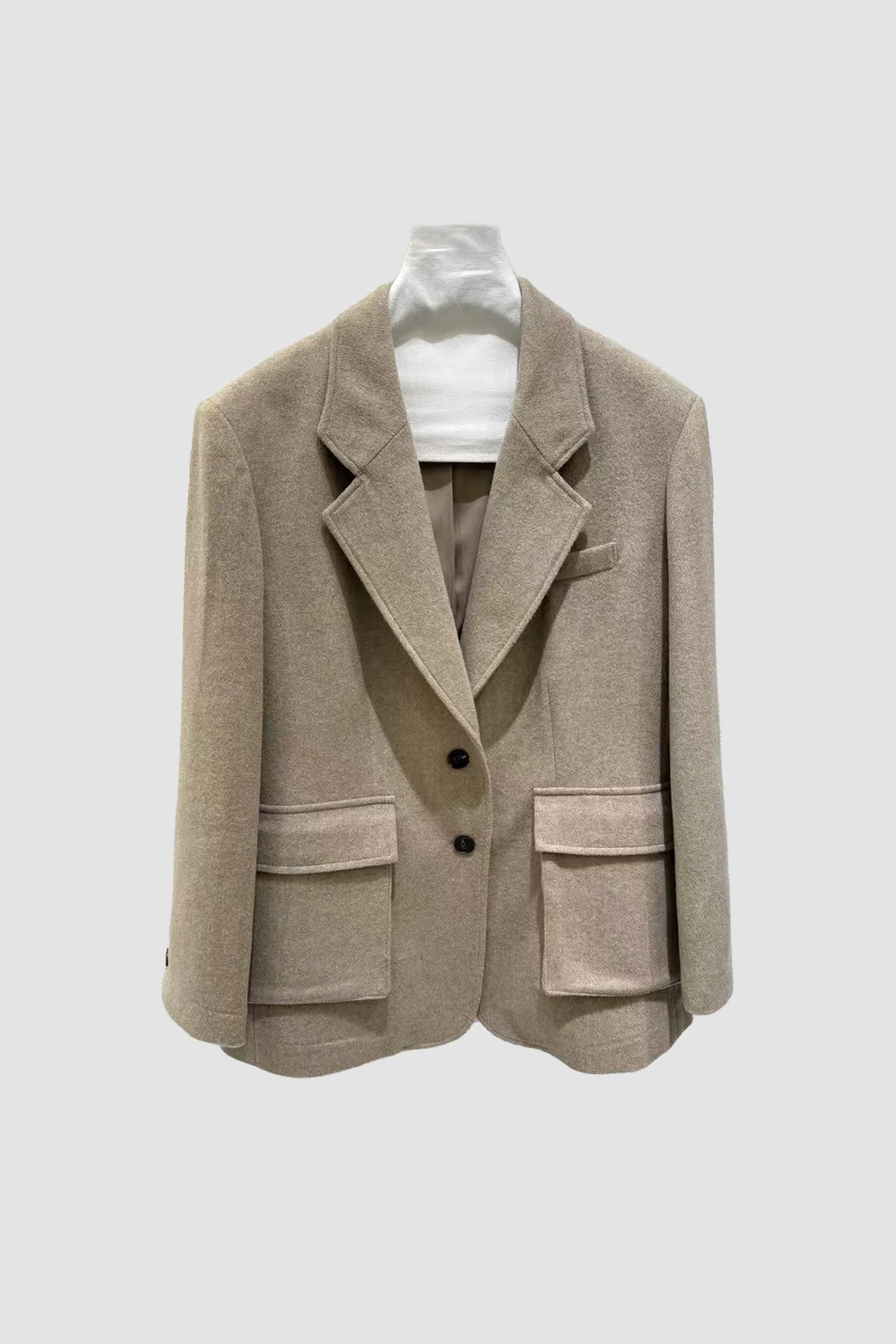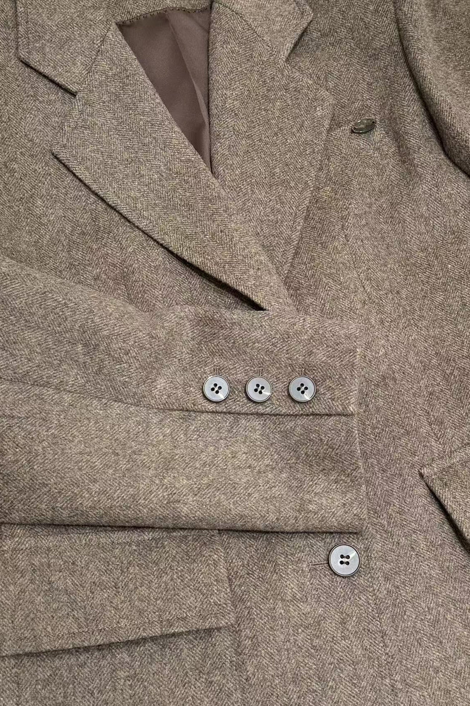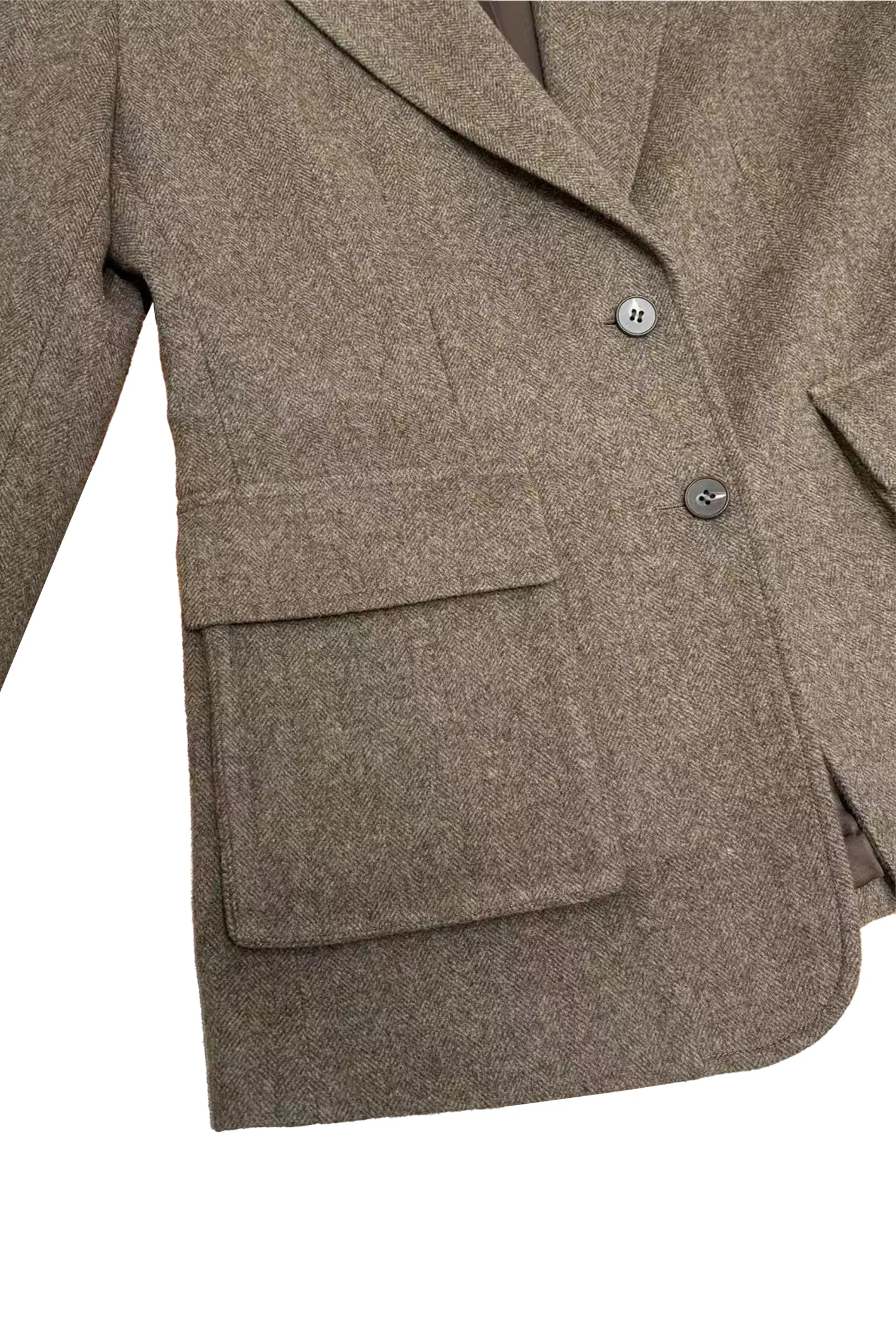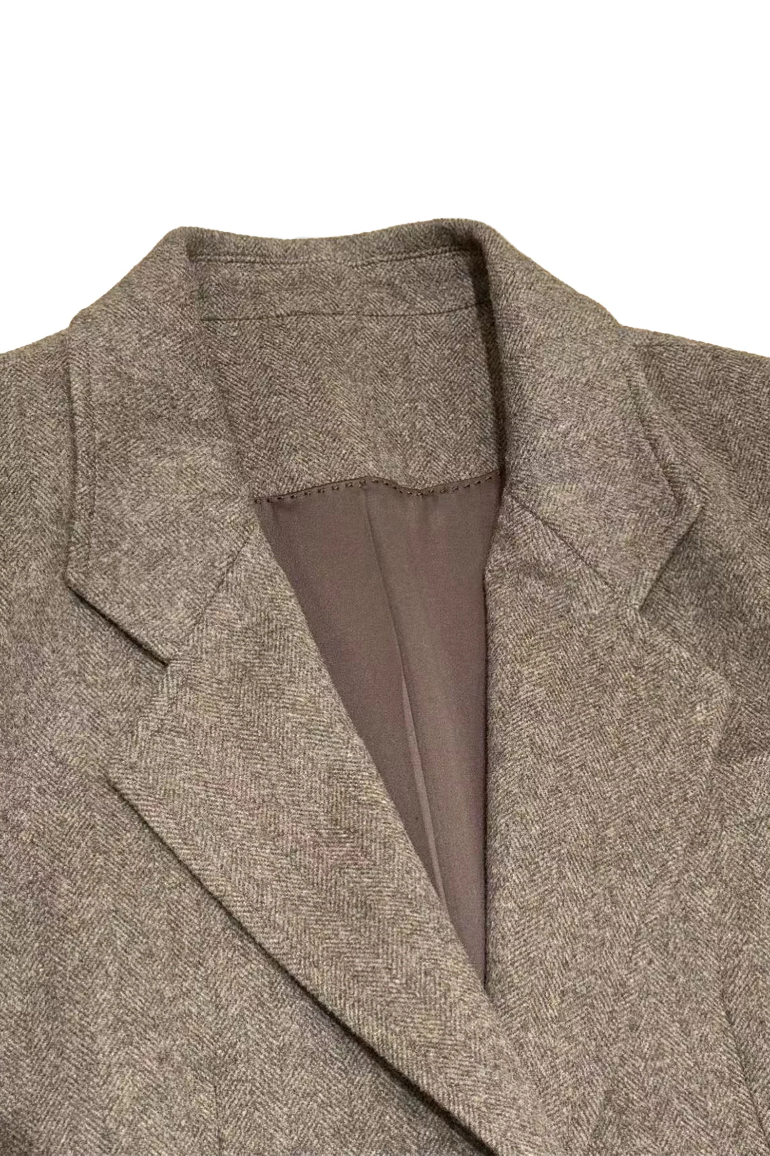 Vintage Herringbone Cashmere-Wool Blazer with Pockets